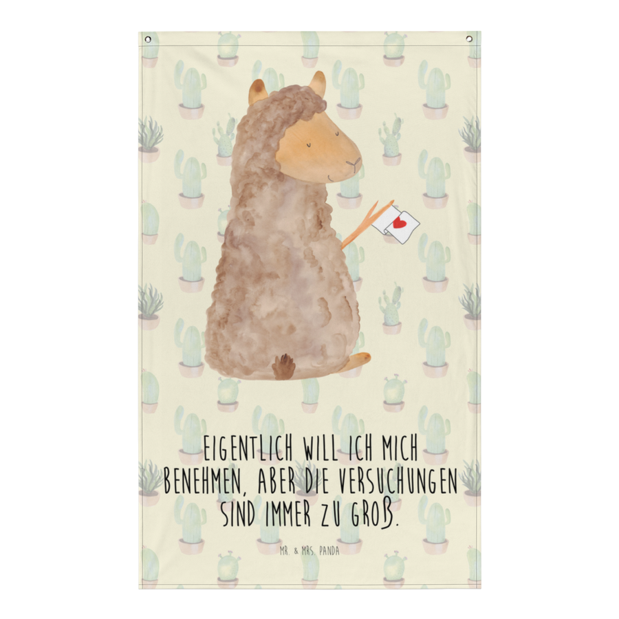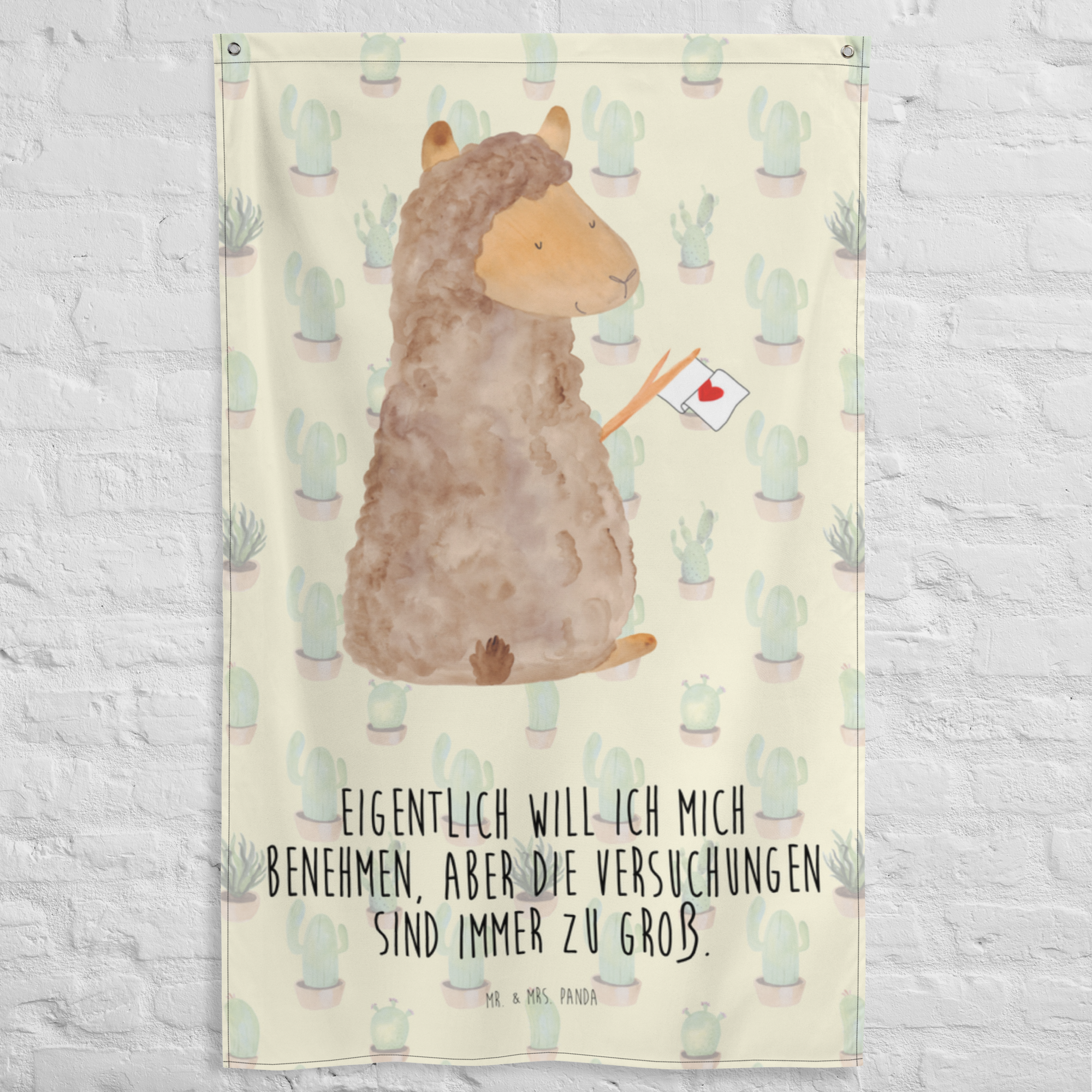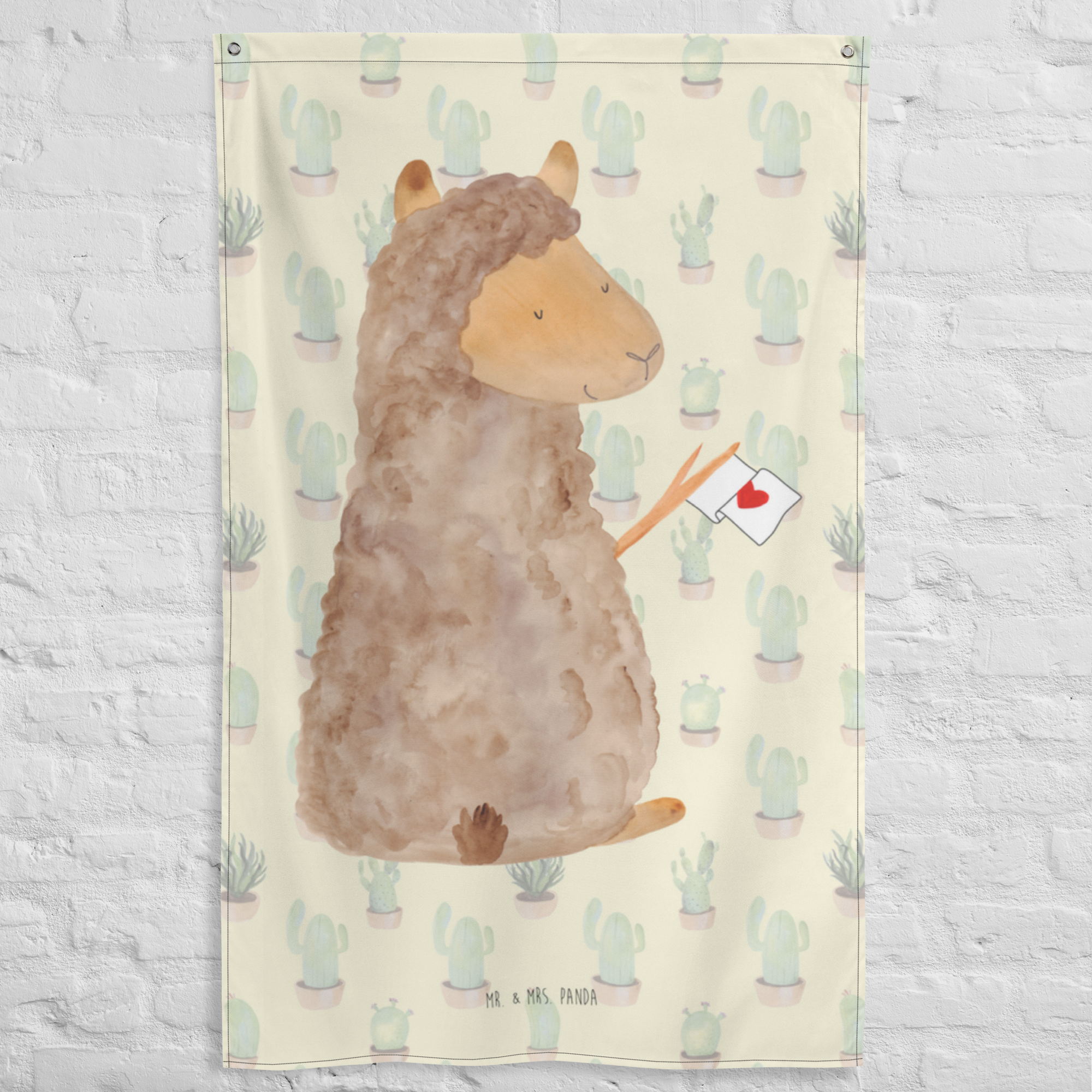 Schmücke dein Zuhause mit der herzlichen Alpaka Fahne von Mr. & Mrs. Panda! Freue Dich jeden Morgen darauf, vom freundlichen Alpaka begrüßt zu werden. Diese tolle Alpaka Fahne fügt einen Schuss von Lebendigkeit zu Deinem Zuhause hinzu. Das herrliche Herz auf der Fahne passt perfekt zum süßen Alpaka, dessen Lächeln jeden Tag die Sonne auf Dein Gesicht scheinen lässt.