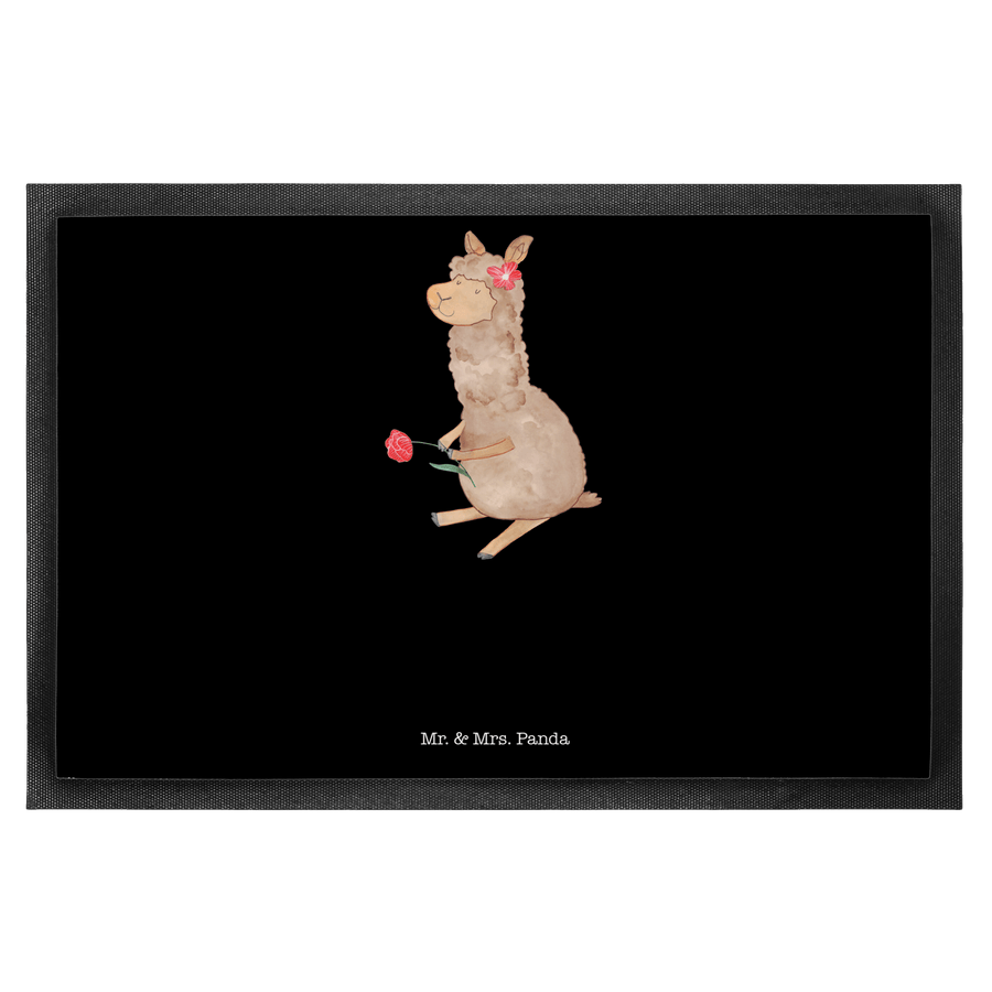 Fußmatte Alpaka Blume - 50 x 75 cm - mit Spruch - Schwarz