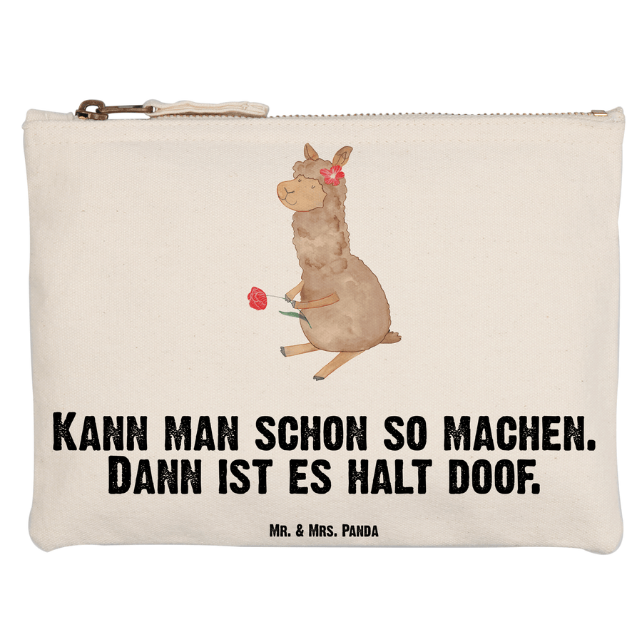 Schminktasche Alpaka Blume - Grösse XL Große - mit Spruch