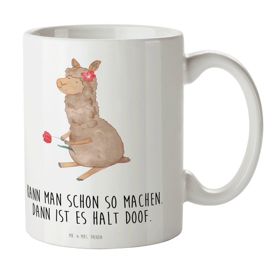 Tasse Alpaka Blume - mit Spruch - Weiß