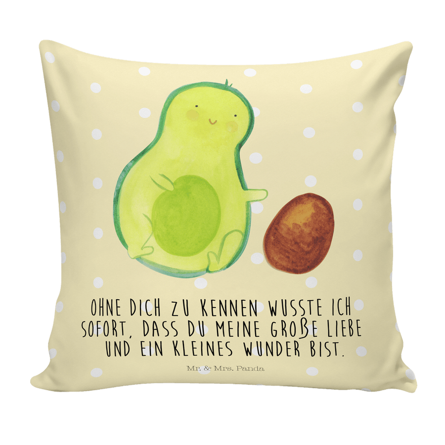 40x40 Kissen Avocado rollt Kern - mit Spruch - Gelb Pastell