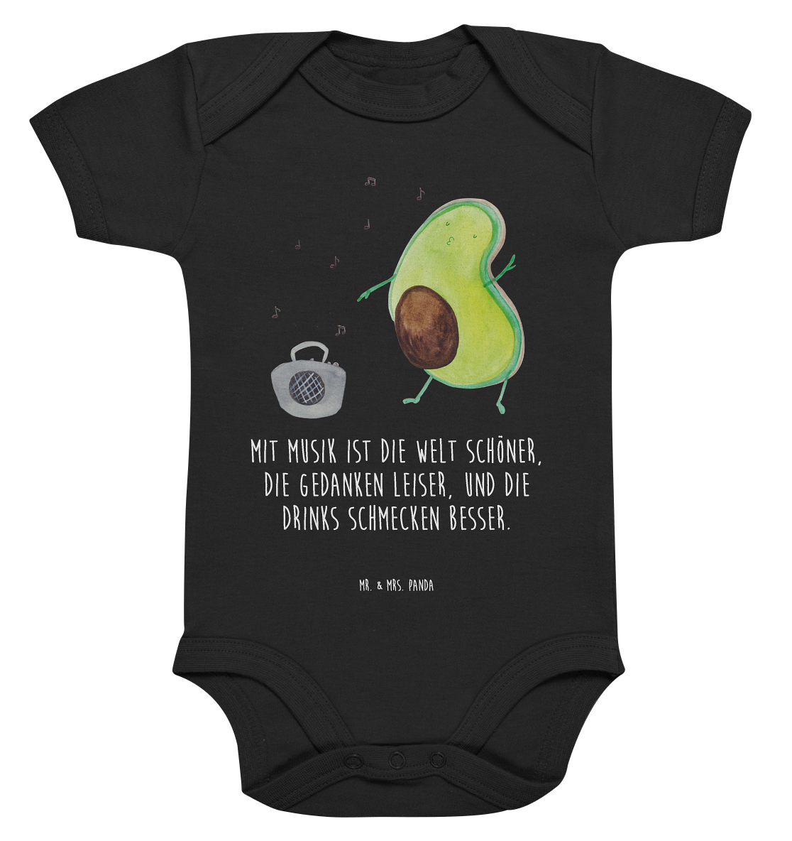 Organic Baby Body Avocado tanzt - 1. - 3. Monat - mit Spruch - Schwarz