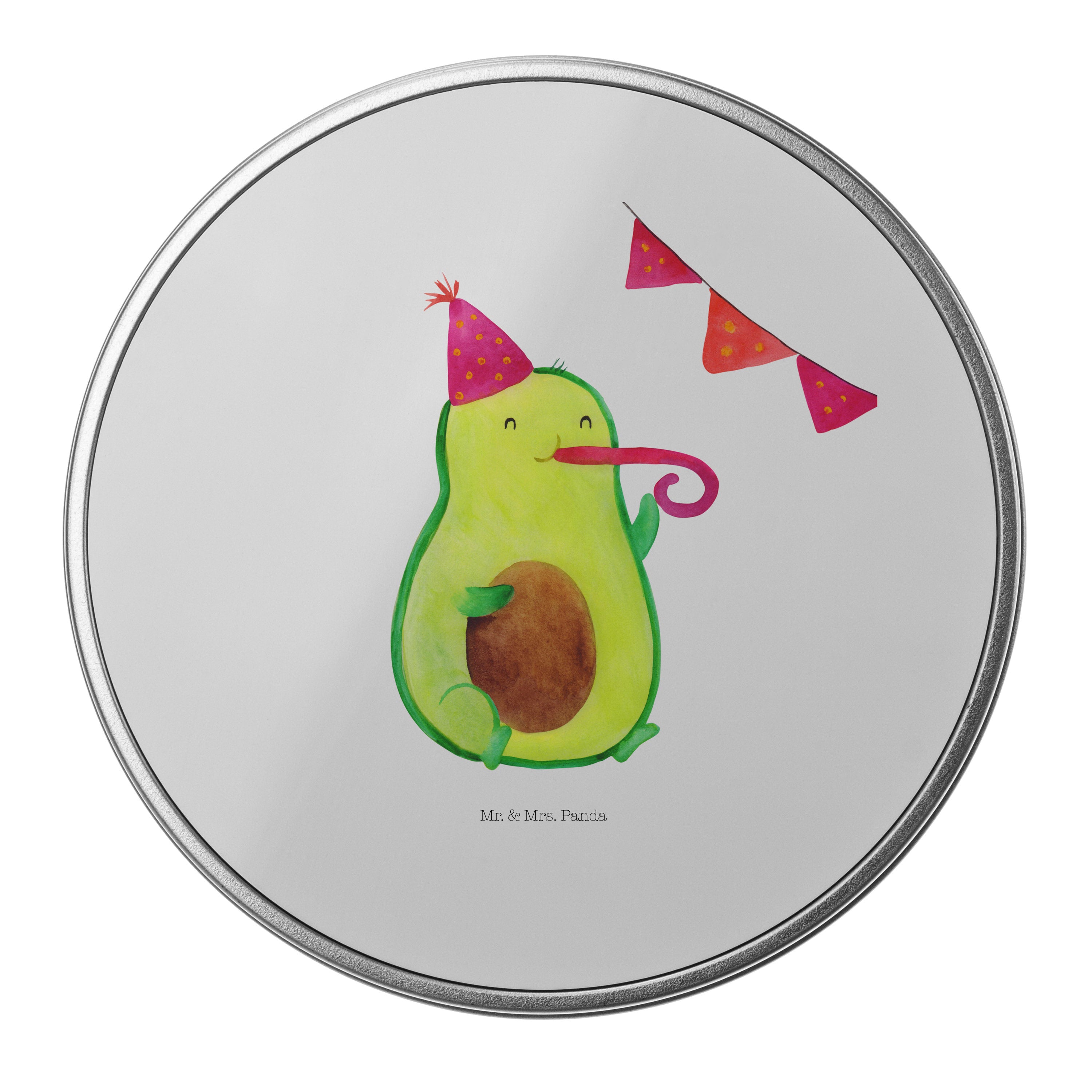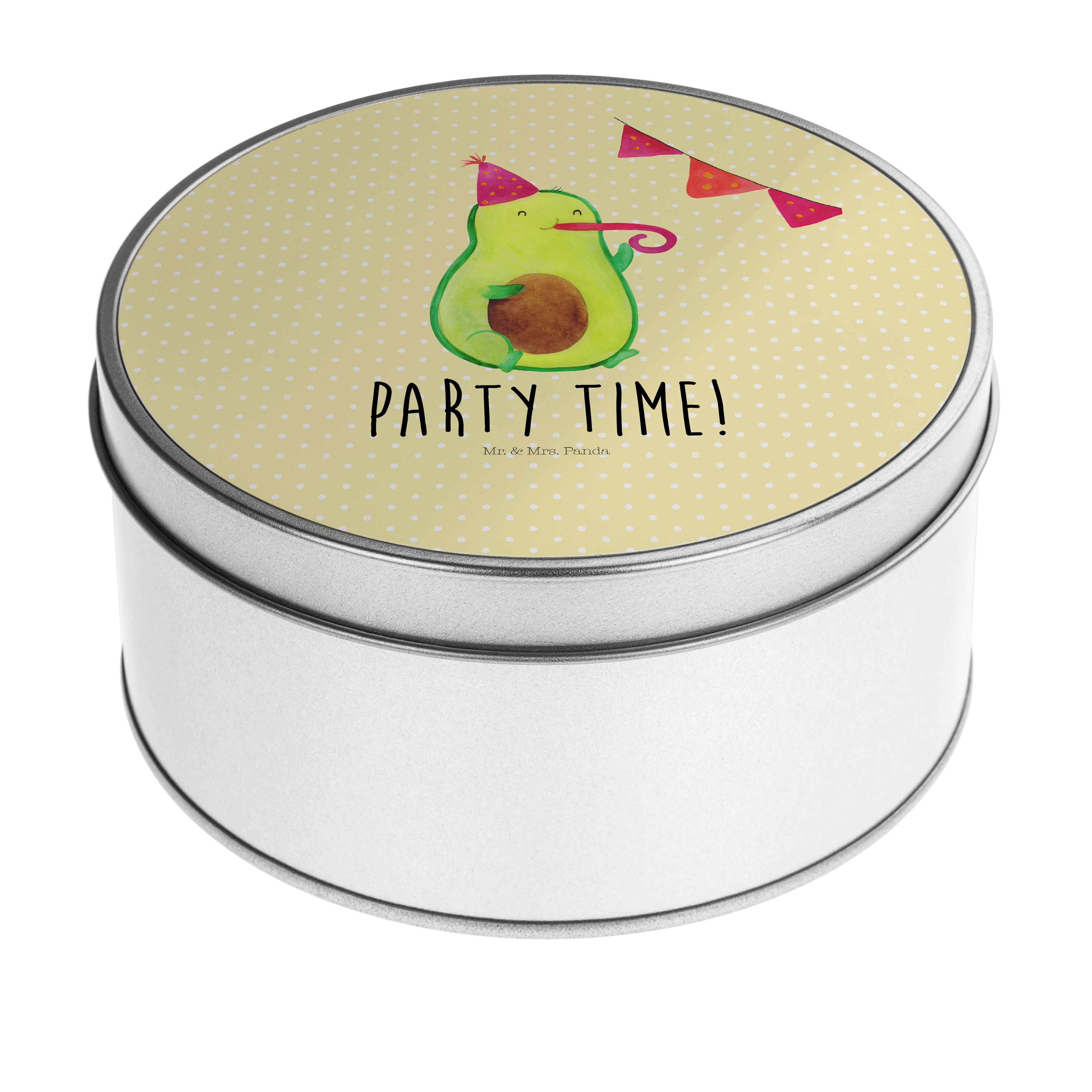 Blechdose rund Avocado Party Time - mit Spruch - Gelb Pastell