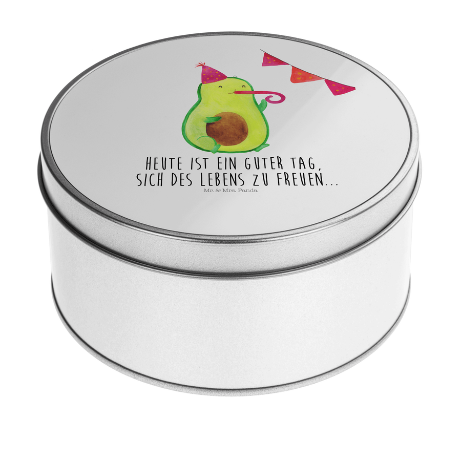 Blechdose rund Avocado Party - mit Spruch - Weiß