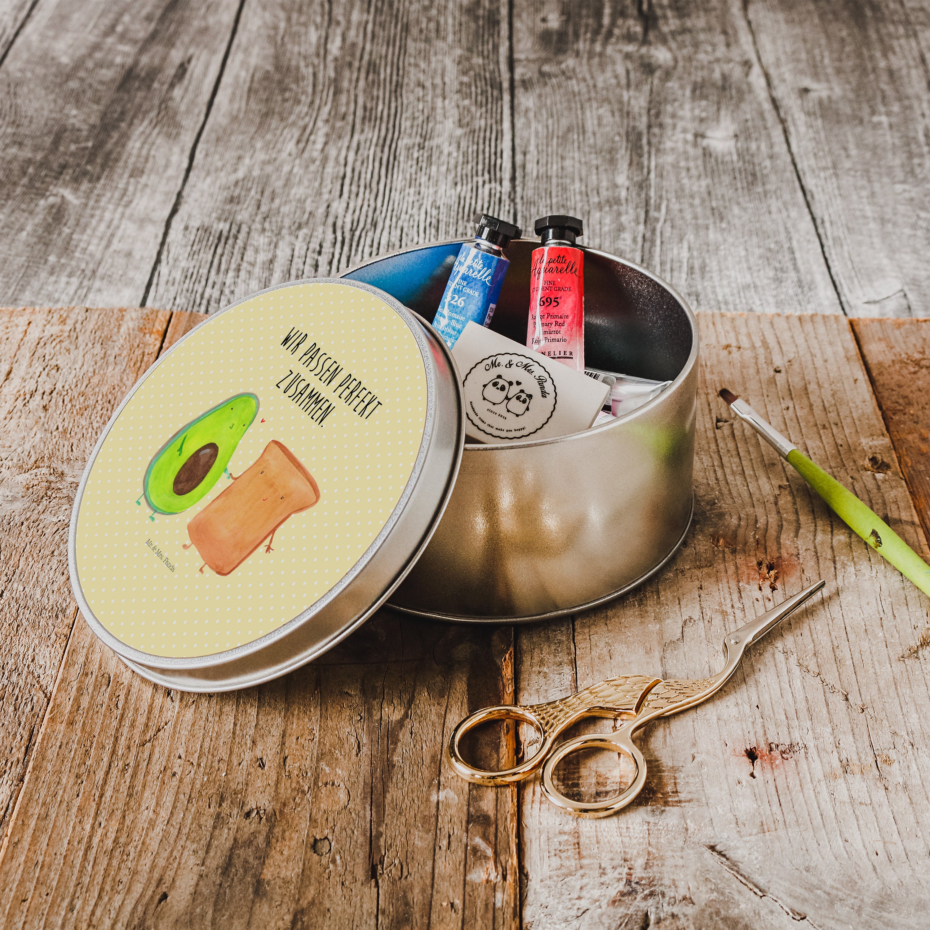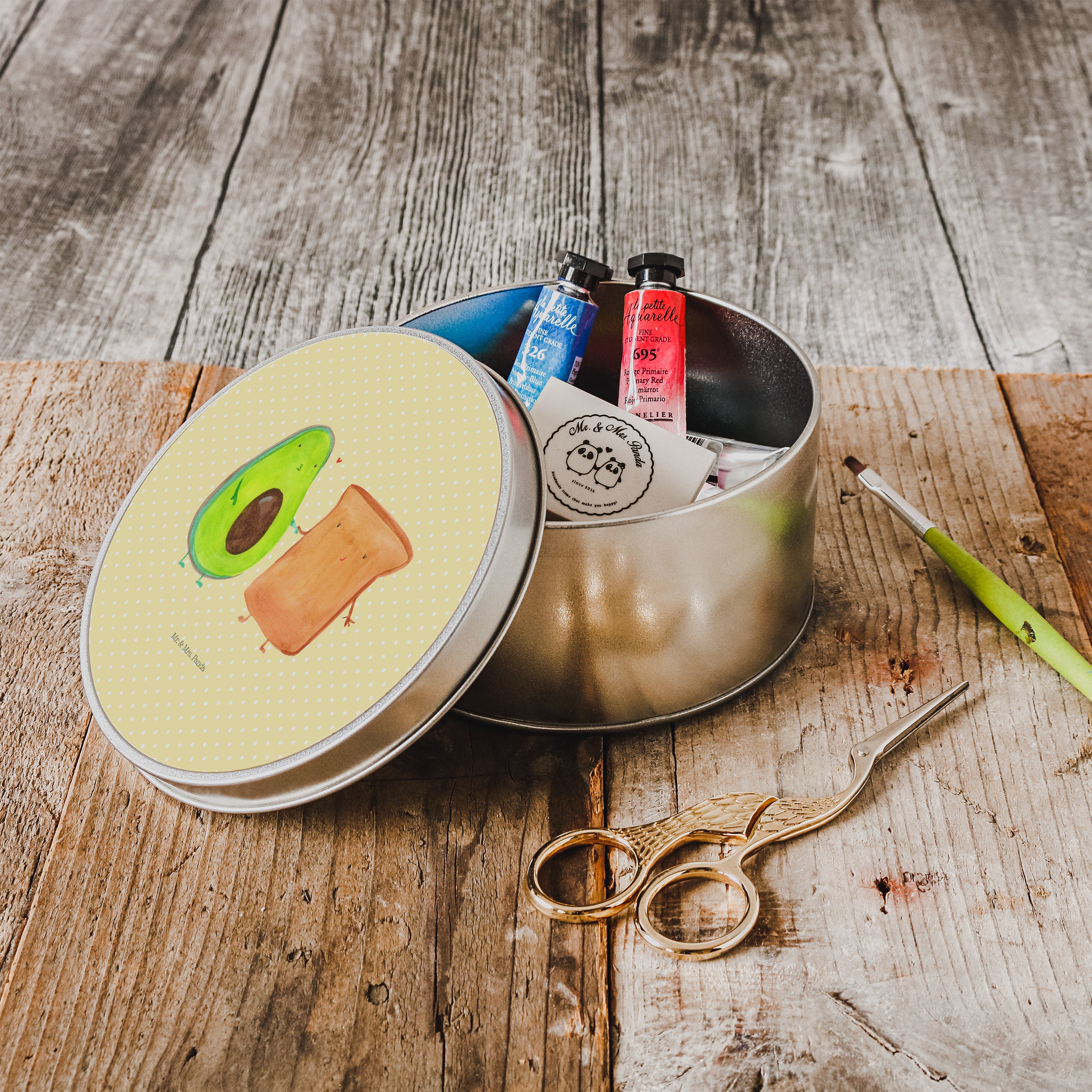 Blechdose rund Avocado + Toast - mit Spruch - Gelb Pastell