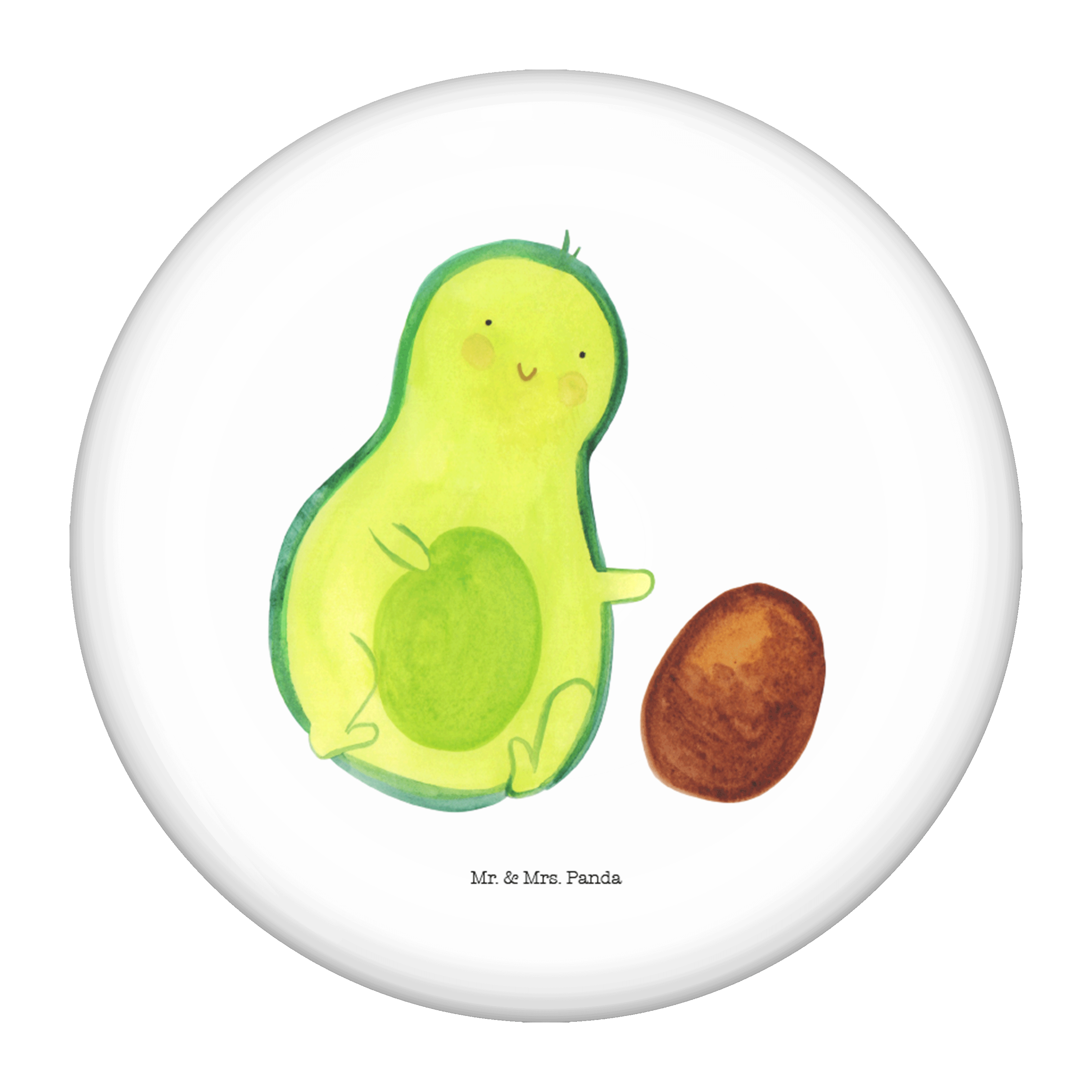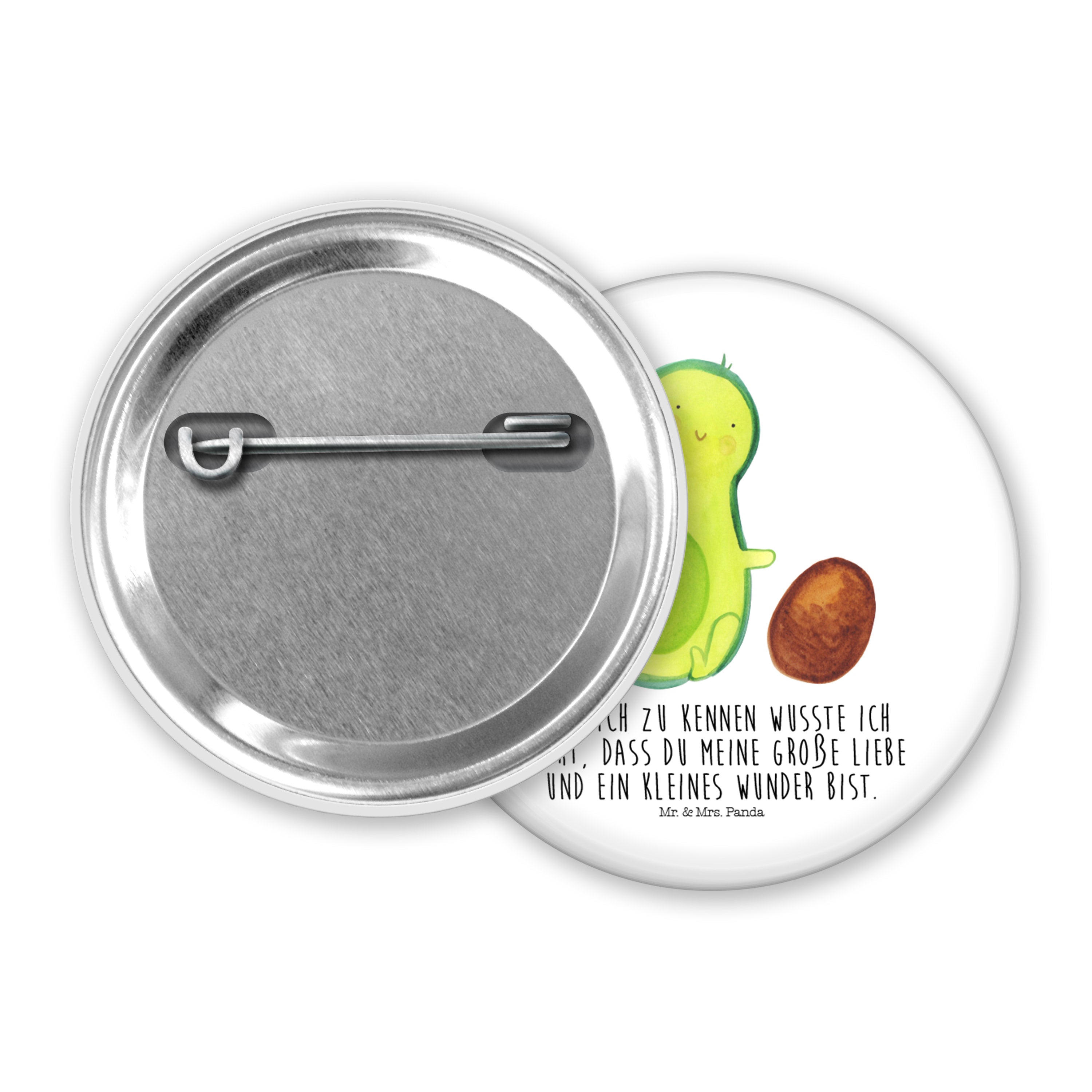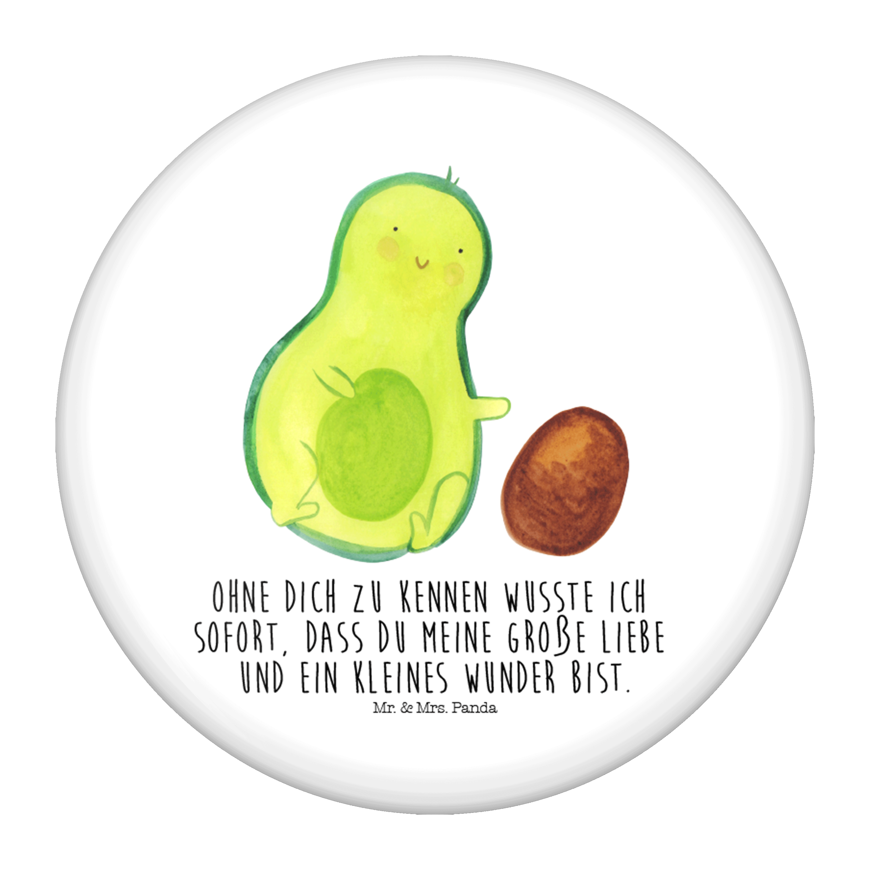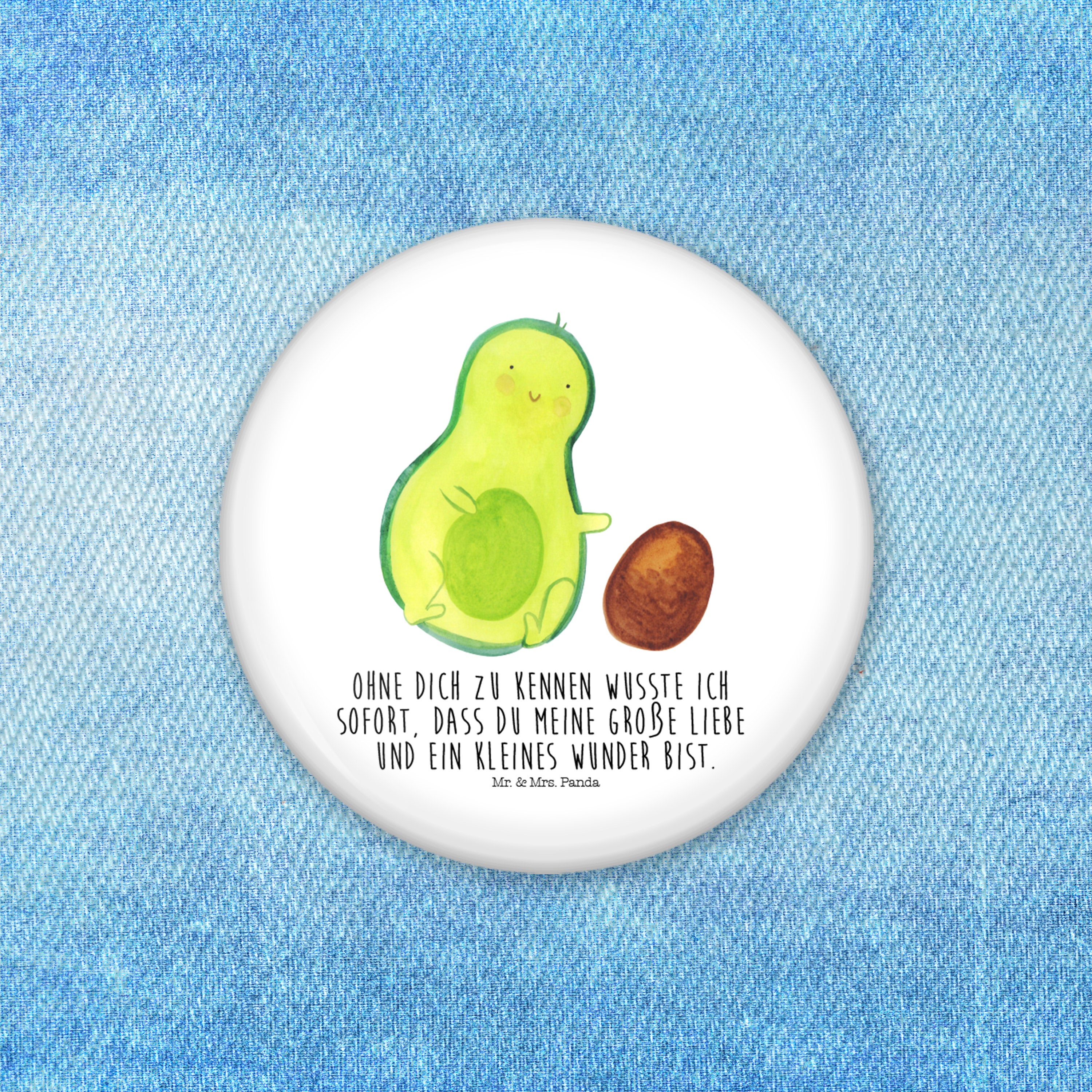 50mm Button Avocado rollt Kern - mit Spruch - Weiß