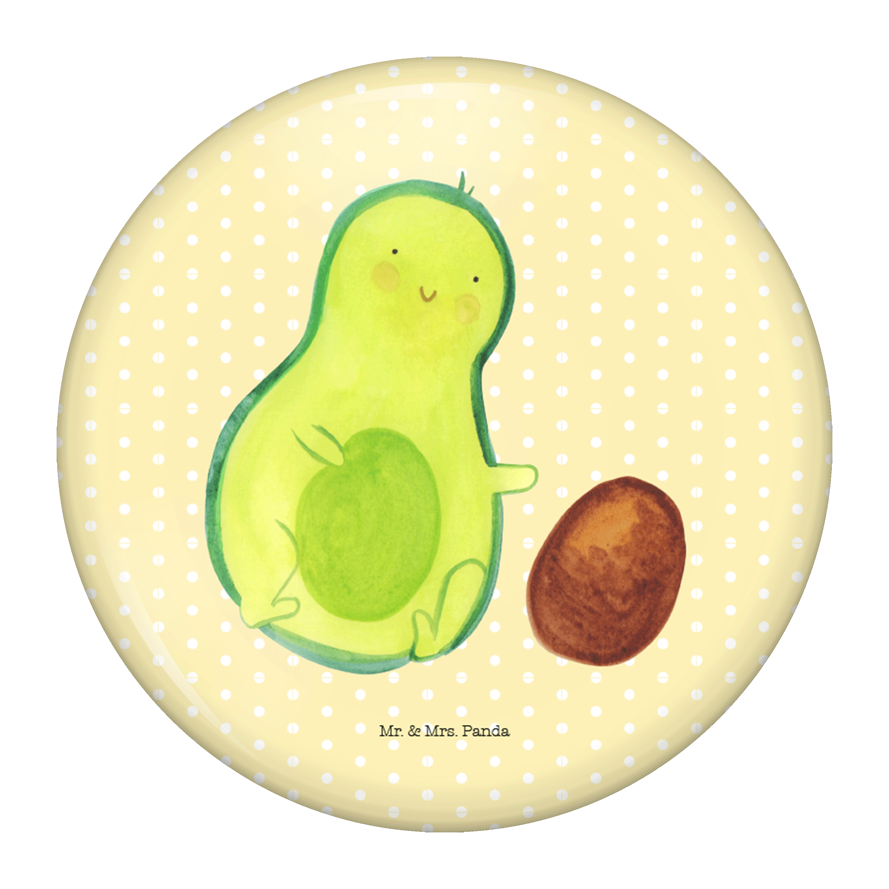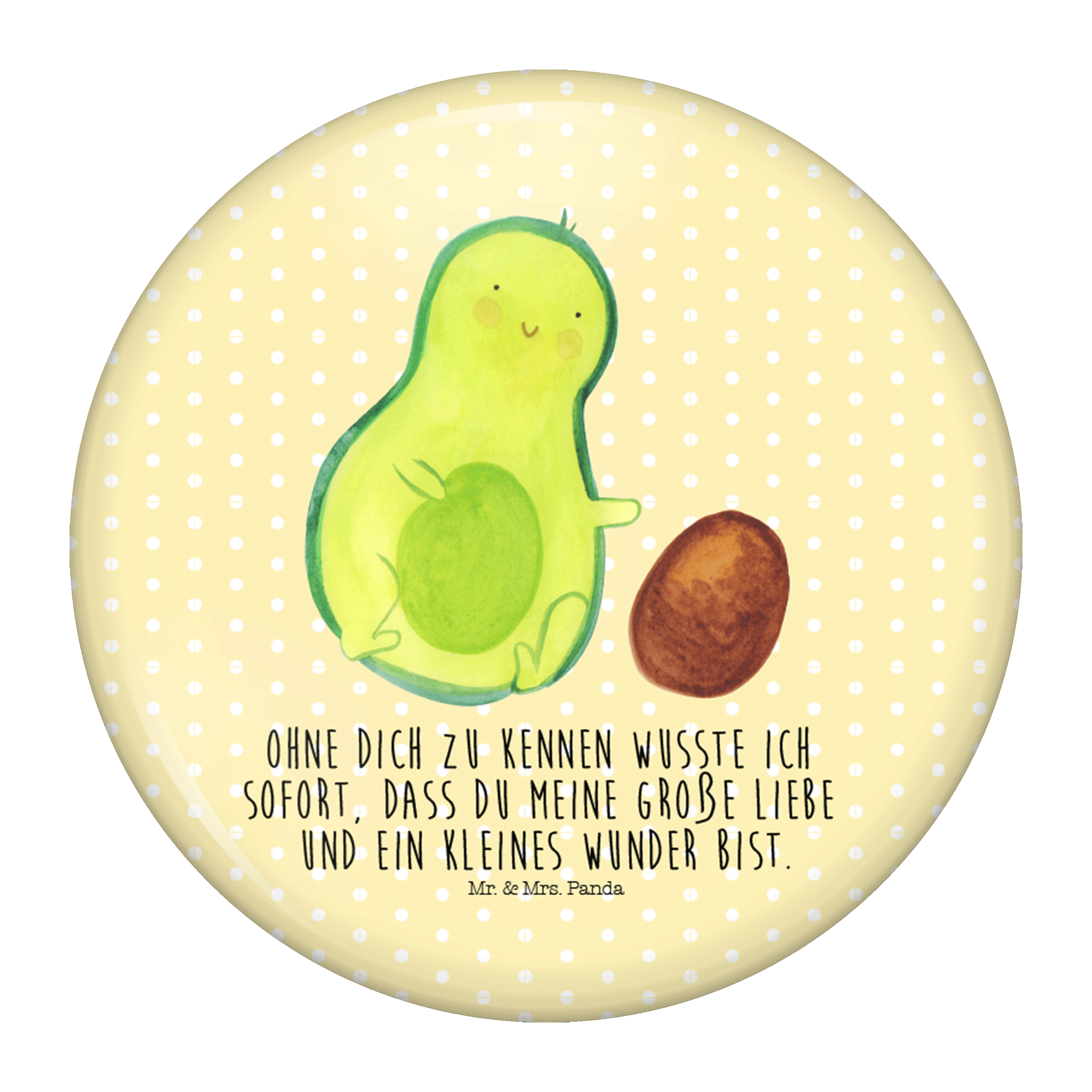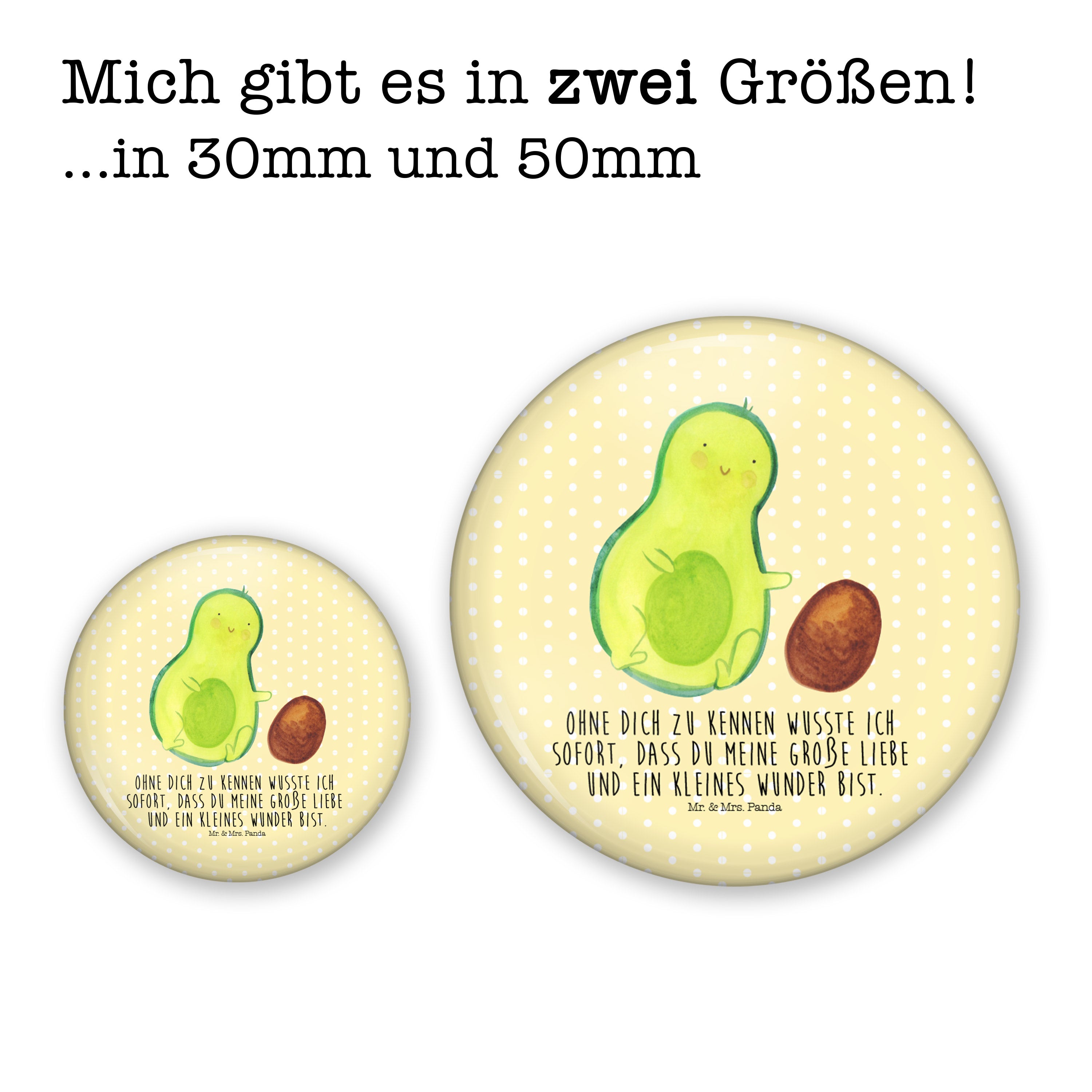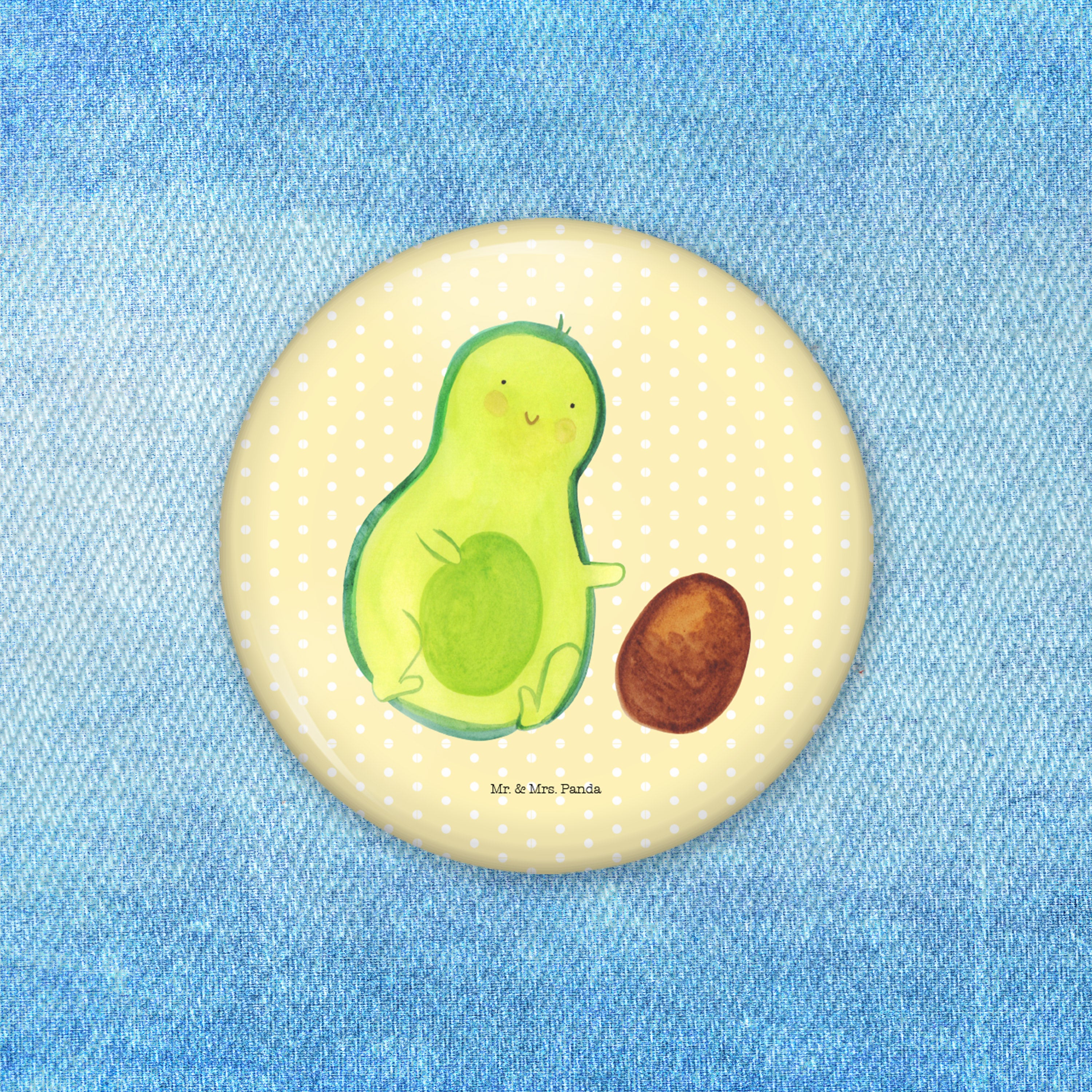 50mm Button Avocado rollt Kern - mit Spruch - Weiß