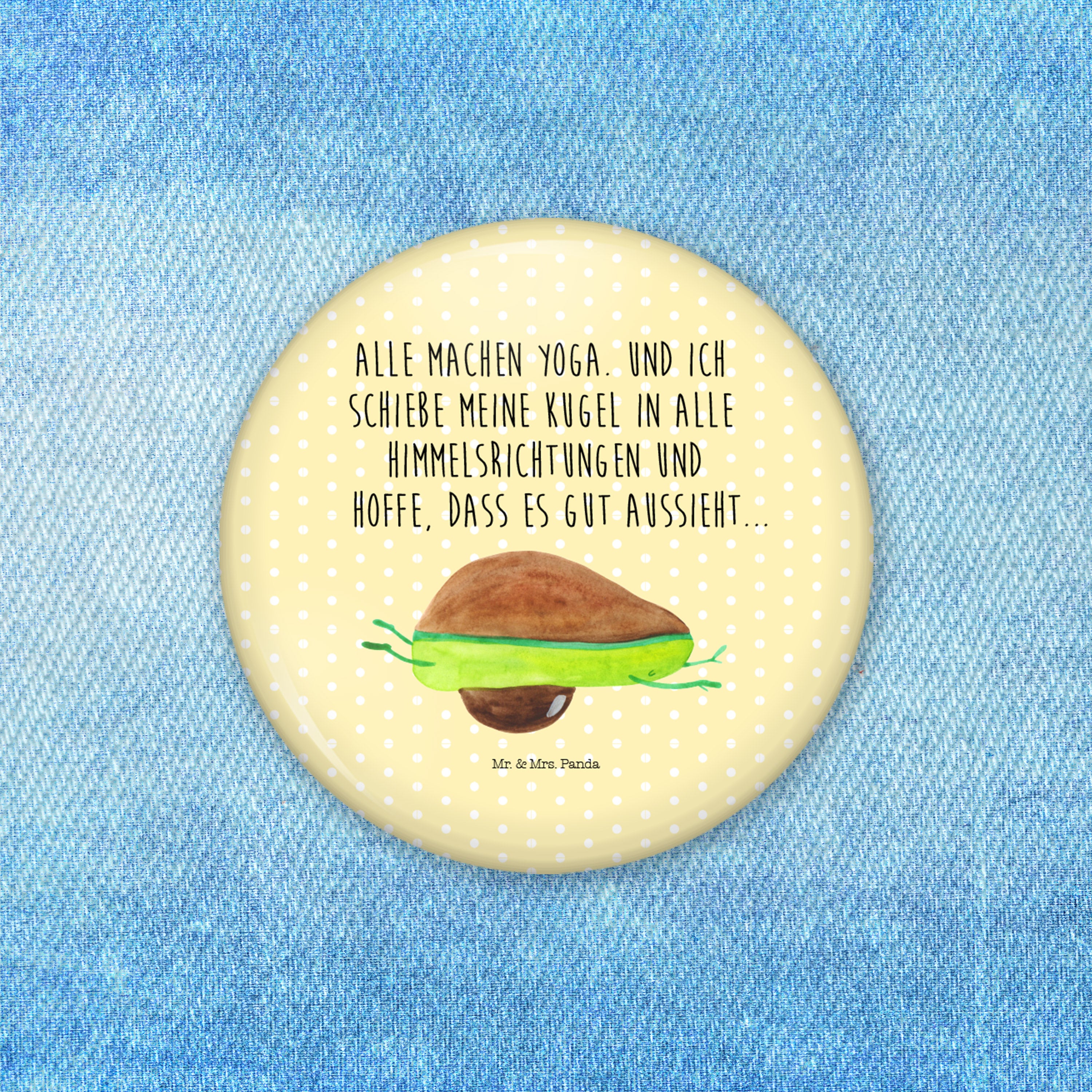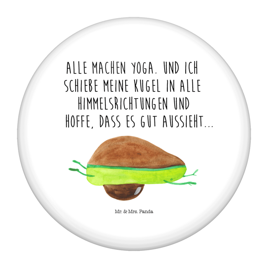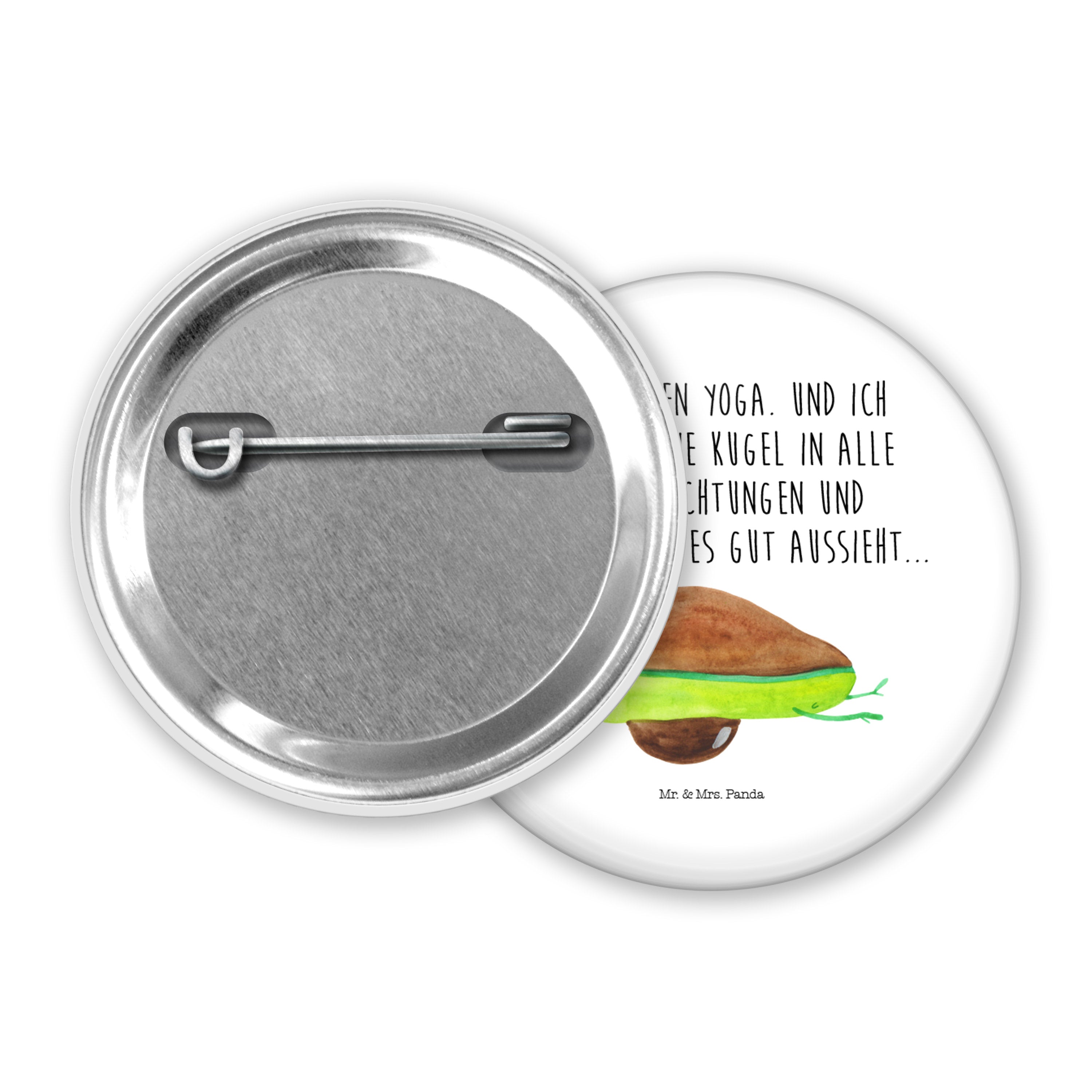 50mm Button Avocado Yoga - mit Spruch - Weiß