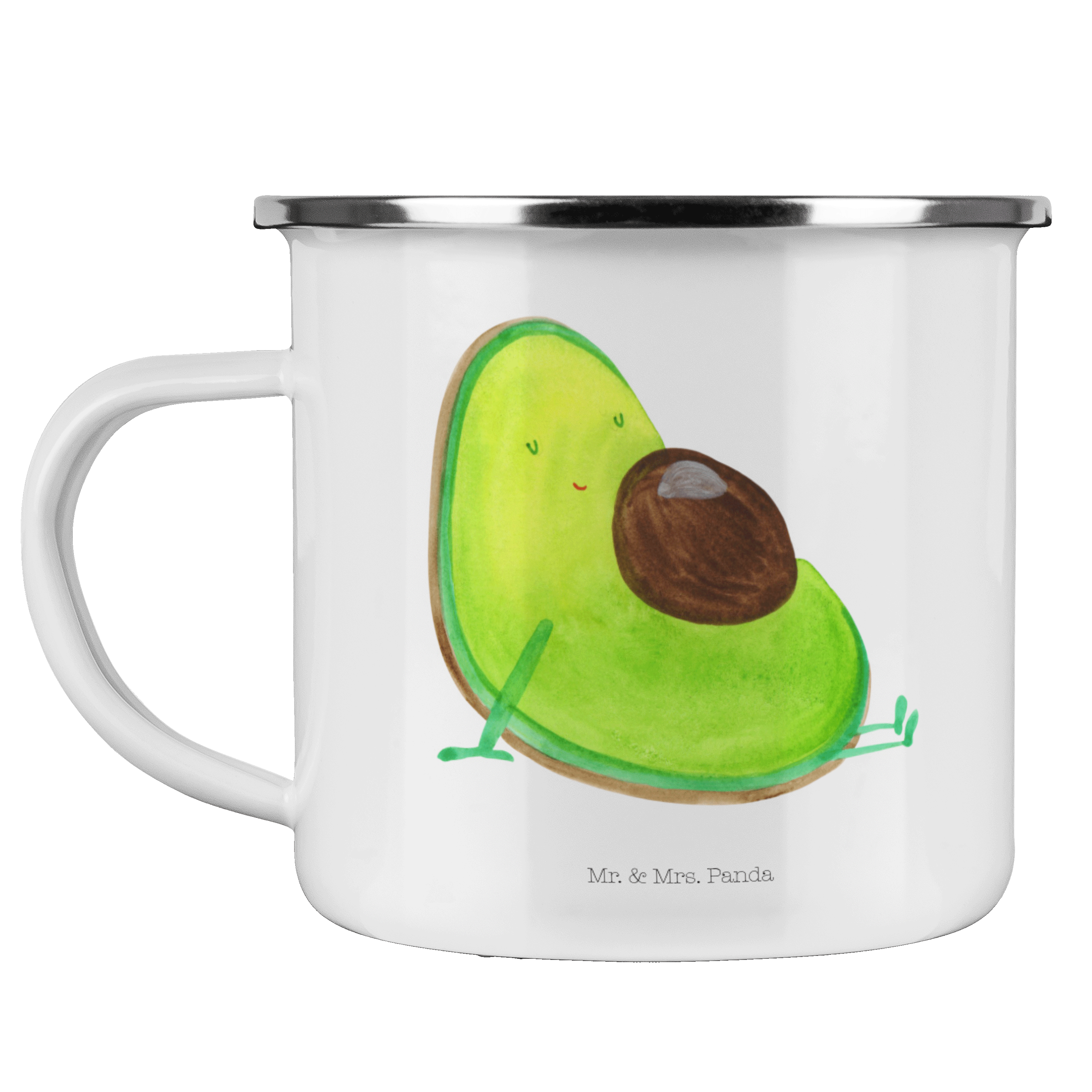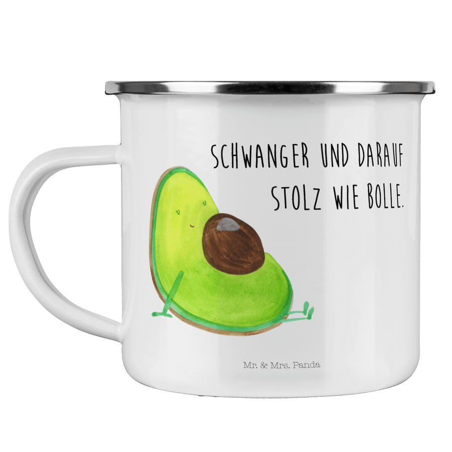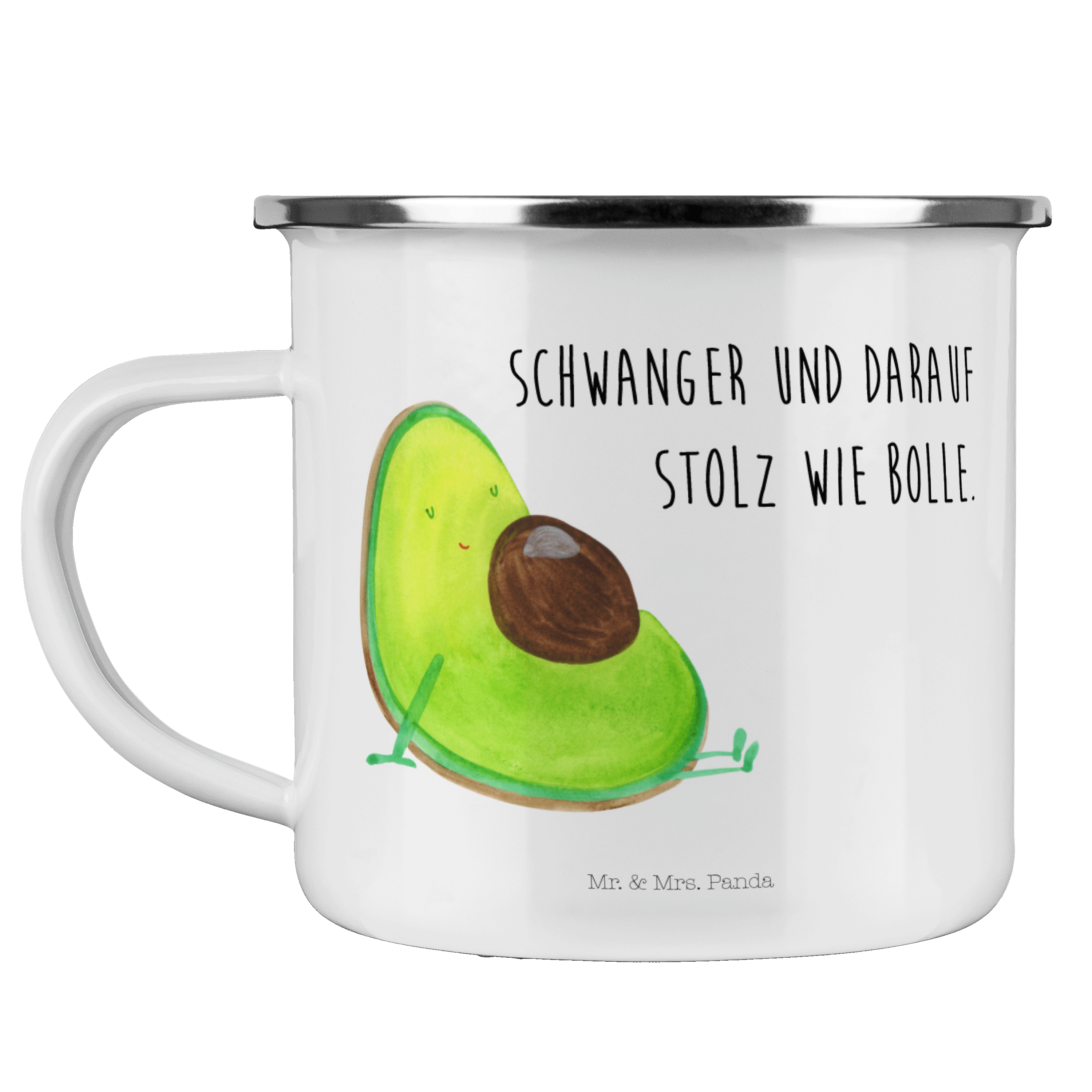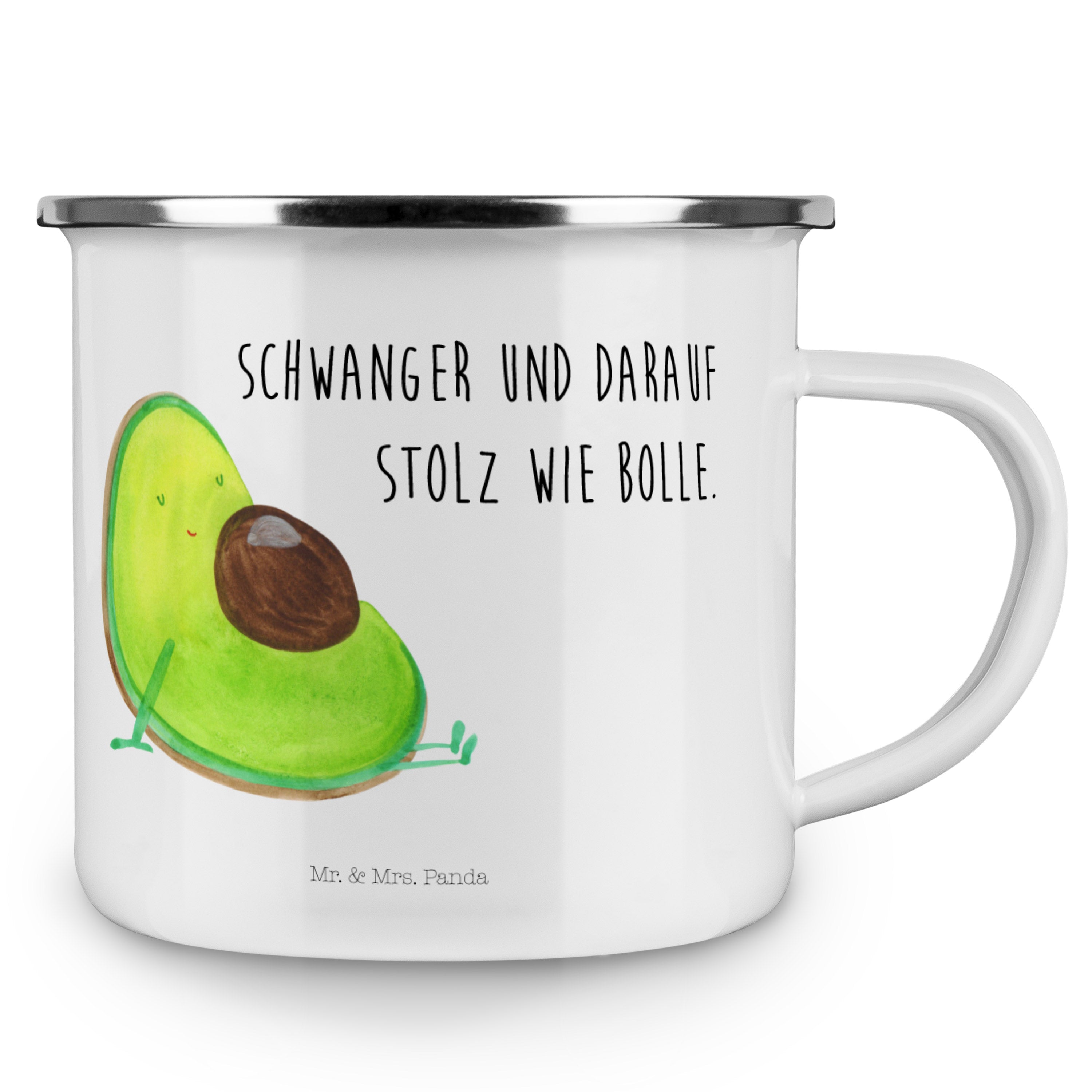 Camping Emaille Tasse Avocado schwanger - mit Spruch - Weiß