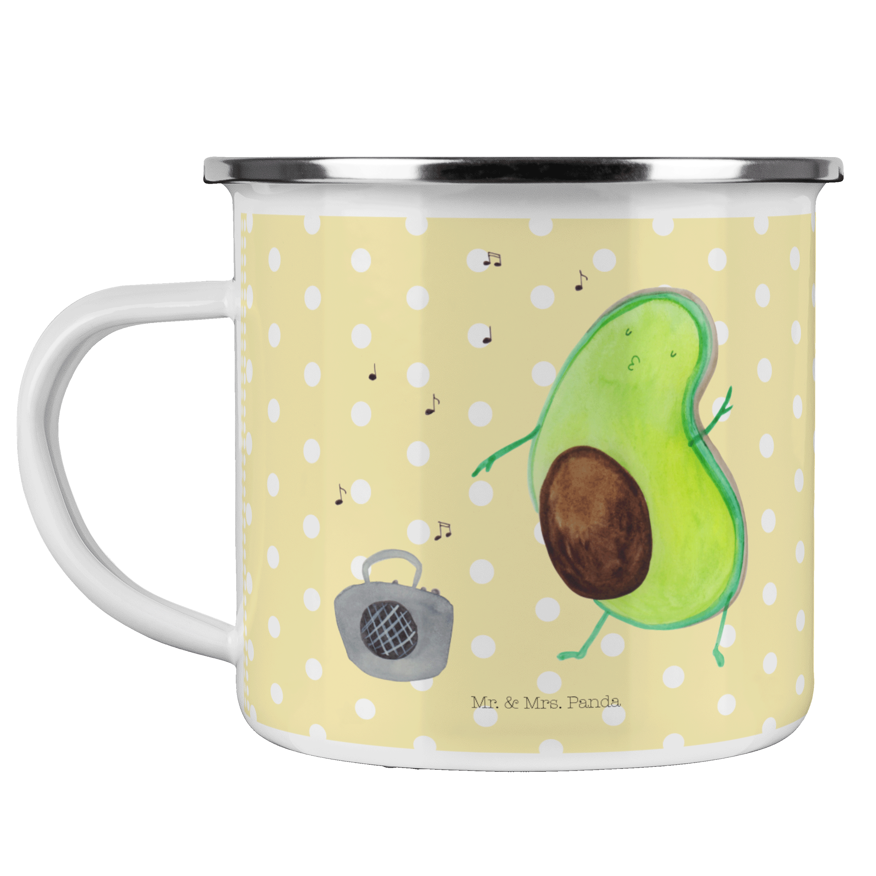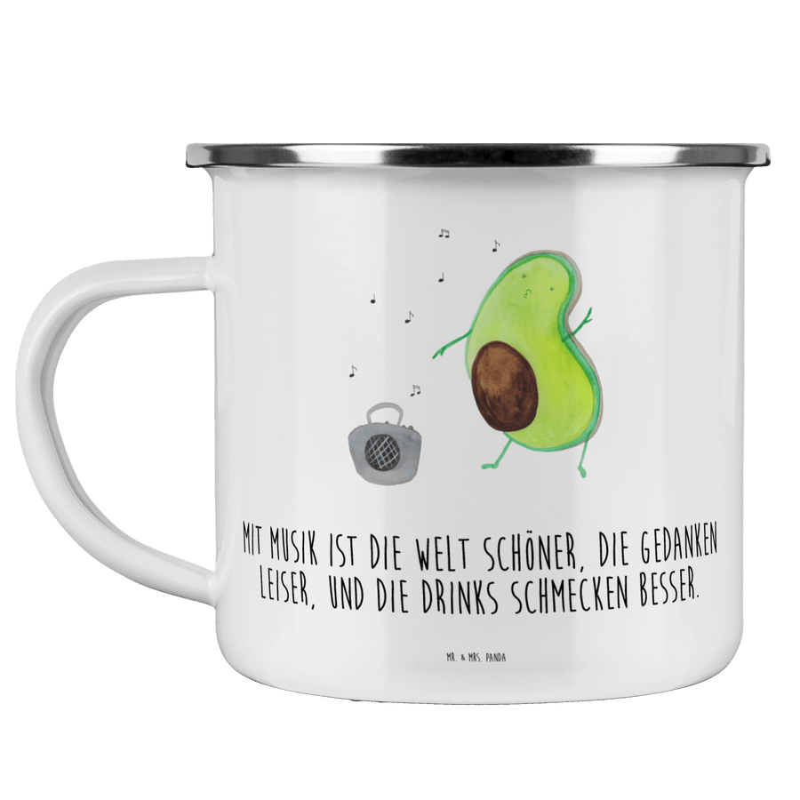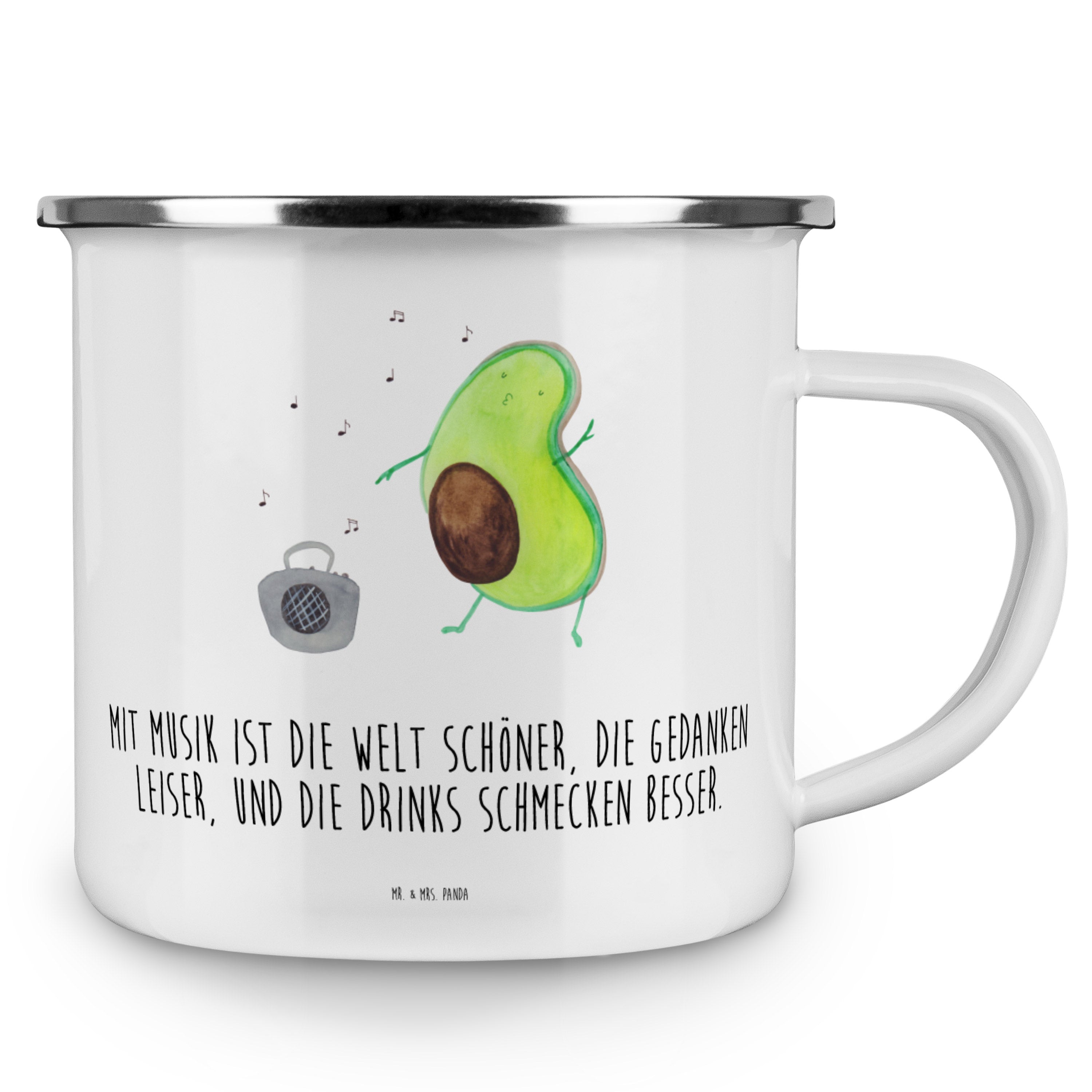 Camping Emaille Tasse Avocado tanzt - mit Spruch - Weiß