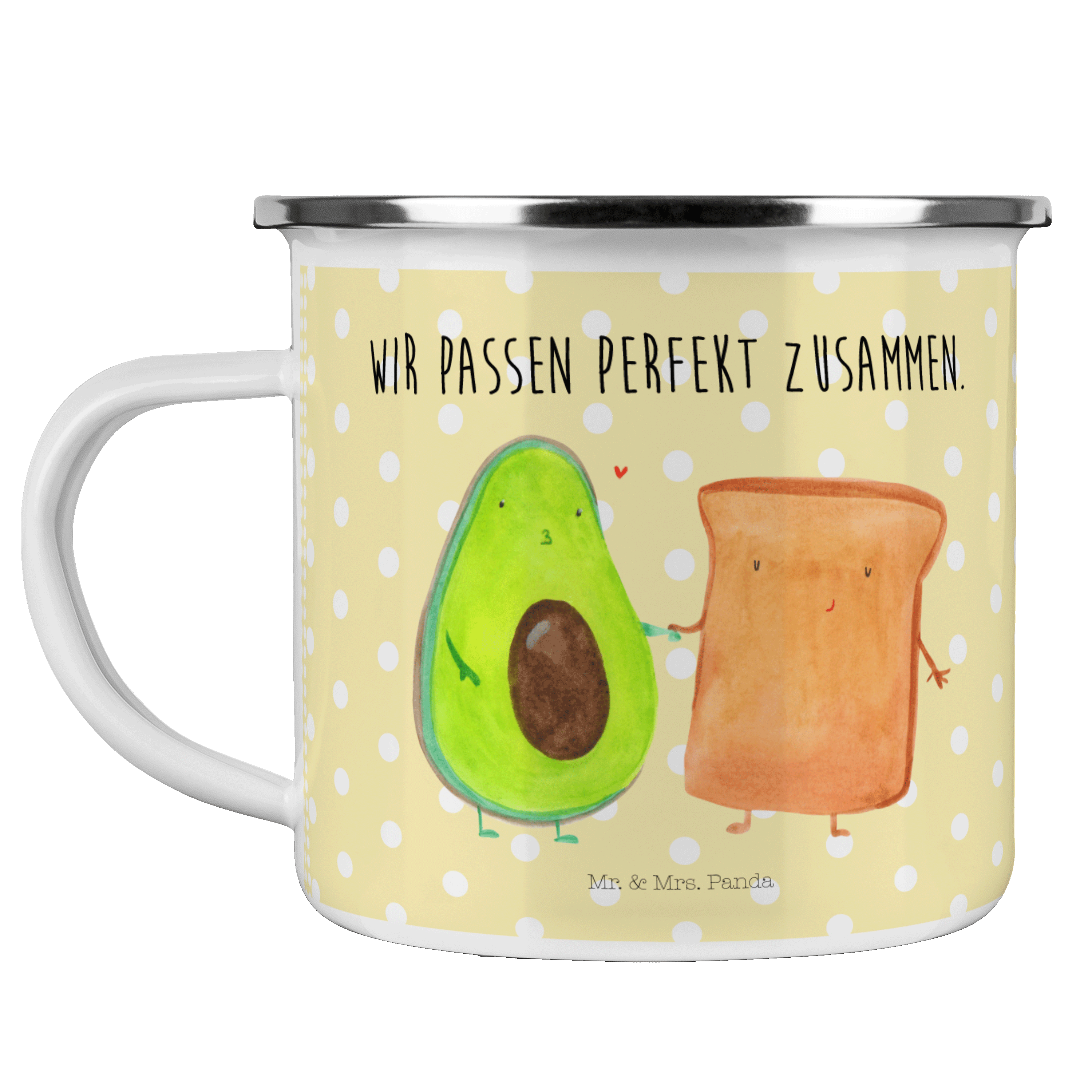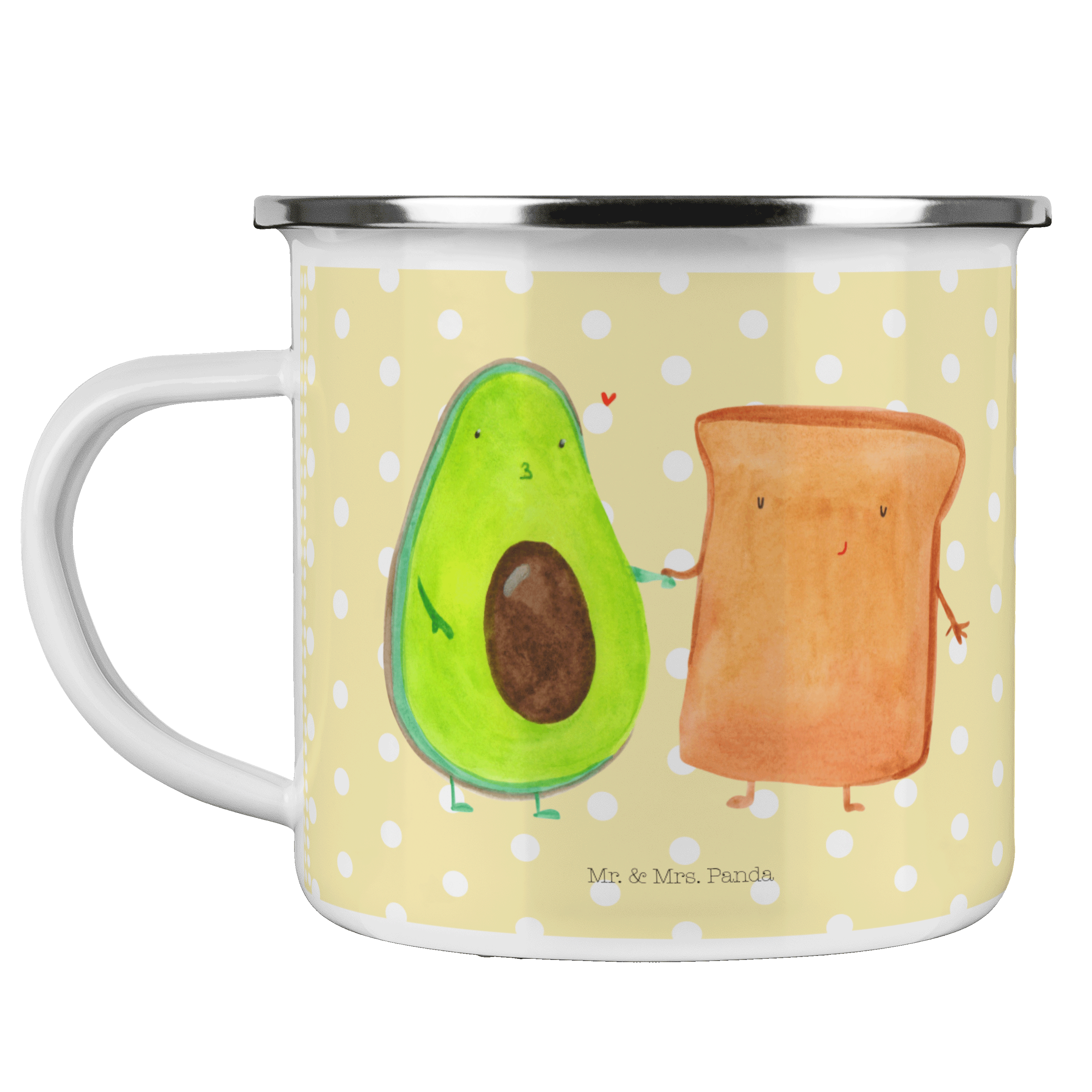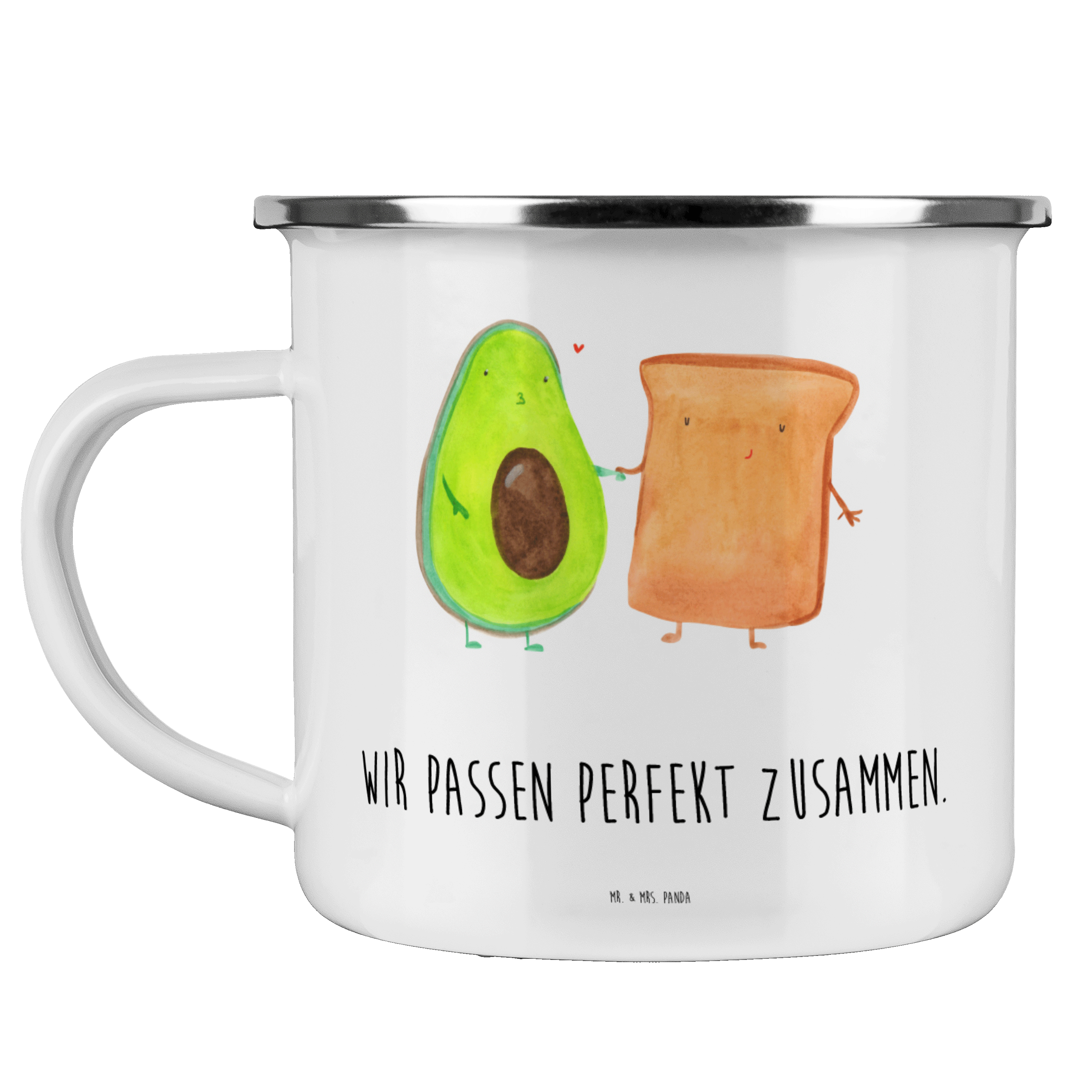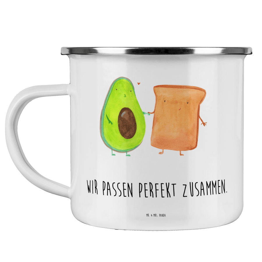 Camping Emaille Tasse Avocado + Toast - mit Spruch - Weiß