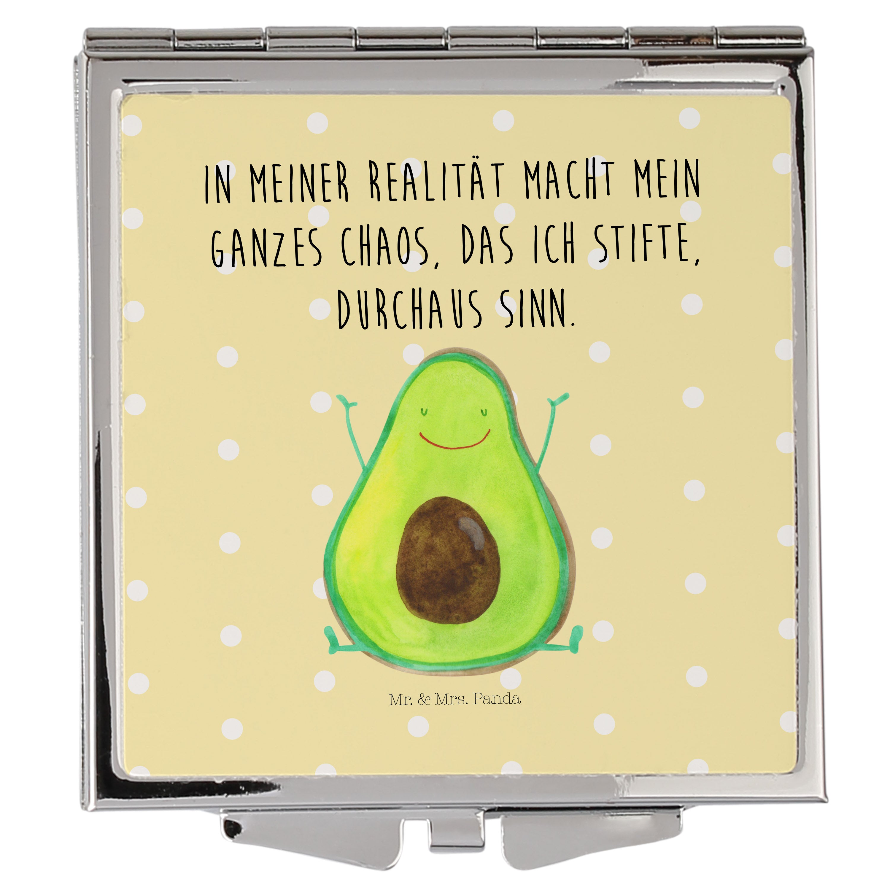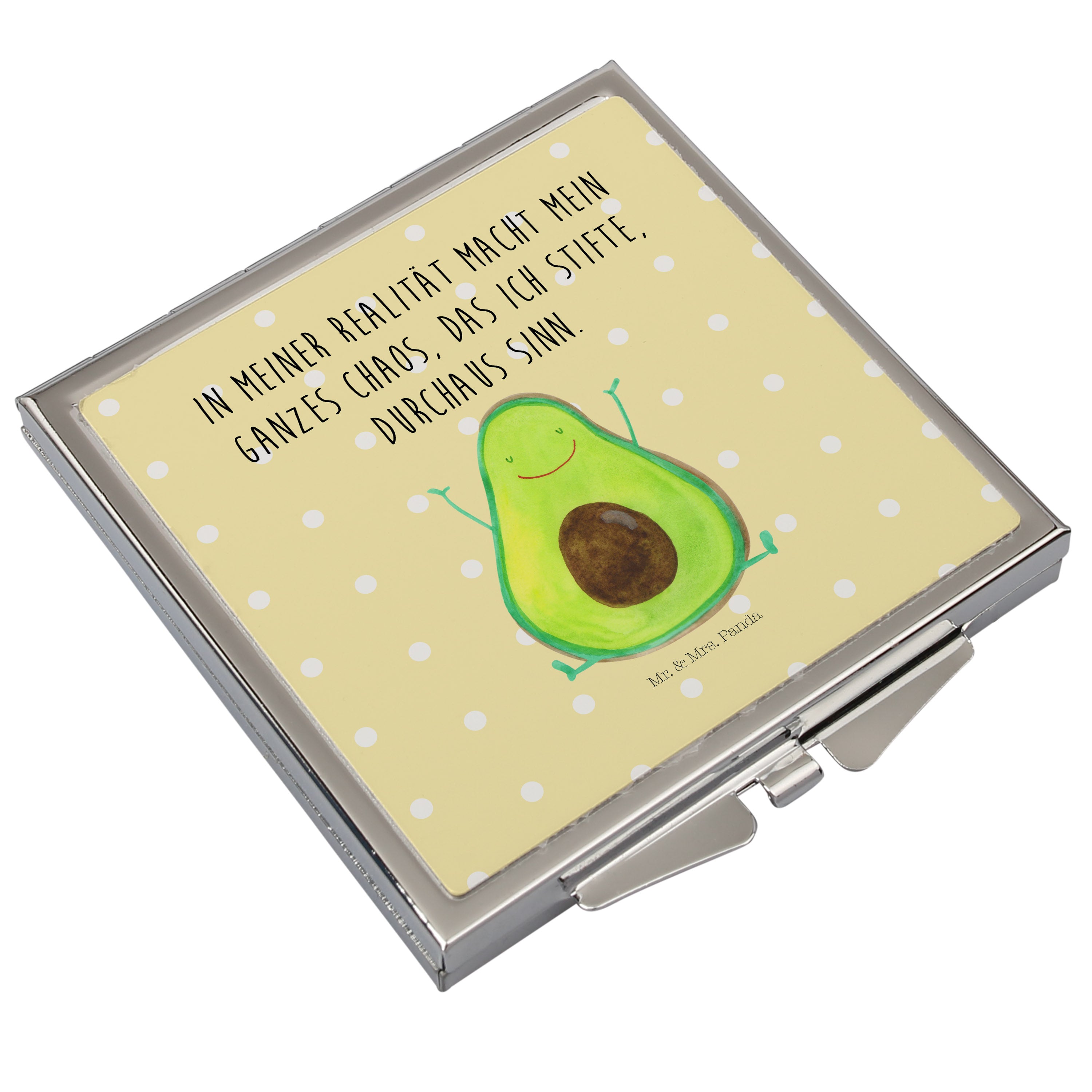 Handtaschenspiegel quadratisch Avocado Happy - mit Spruch - Gelb Pastell