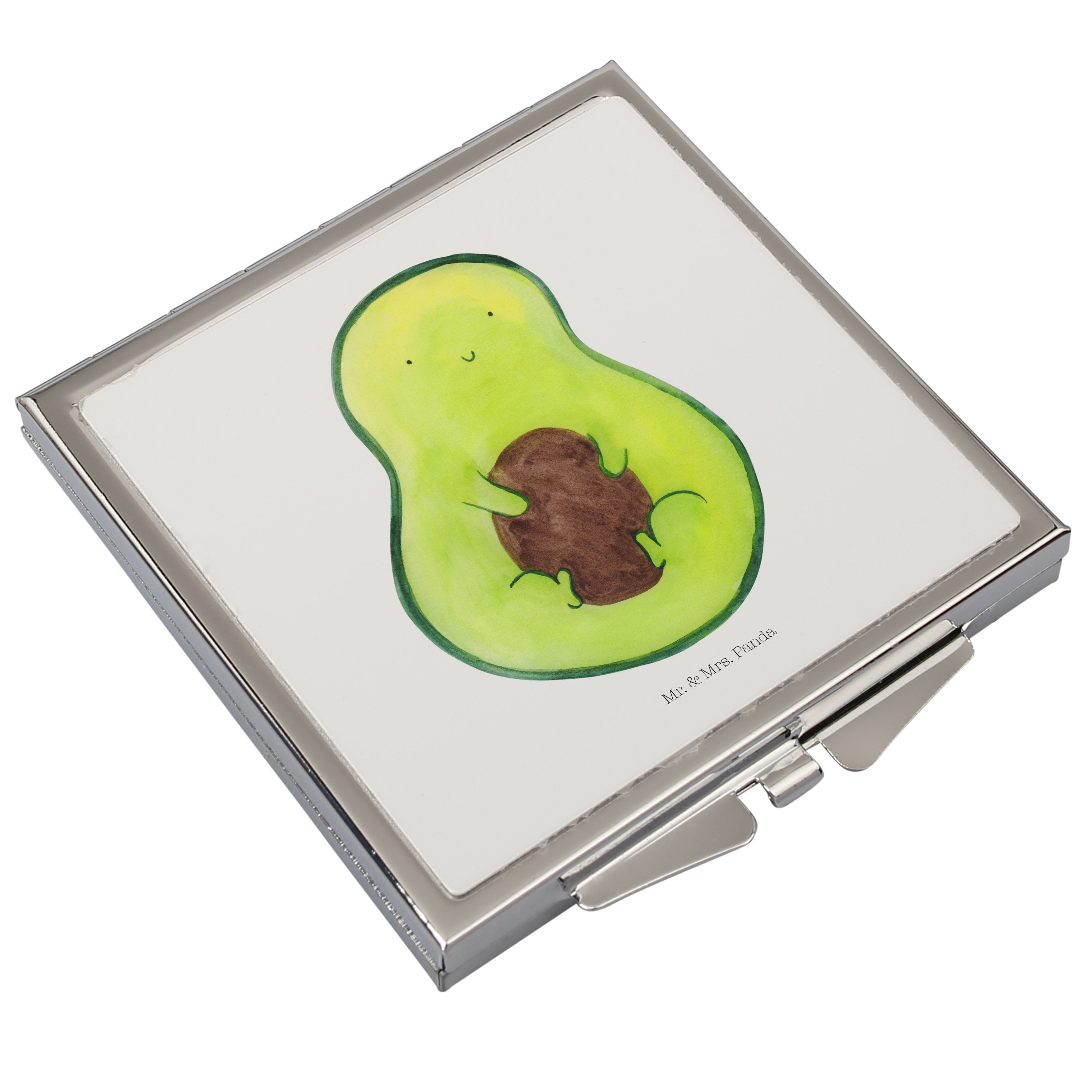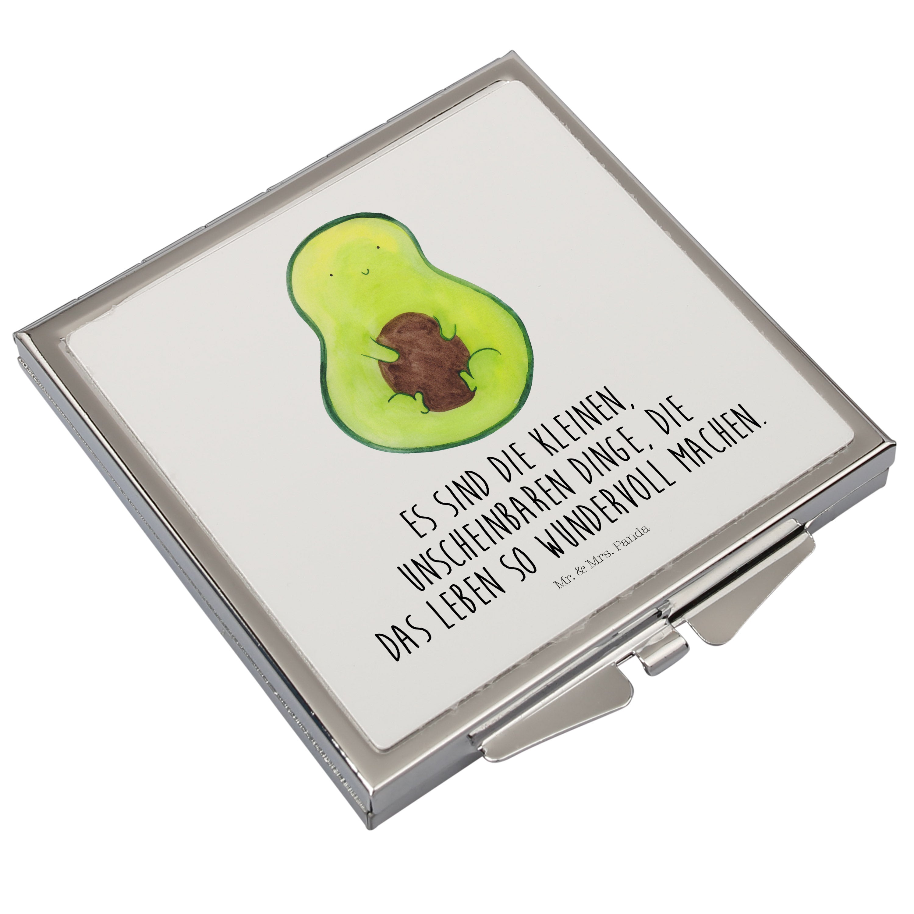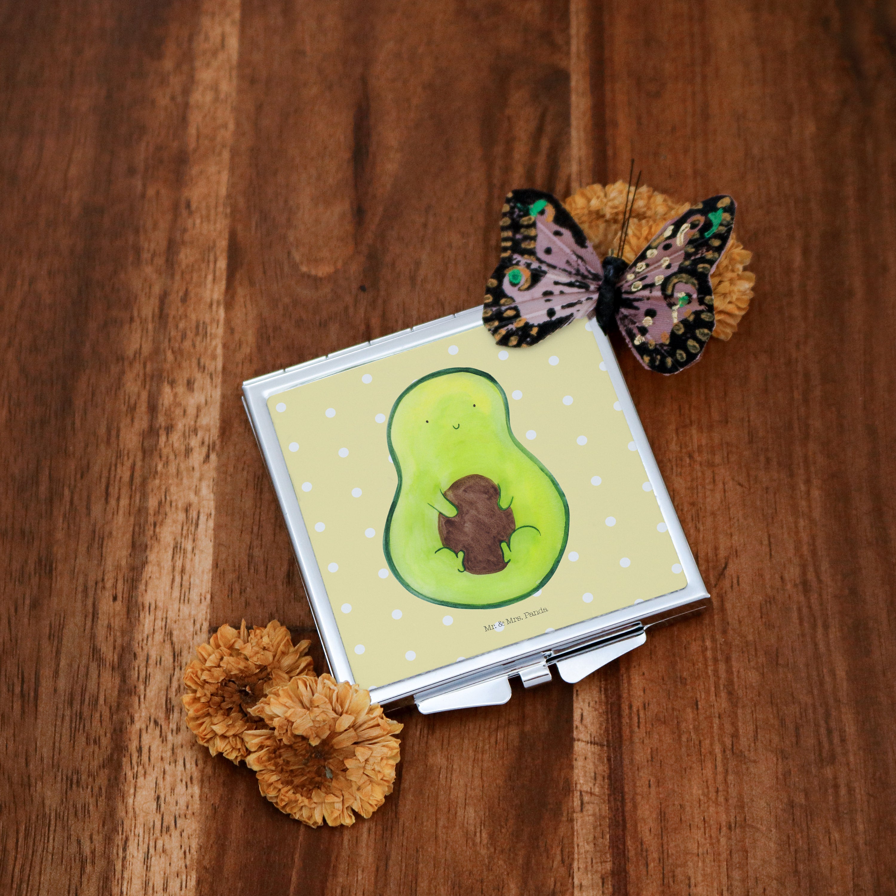 Handtaschenspiegel quadratisch Avocado mit Kern - mit Spruch - Gelb Pastell