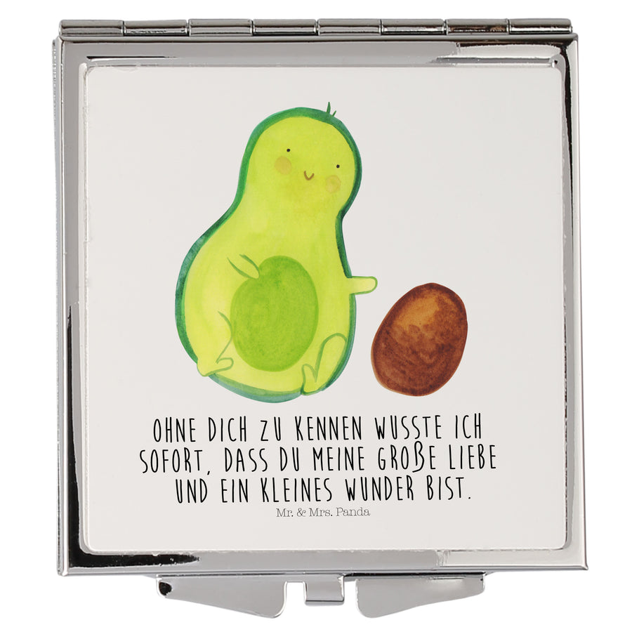 Handtaschenspiegel quadratisch Avocado rollt Kern - mit Spruch - Weiß