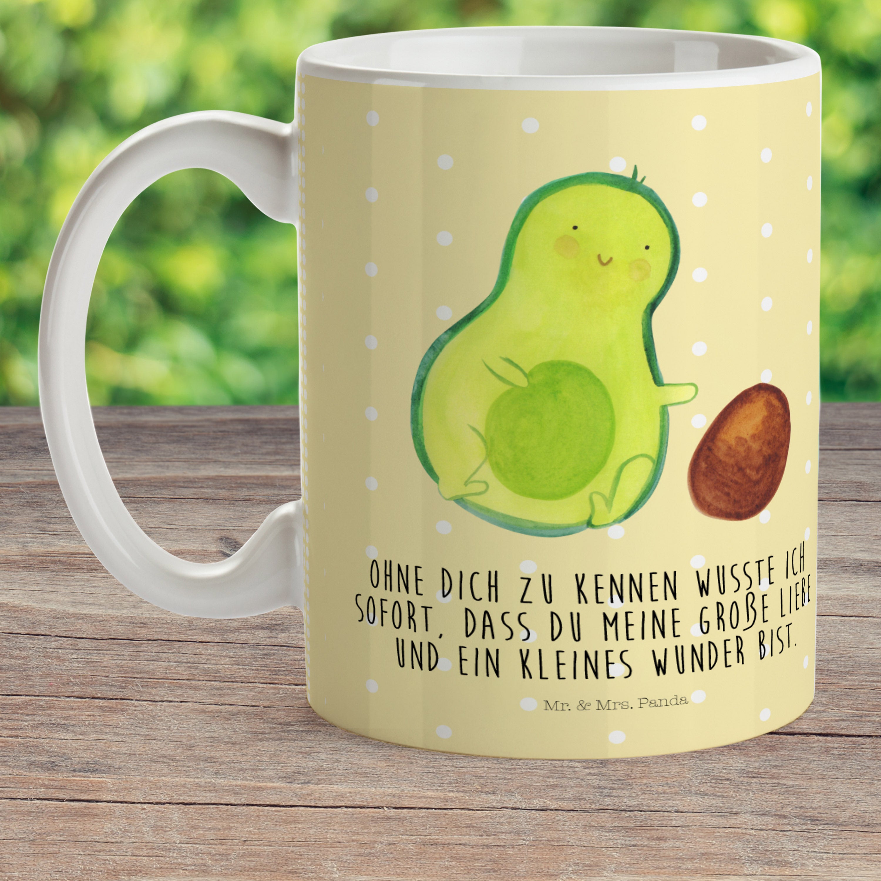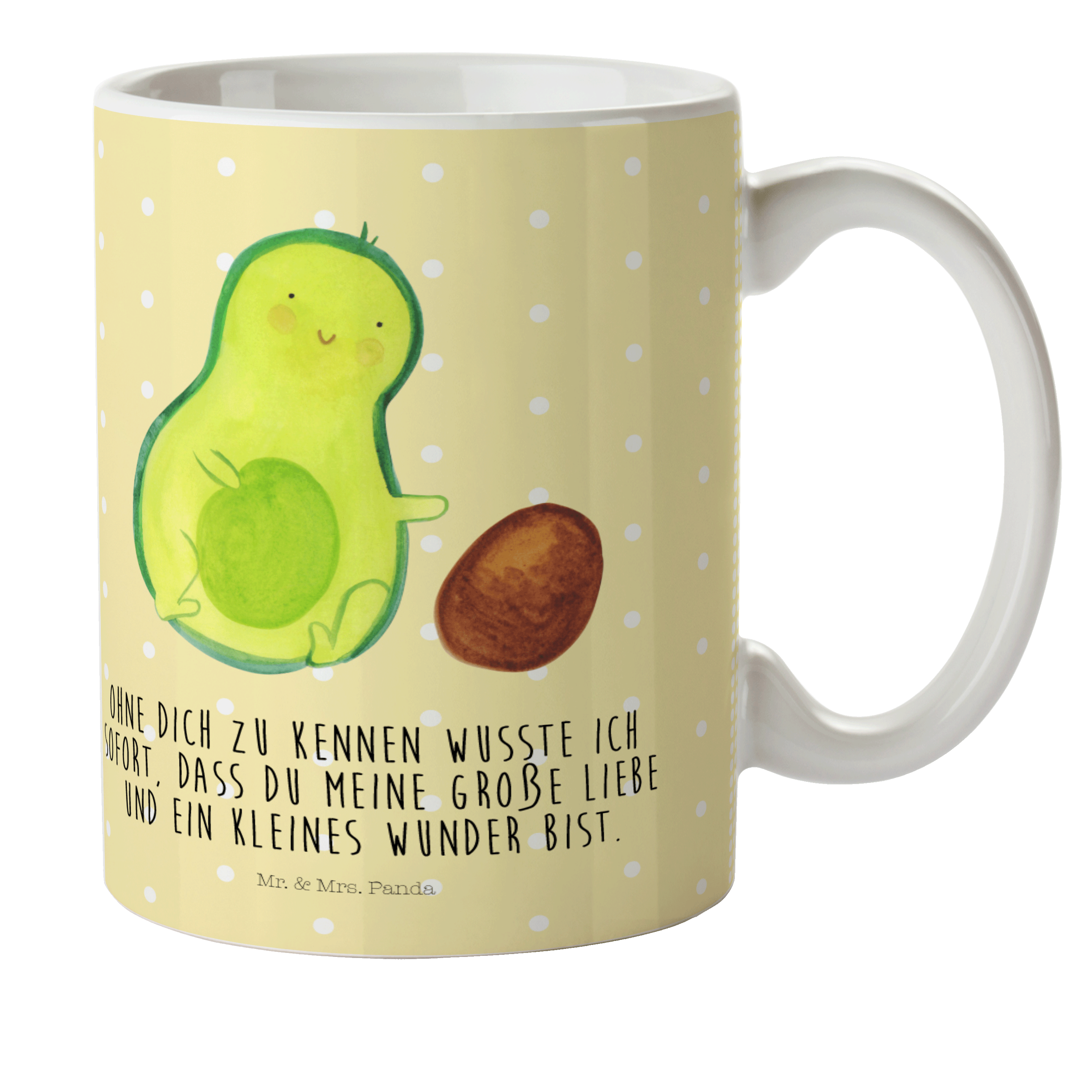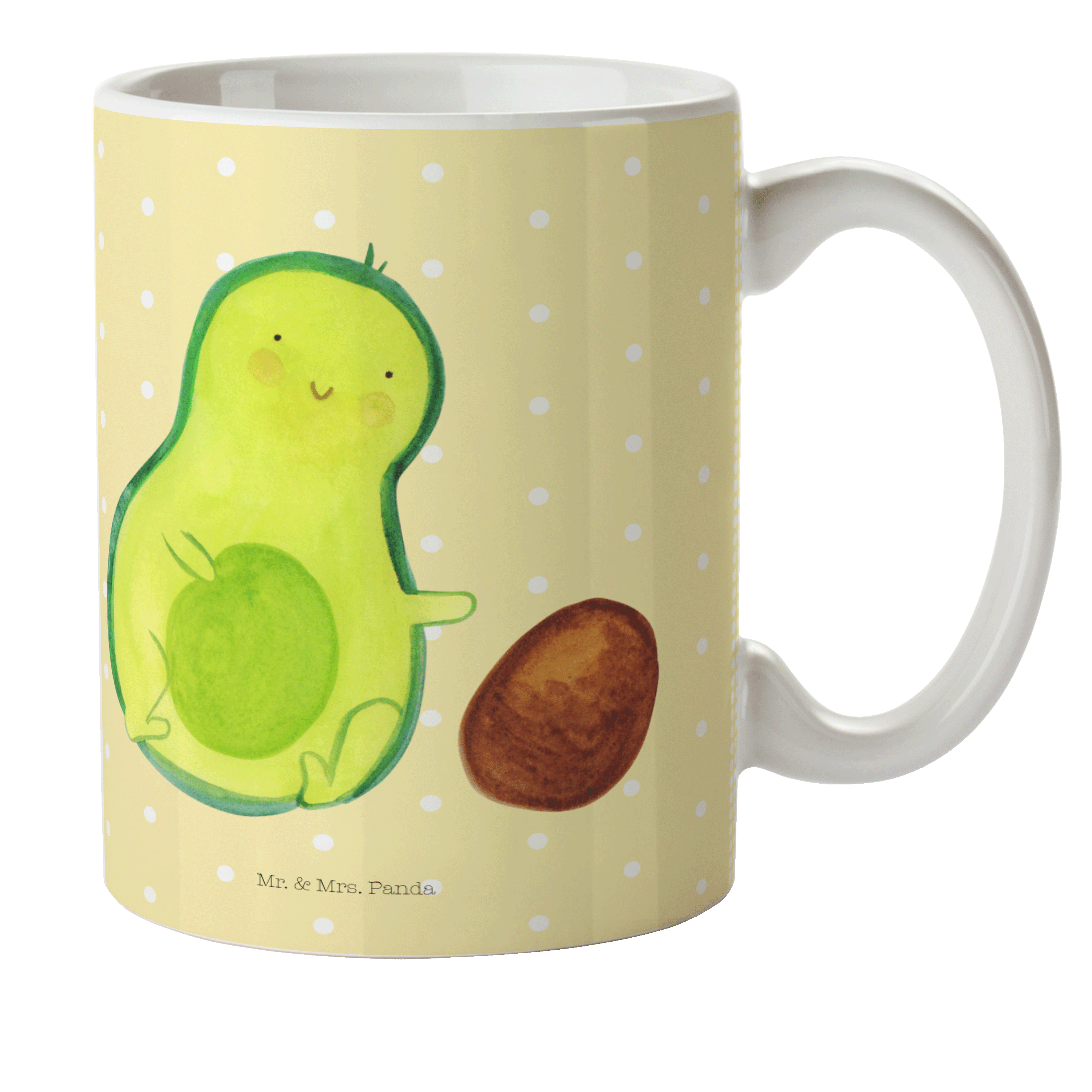 Kindertasse Avocado rollt Kern - mit Spruch - Gelb Pastell
