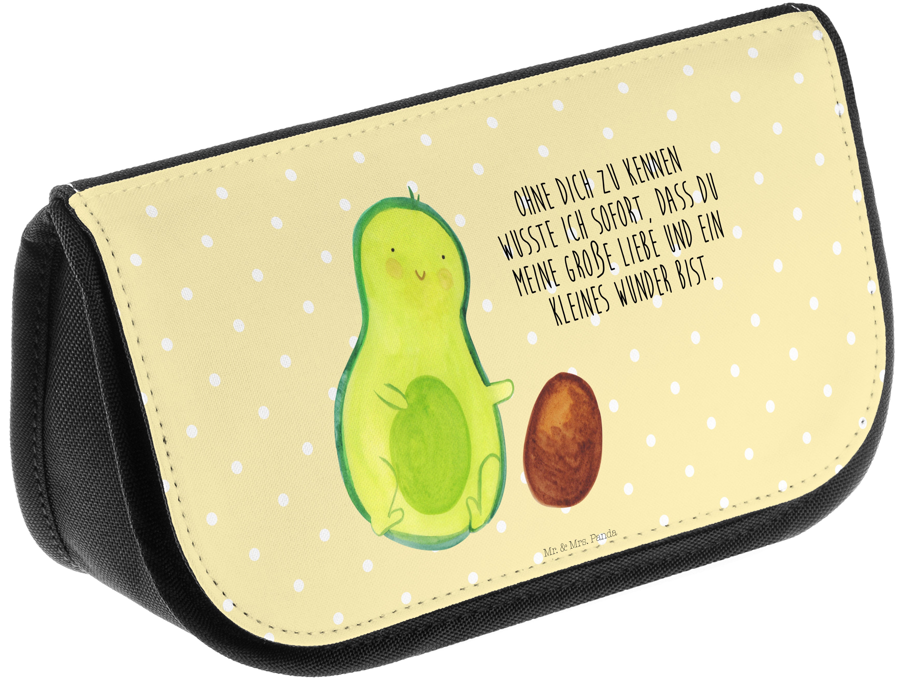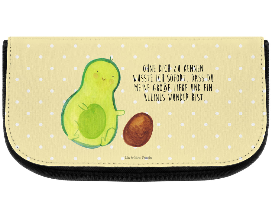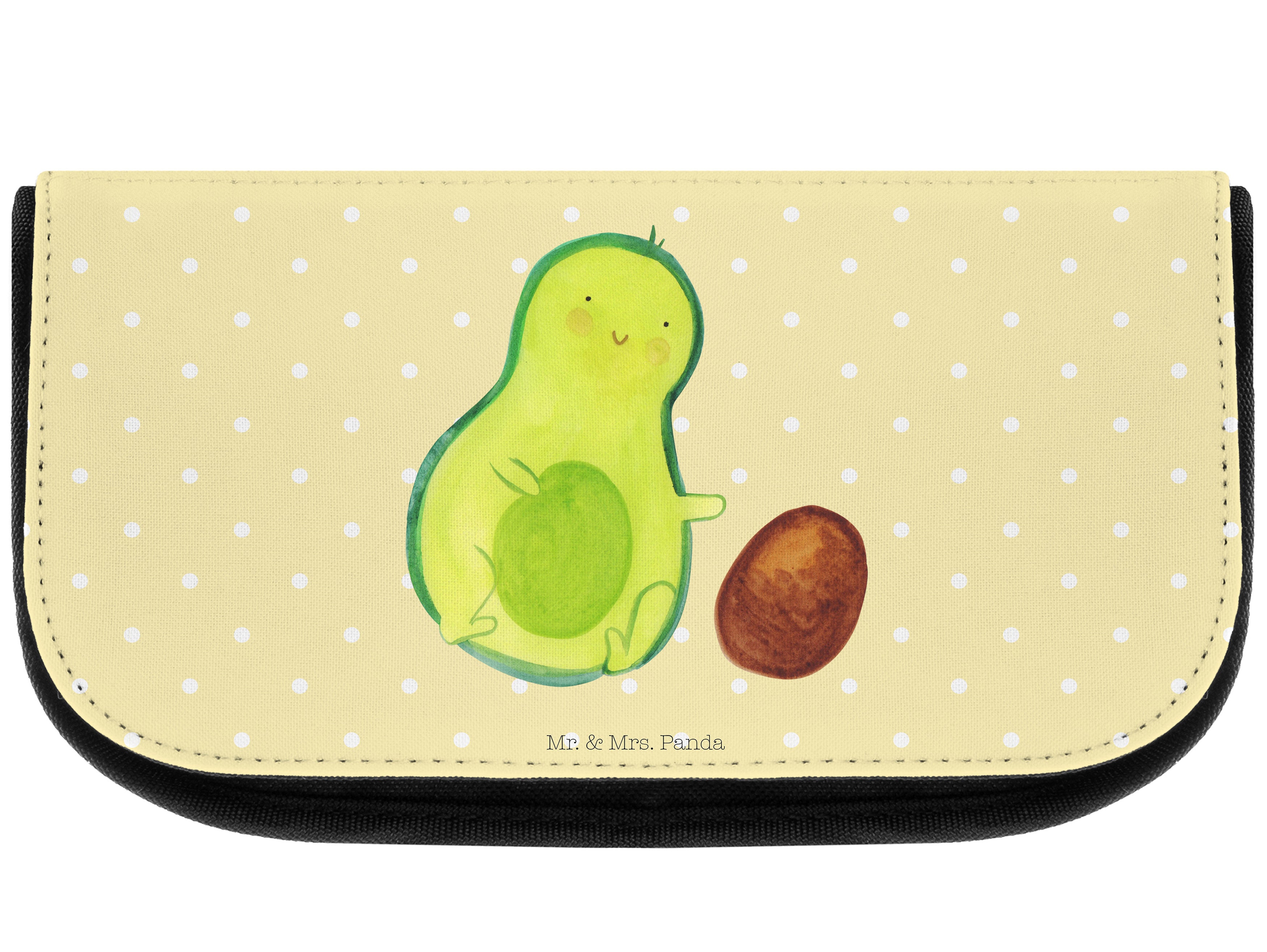 Kosmetiktasche Avocado rollt Kern - mit Spruch - Gelb Pastell