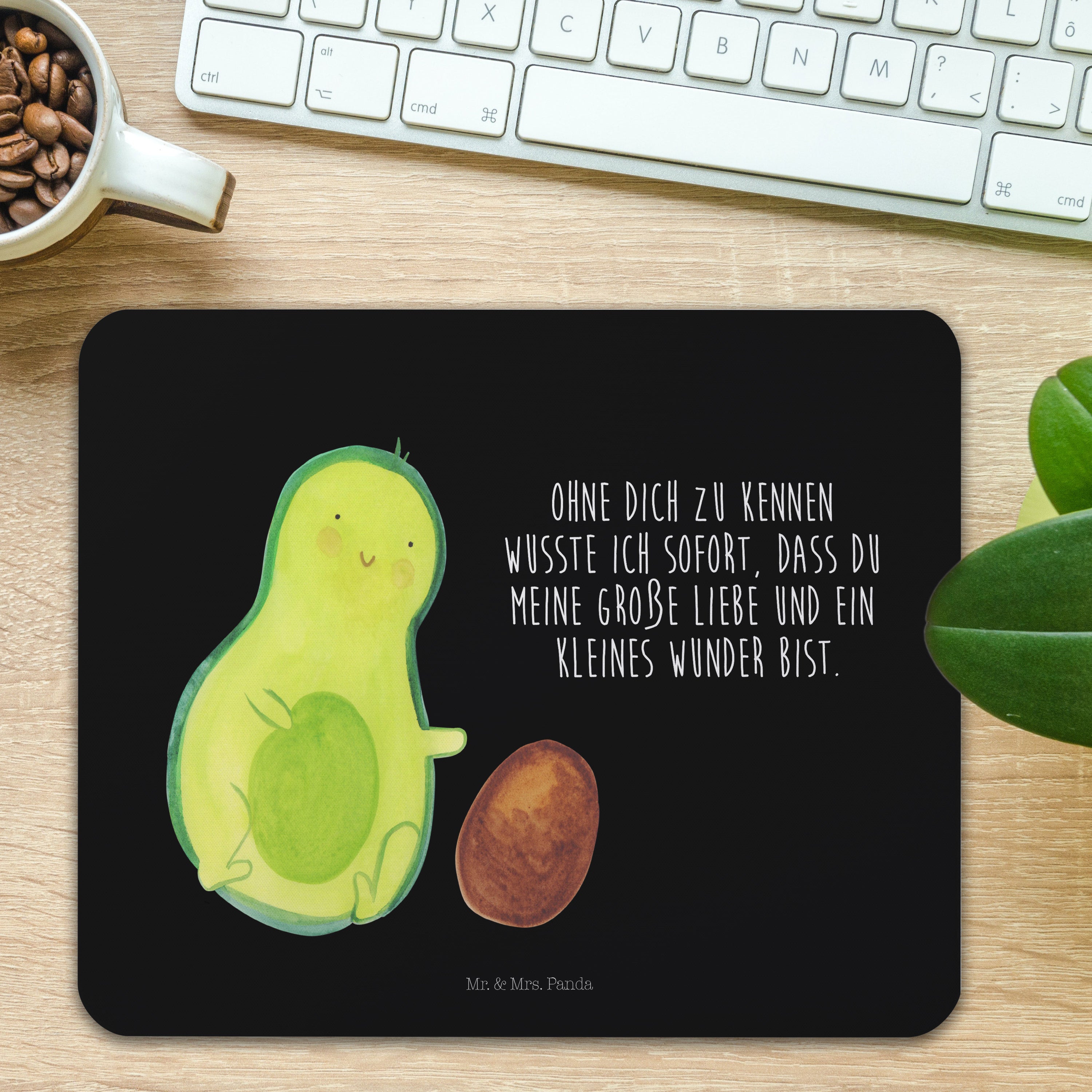 Mauspad Avocado rollt Kern - mit Spruch - Schwarz