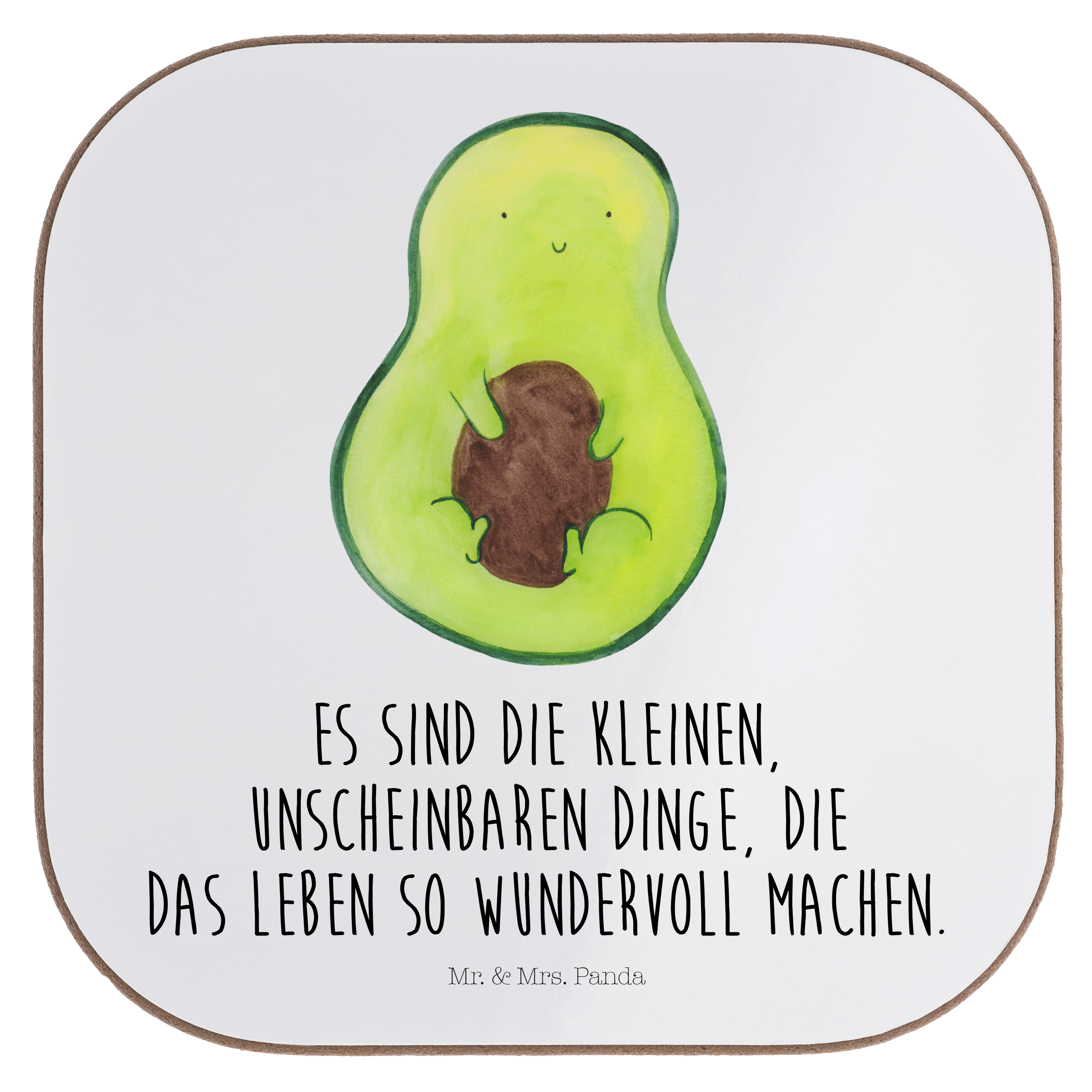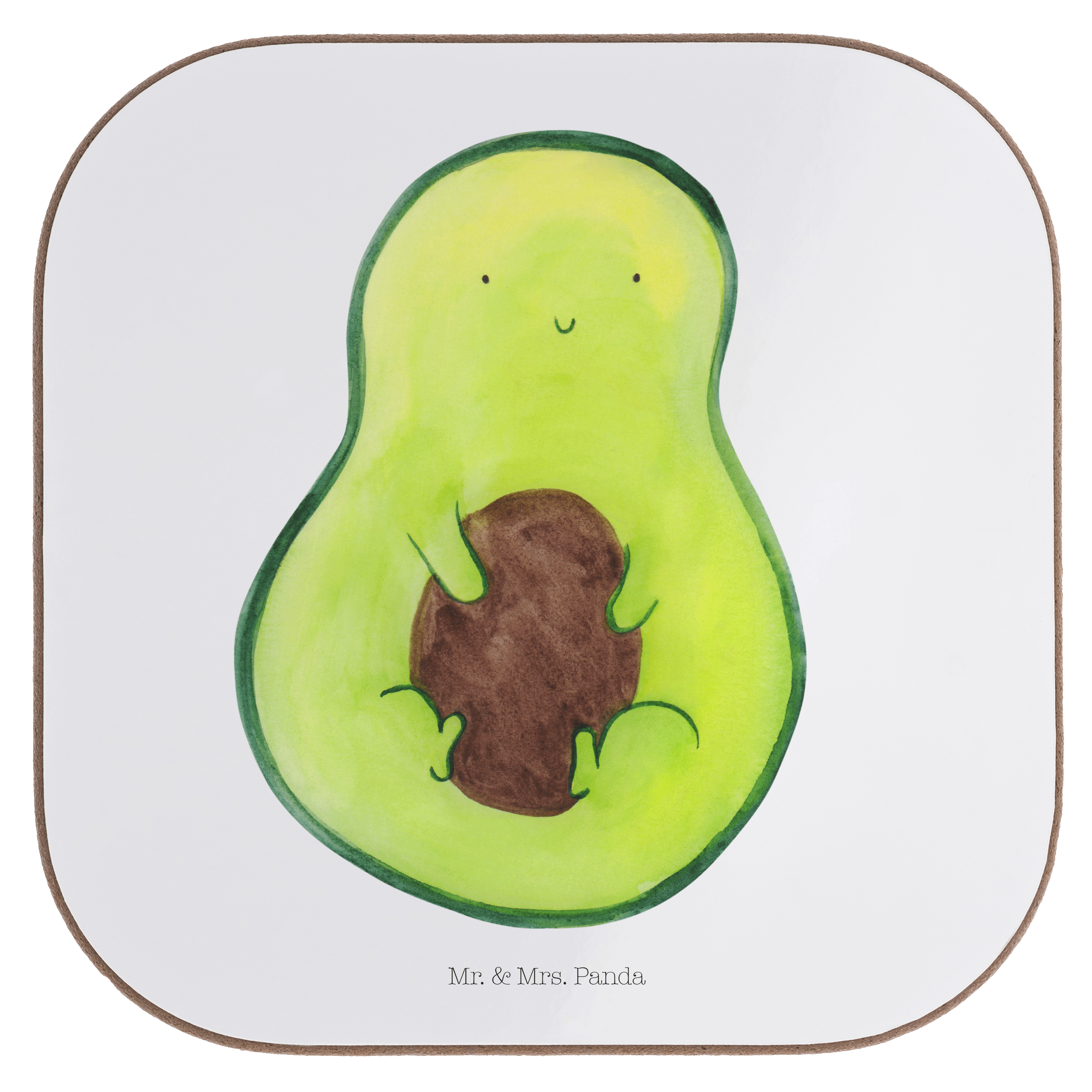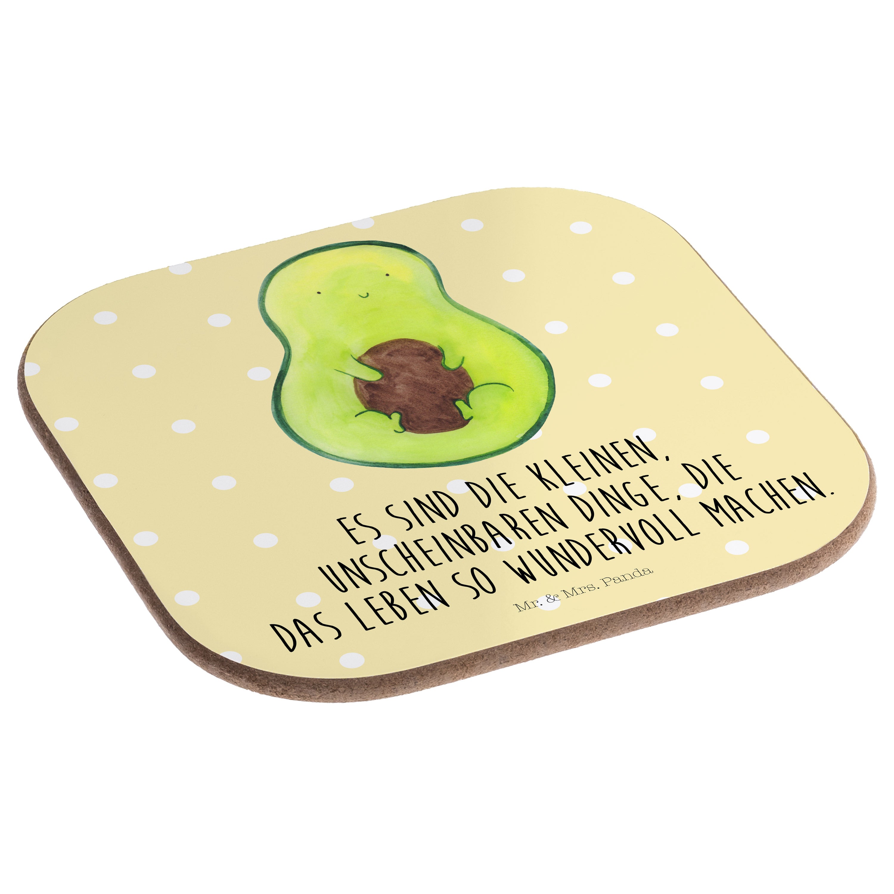 Quadratische Untersetzer Avocado mit Kern - mit Spruch - Gelb Pastell