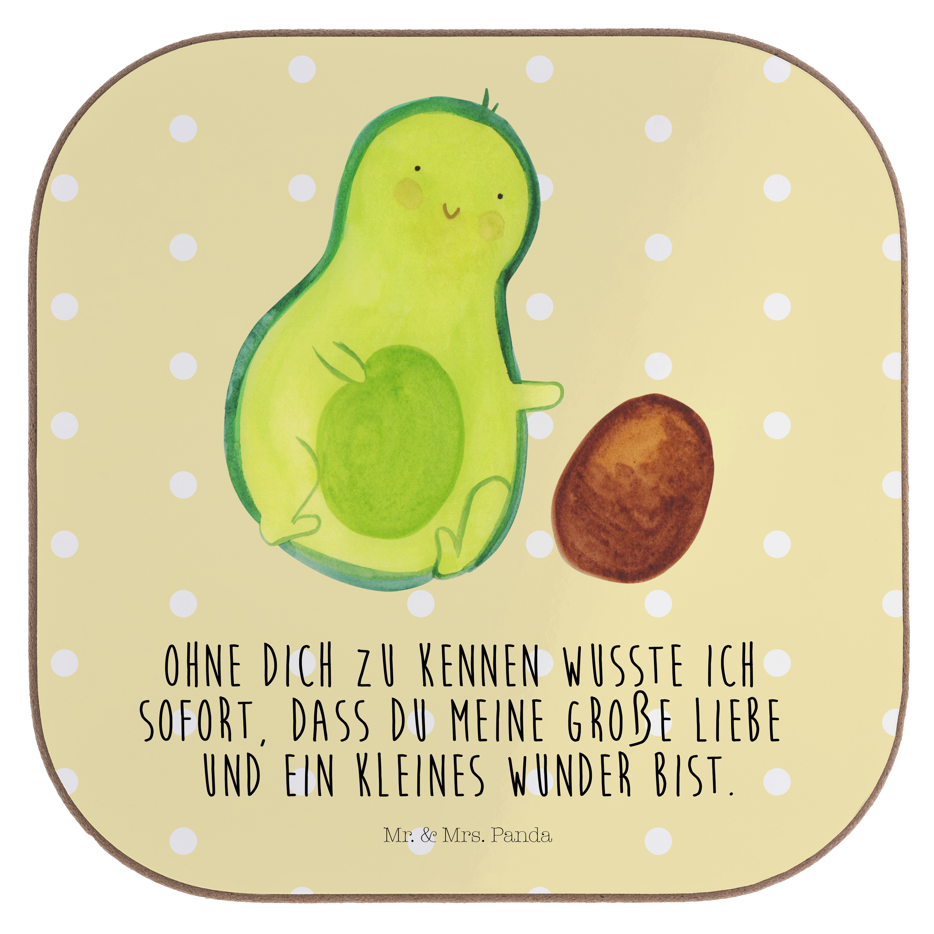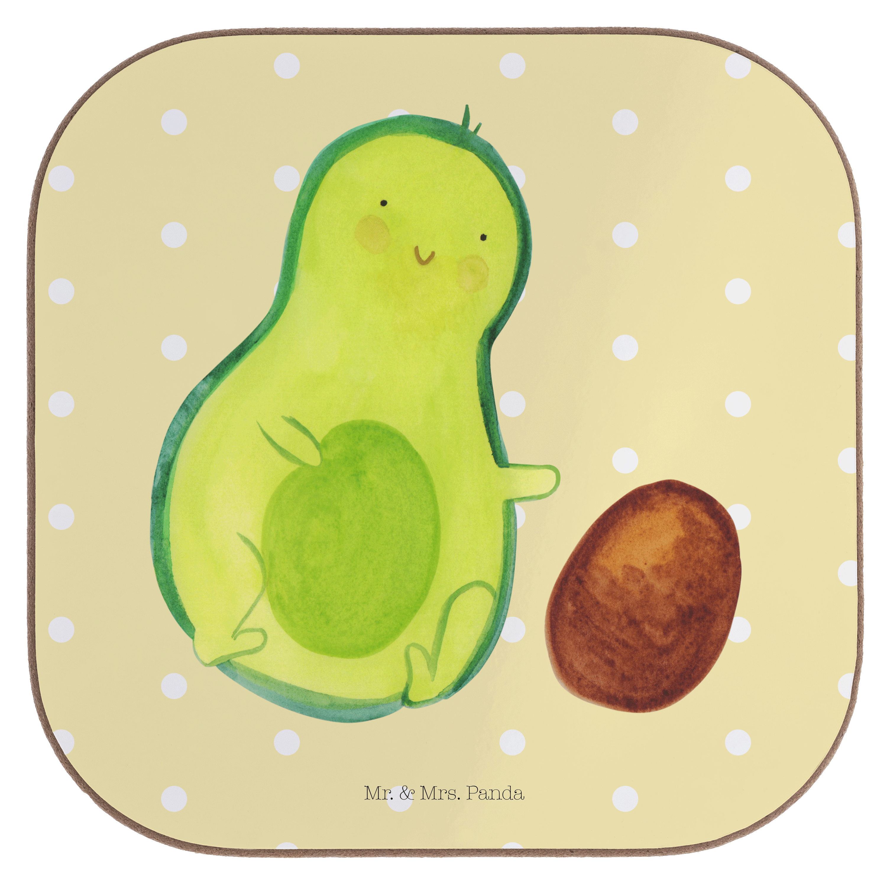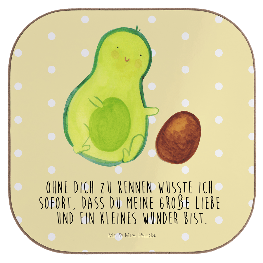 Quadratische Untersetzer Avocado rollt Kern - mit Spruch - Gelb Pastell