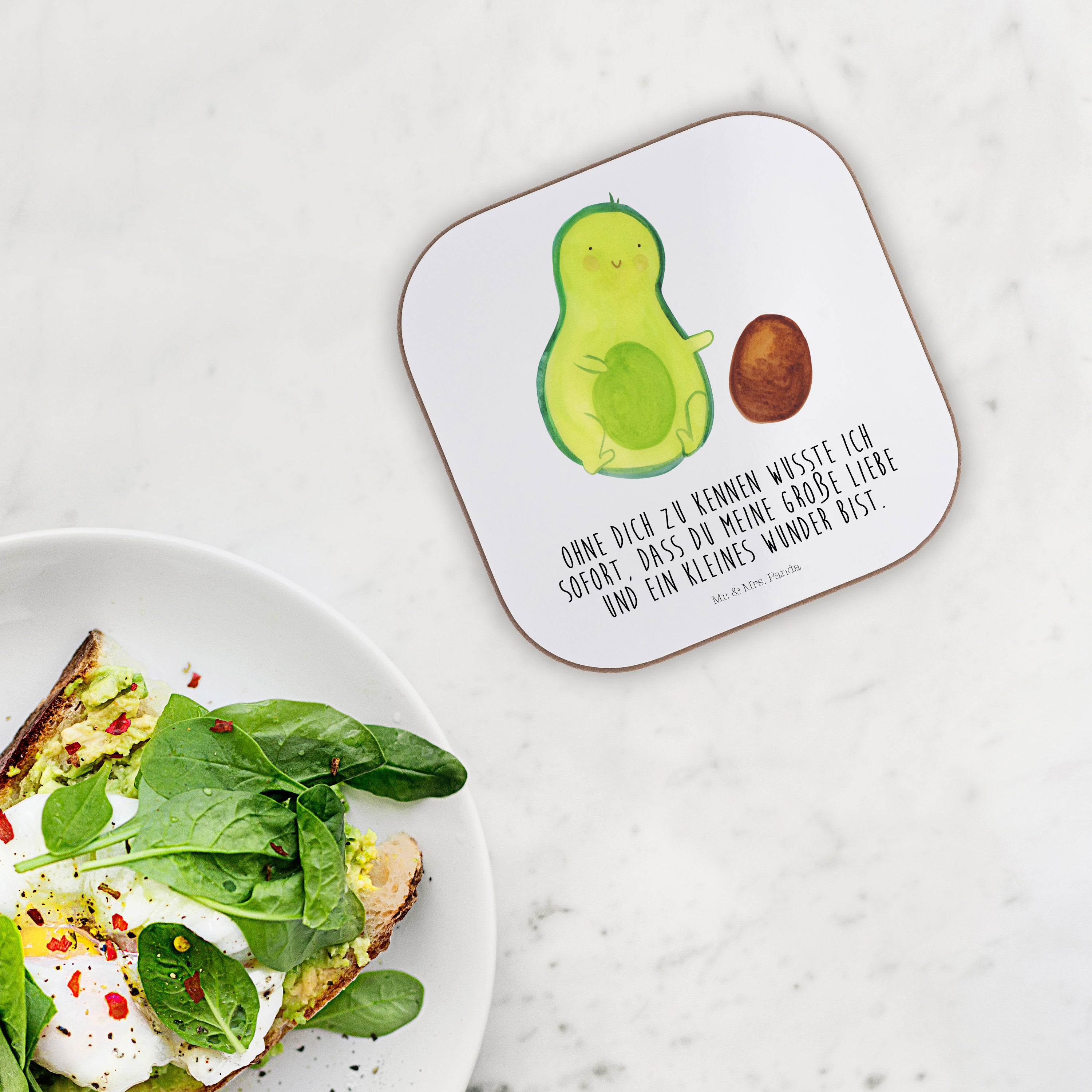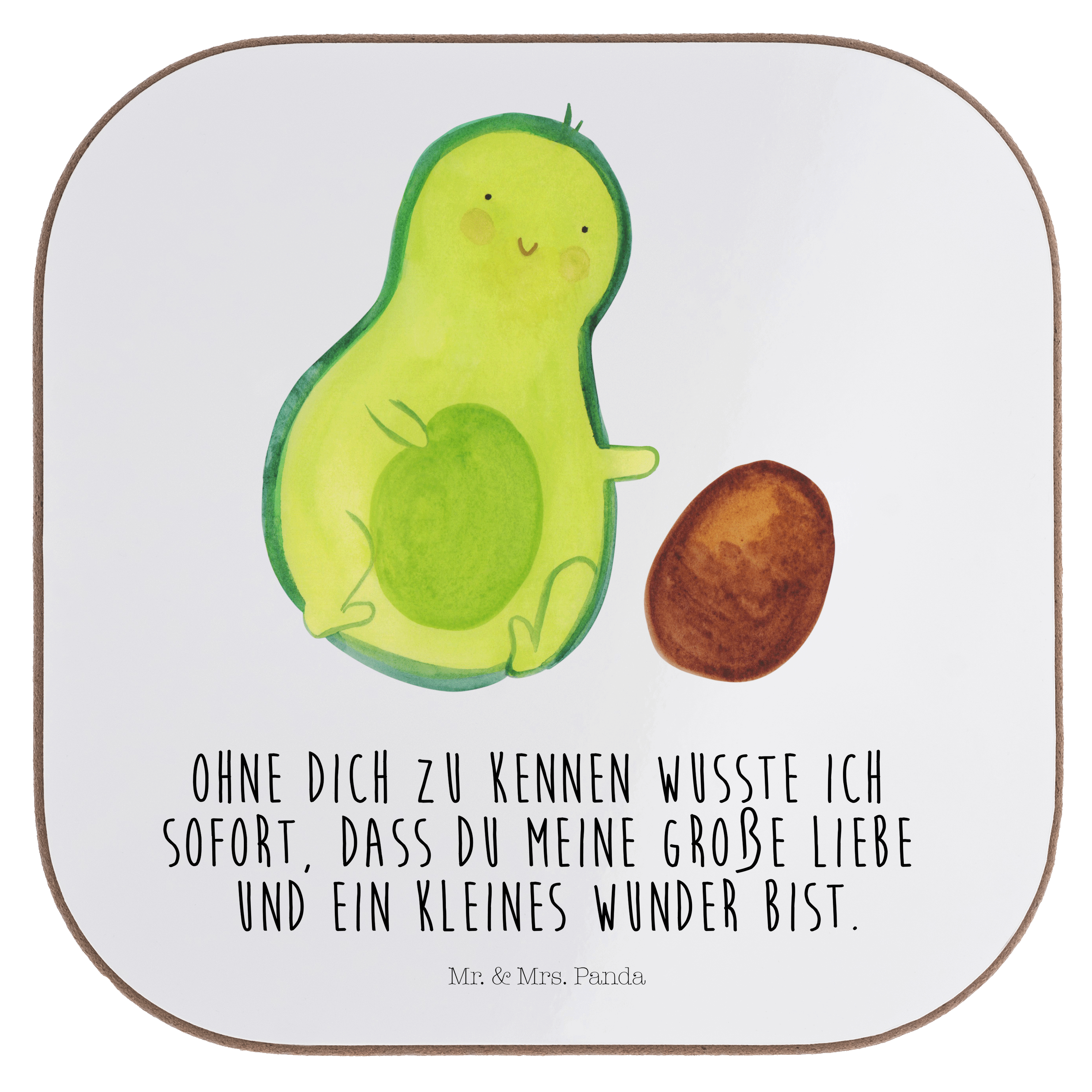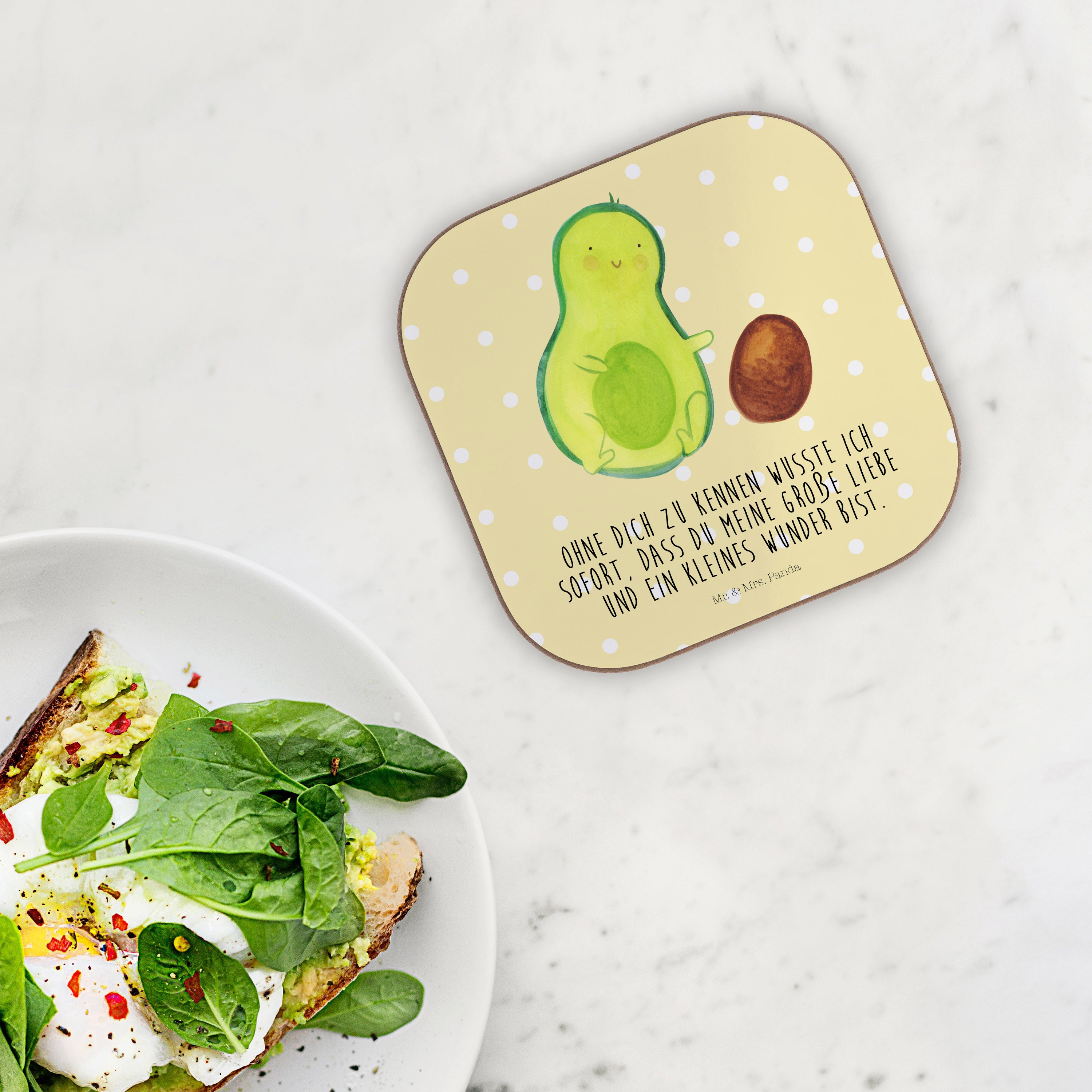 Quadratische Untersetzer Avocado rollt Kern - mit Spruch - Gelb Pastell