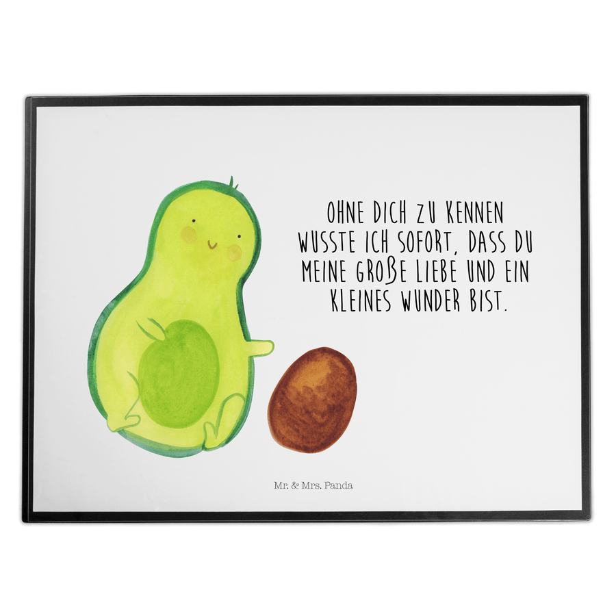 Schreibtischunterlage Avocado rollt Kern - mit Spruch - Weiß