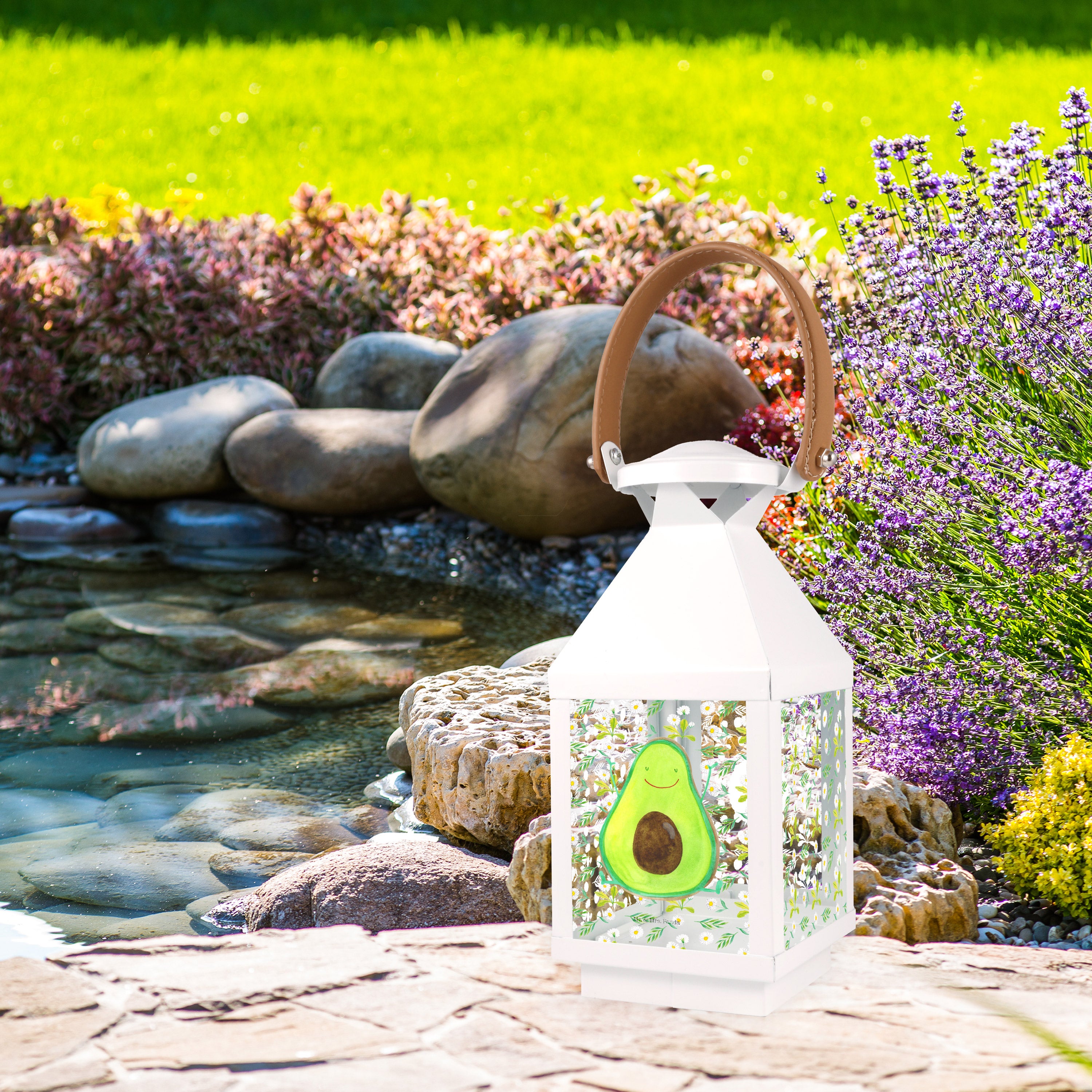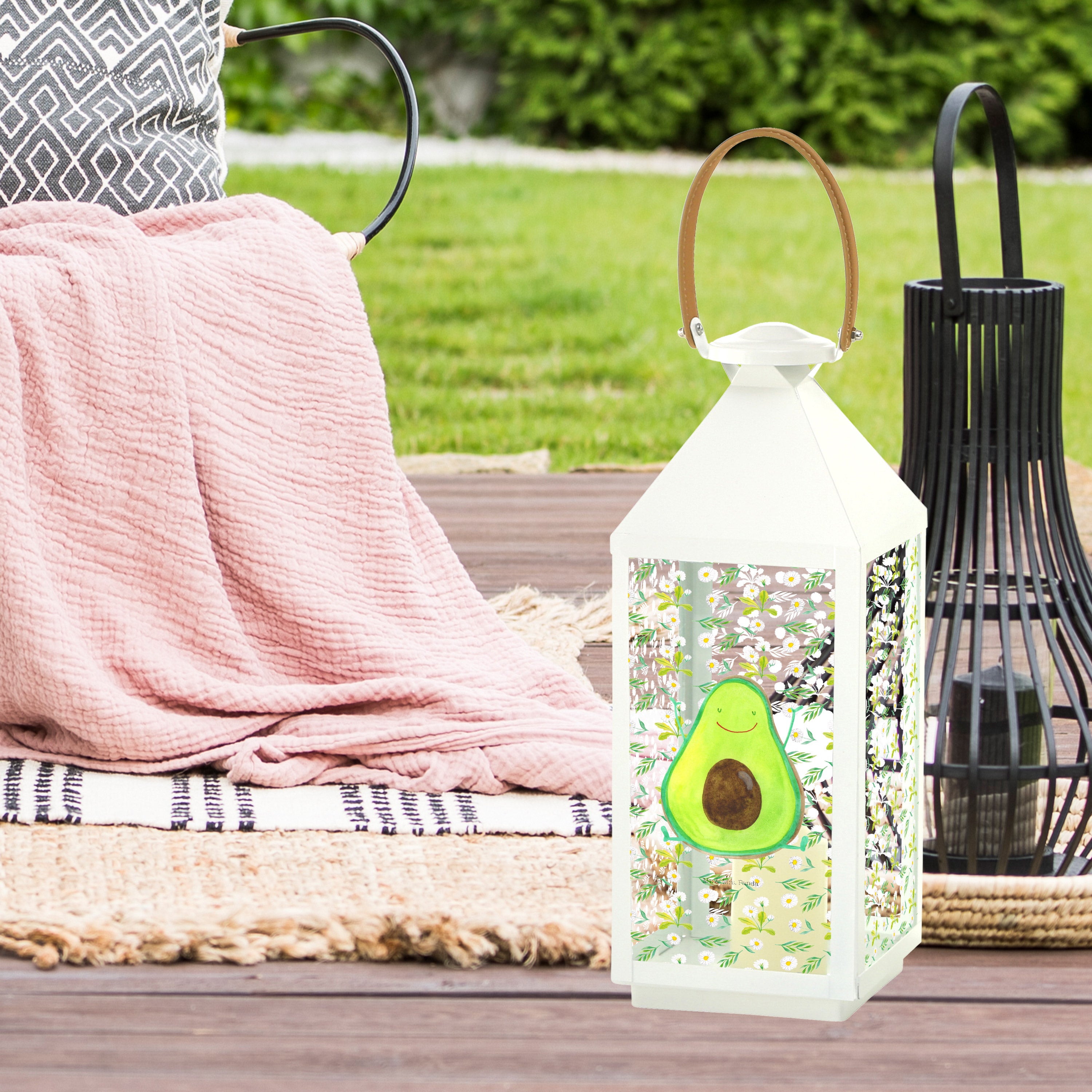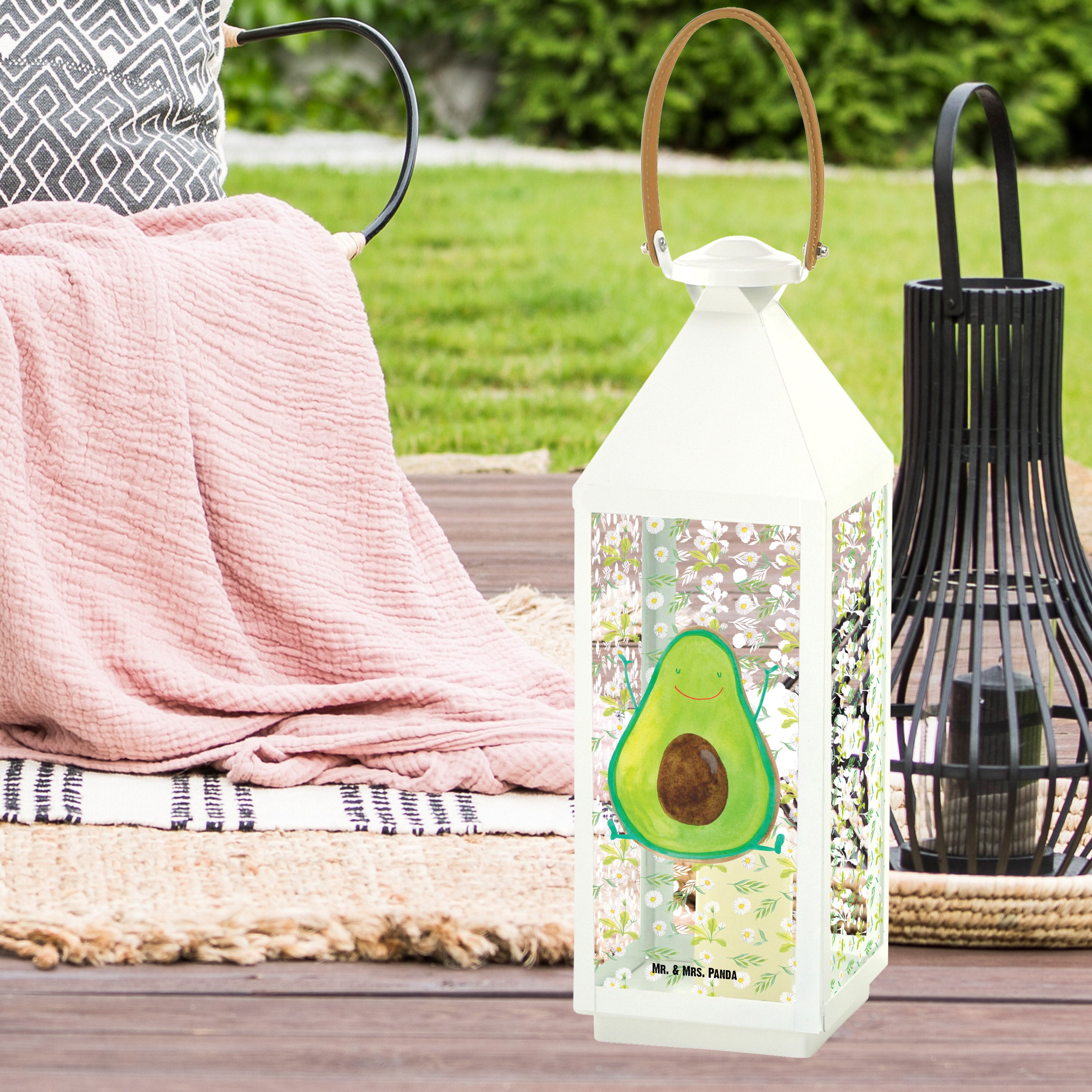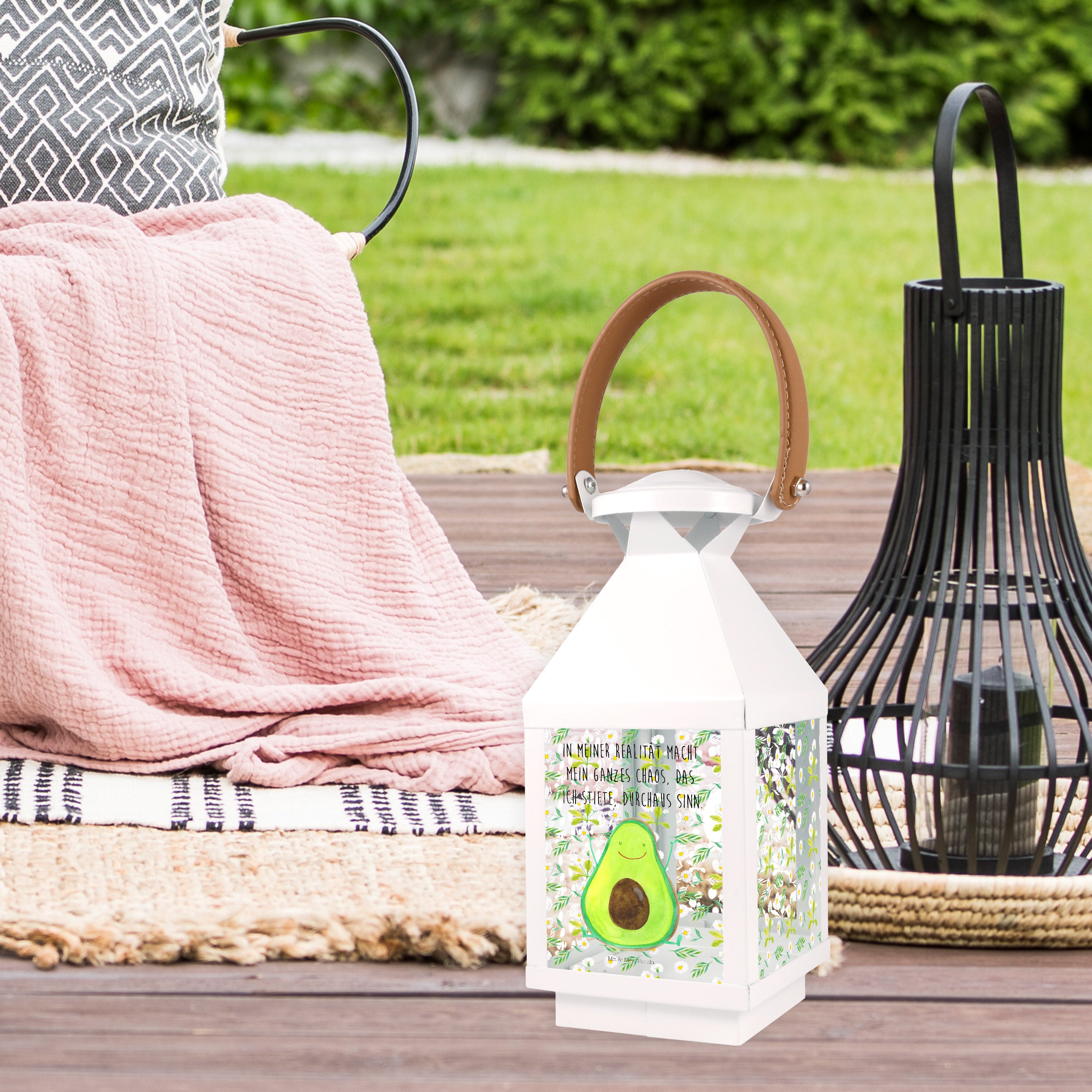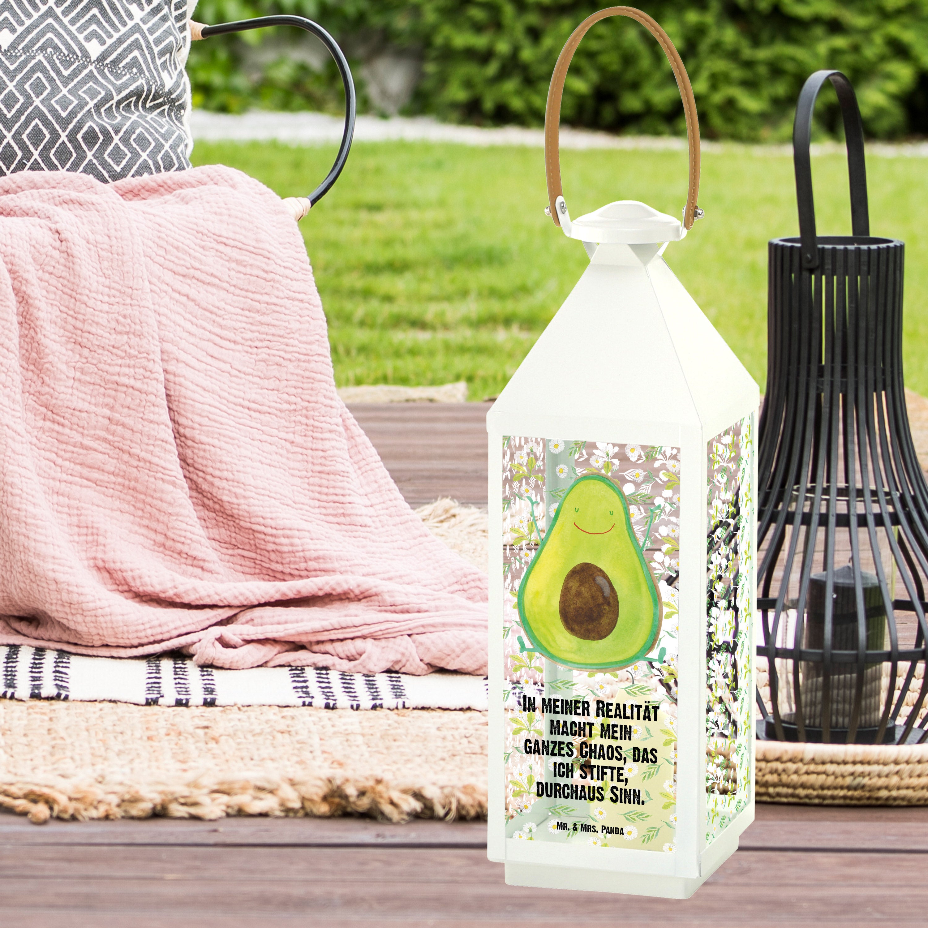 Deko Laterne Avocado Happy - L - mit Spruch
