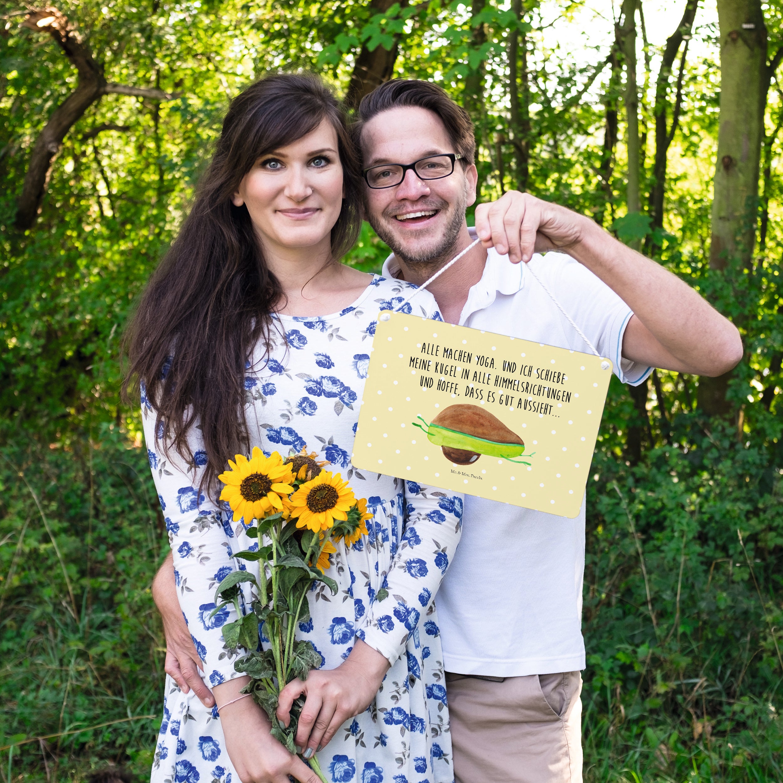 Dekoschild Avocado Yoga - Gelb Pastell - mit Spruch
