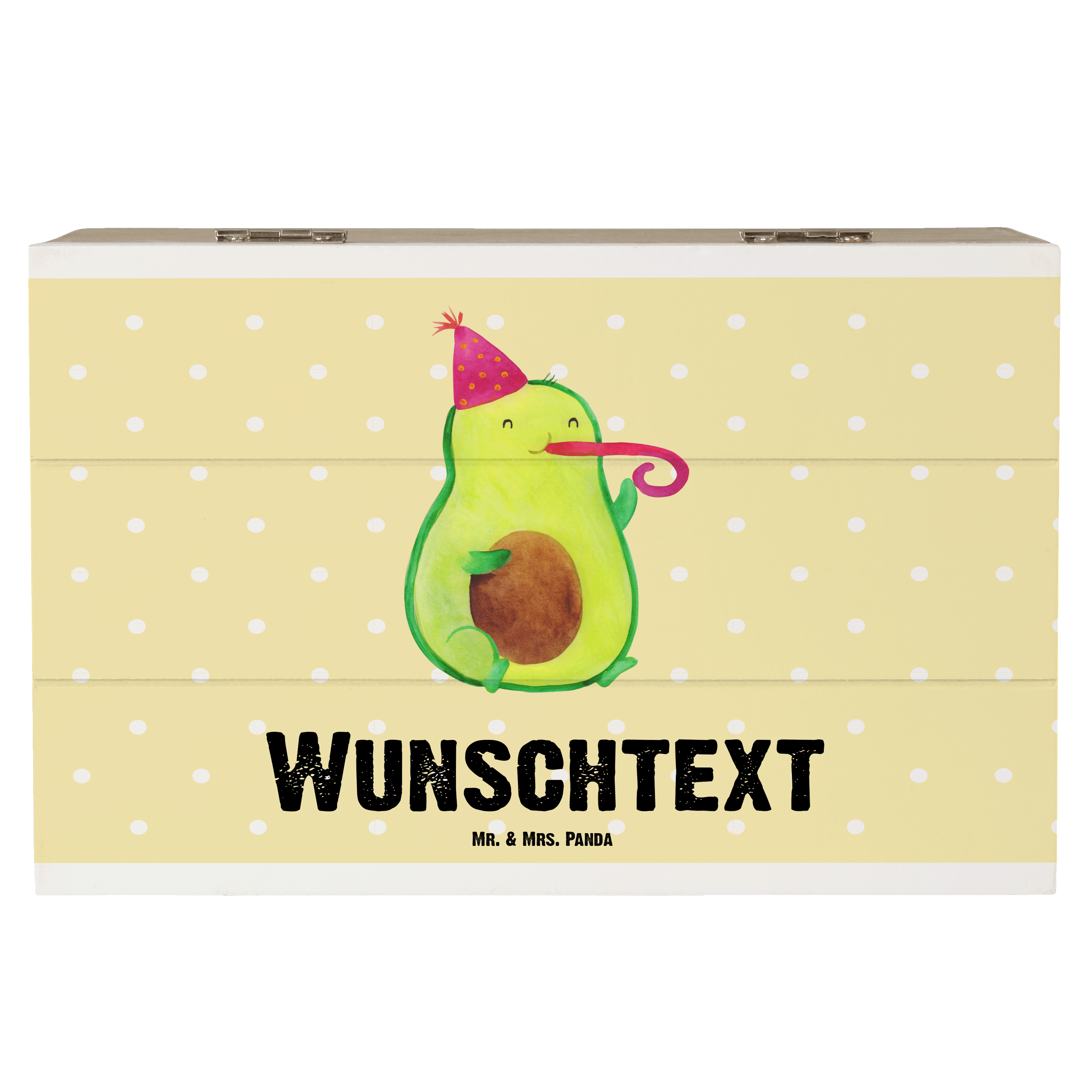 Personalisierte Holzkiste Avocado Birthday - Gelb Pastell - 19 x 12 cm