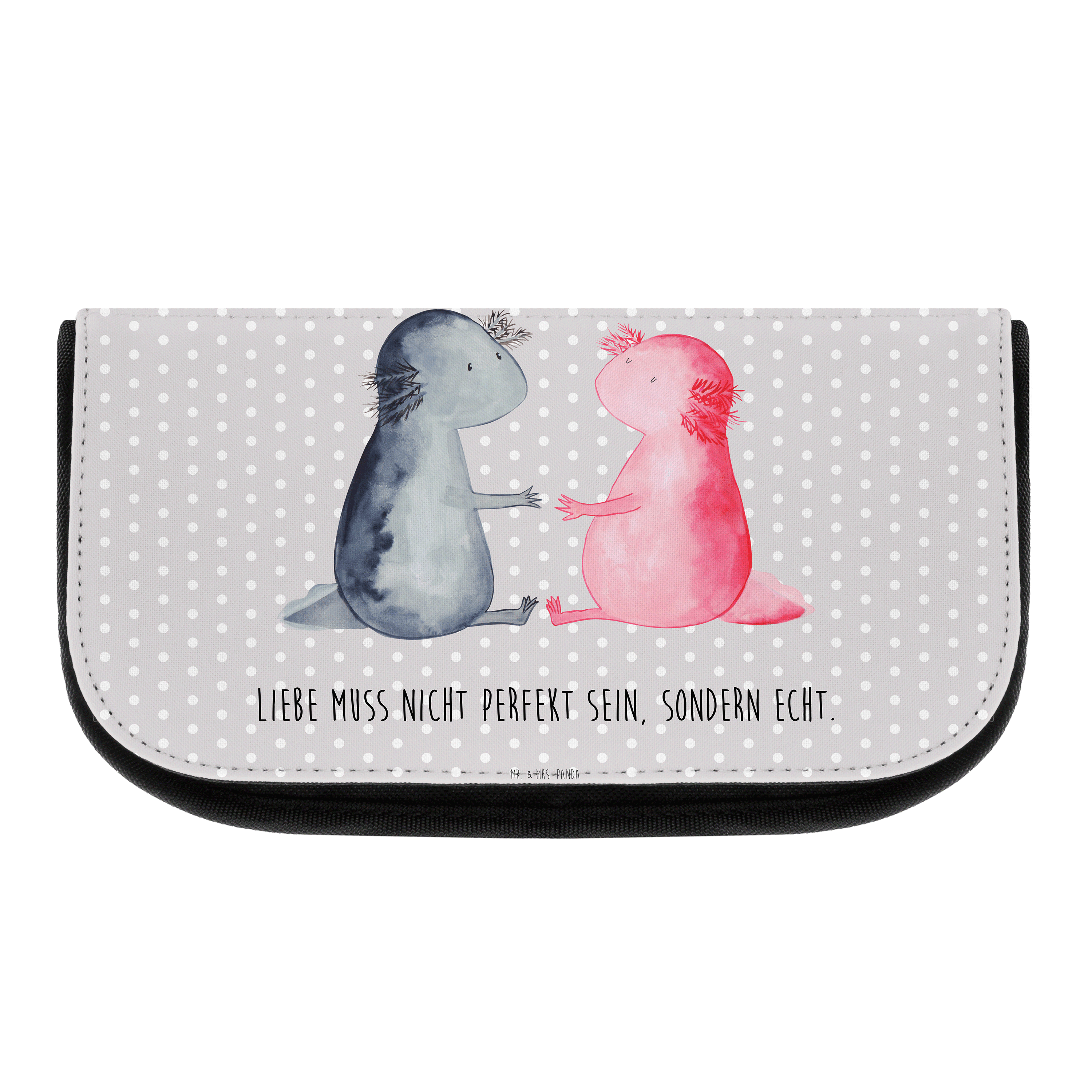 Kosmetiktasche Axolotl Liebe - mit Spruch - Grau Pastell