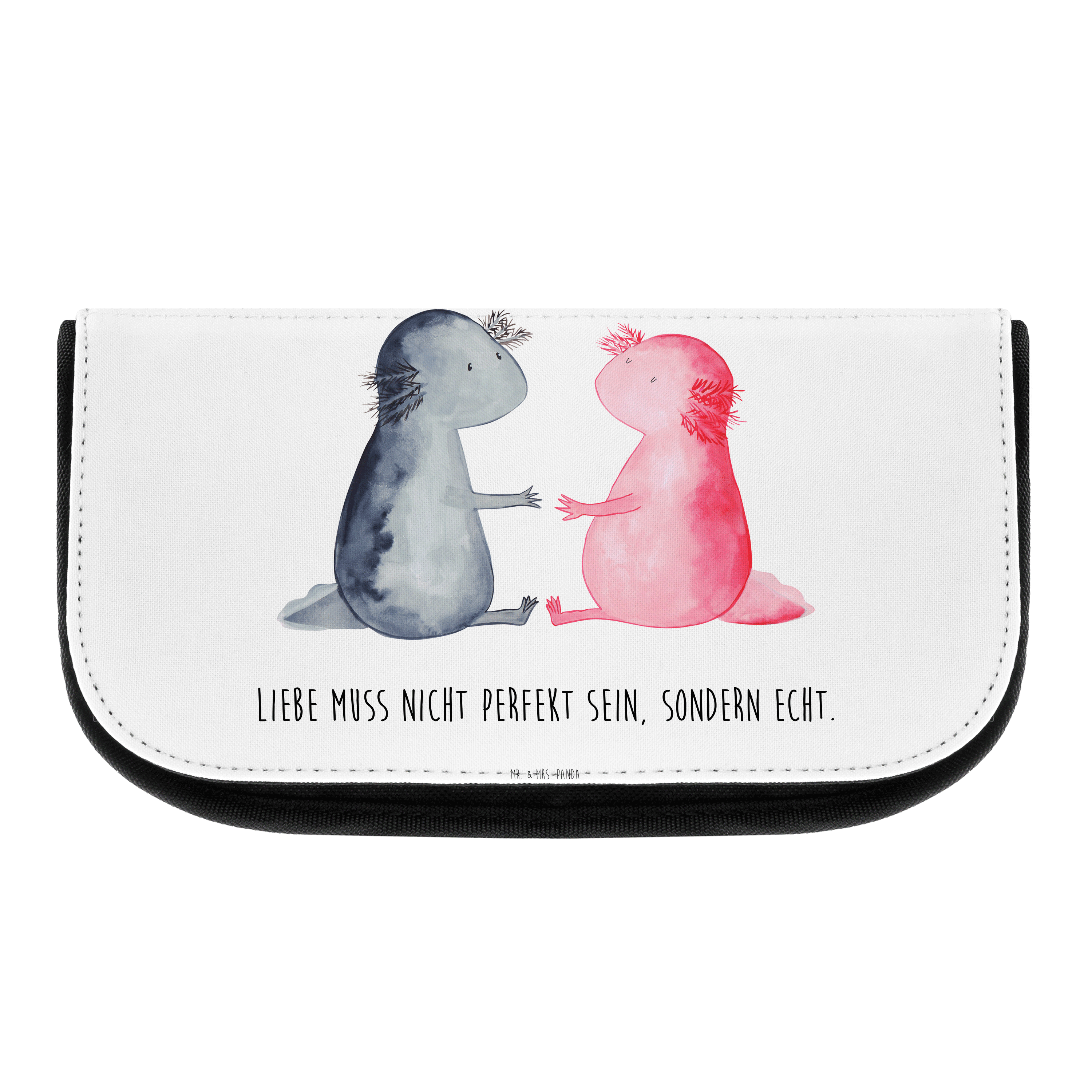 Kosmetiktasche Axolotl Liebe Kosmetikbeutel, Kulturtasche, Kulturbeutel, Schminktasche, Make-Up Tasche, Axolotl, Molch, Axolot, Schwanzlurch, Lurch, Lurche, Liebe, große Liebe, Liebesbeweis, Freund, Verlobter, Ehemann, Jahrestag, Valentinstag