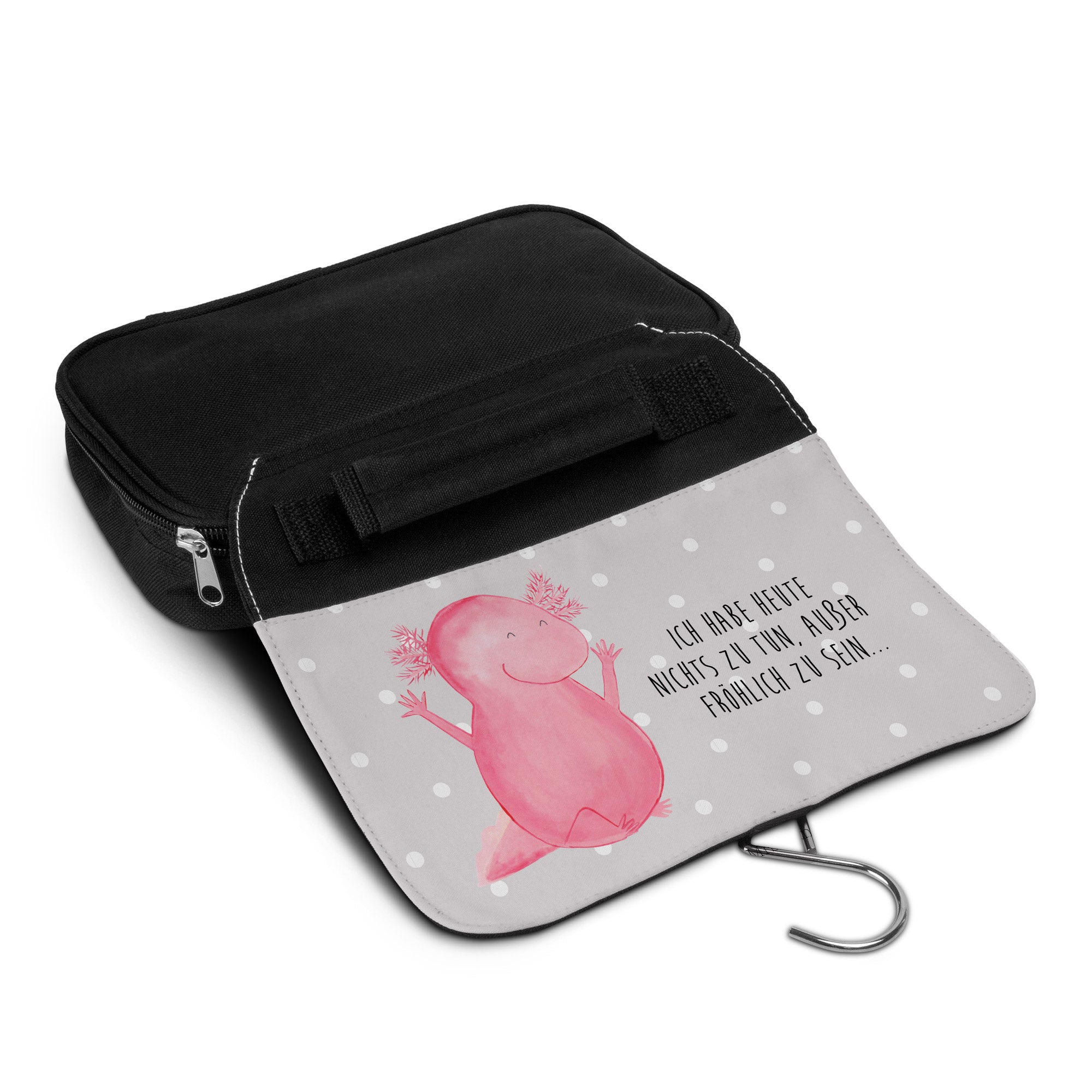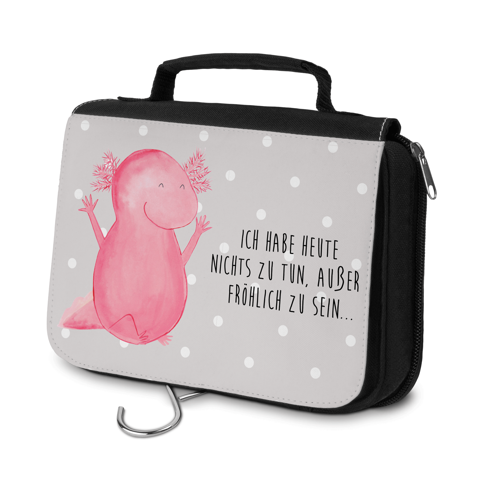 Kulturbeutel Axolotl Hurra - mit Spruch - Grau Pastell