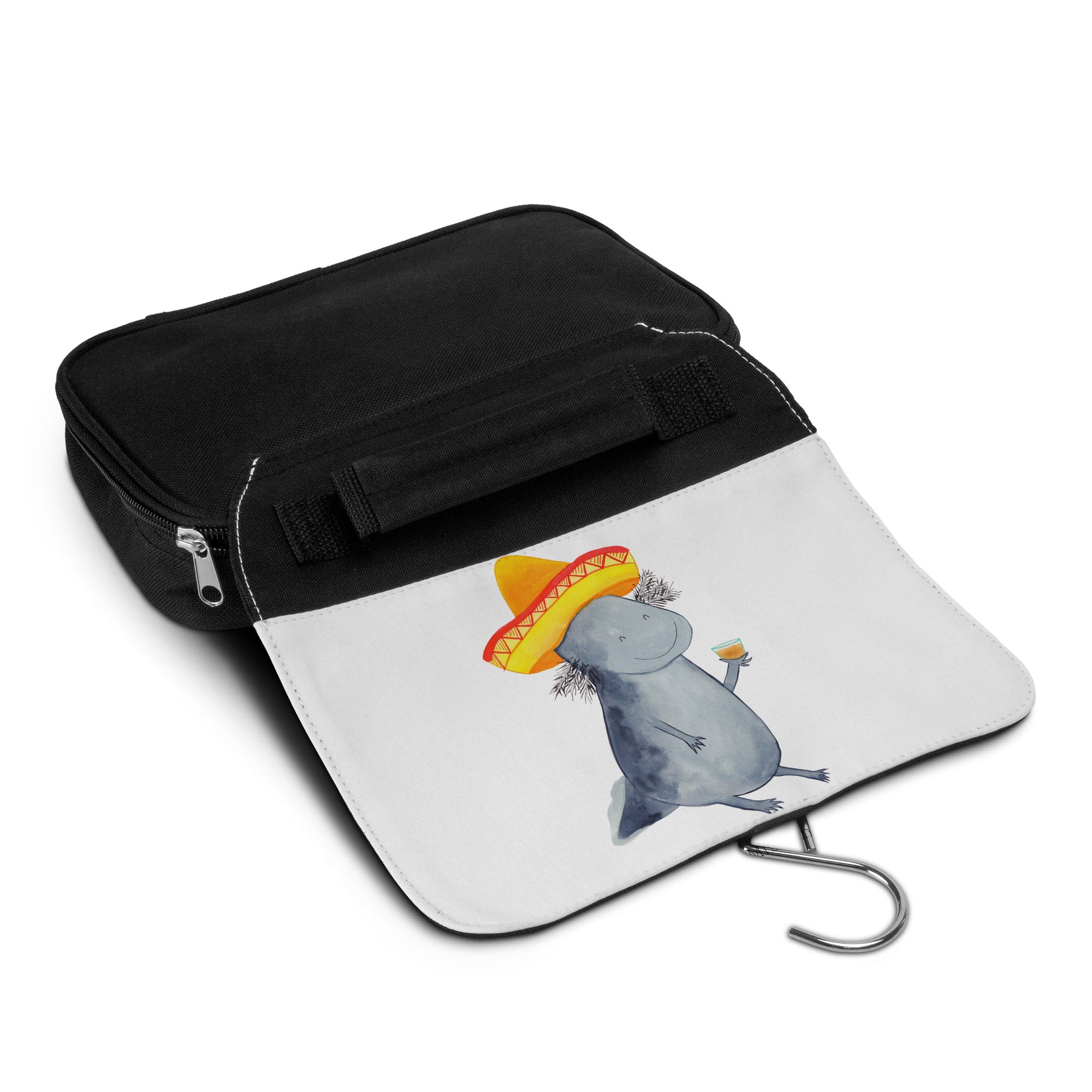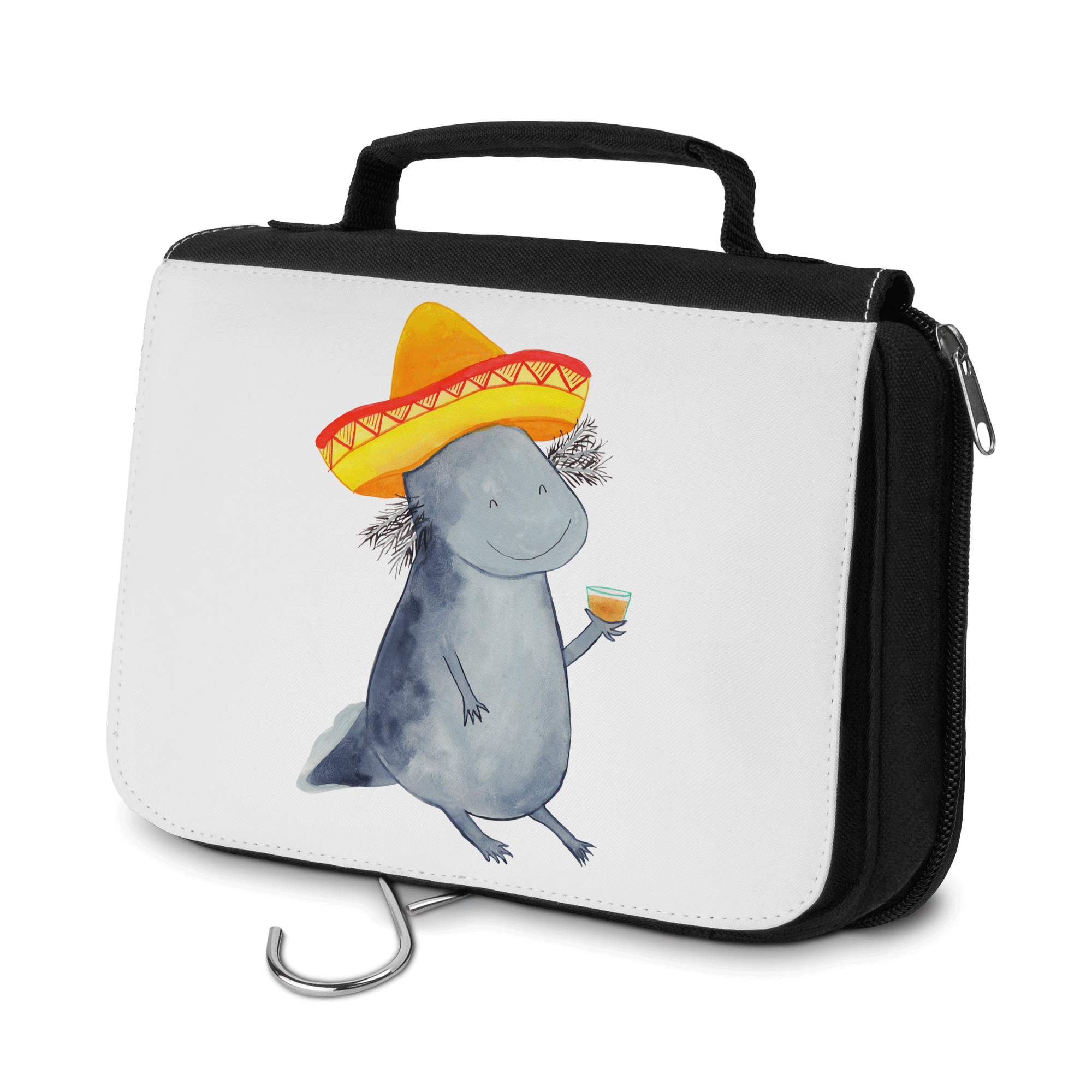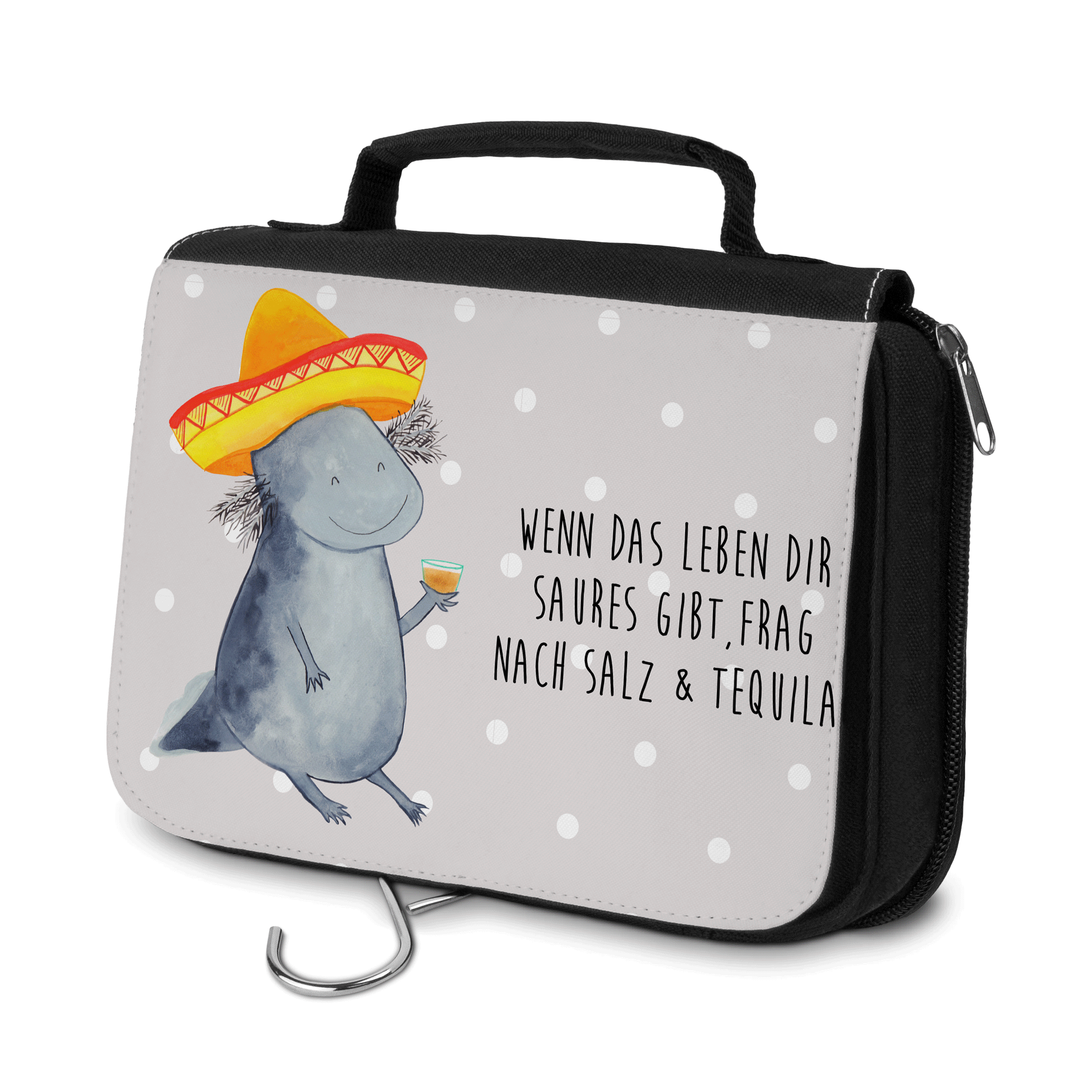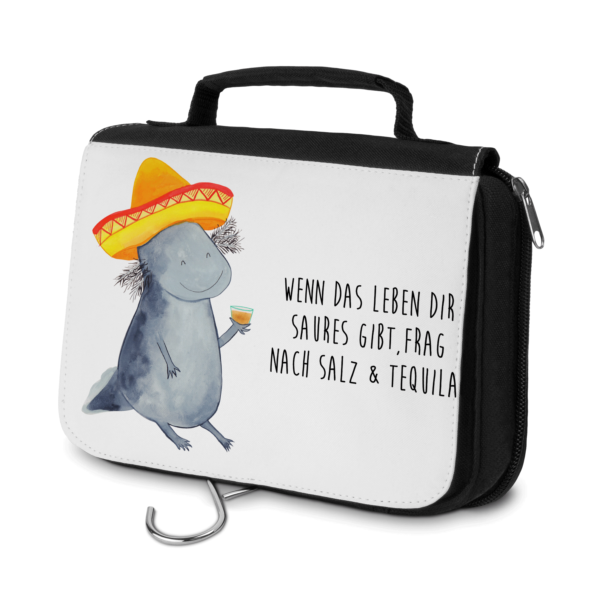 Kulturbeutel Axolotl Tequila Kulturbeutel, Zum Aufhängen, Waschtasche, Kosmetiktasche, Damen, Herren, Aufbewahrungstasche, Schminktasche, Kosmetikbeutel, Organizer, Kulturtasche, Schminkutensil, Axolotl, Molch, Mexico, Mexiko, Sombrero, Zitrone, Tequila, Motivation, Spruch, Schwanzlurch, Lurch, Lurche, Axolot, Feuerdrache, Feuersalamander