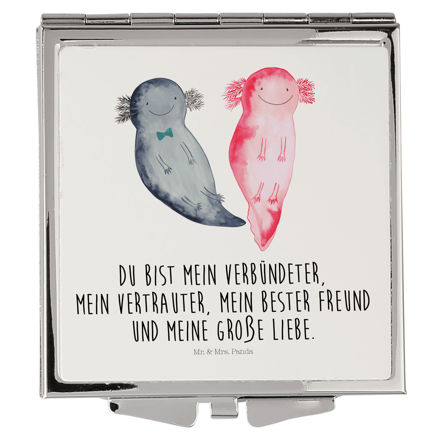 Handtaschenspiegel quadratisch Axolotl Axel+Lotte - mit Spruch - Weiß