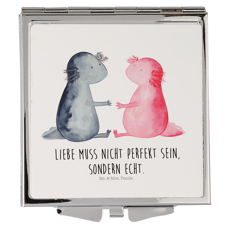 Handtaschenspiegel quadratisch Axolotl Liebe - mit Spruch - Weiß