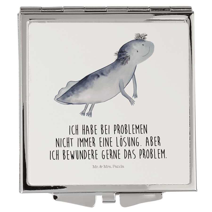 Handtaschenspiegel quadratisch Axolotl schwimmt - mit Spruch - Weiß
