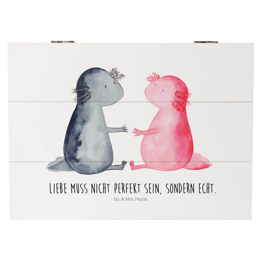 Holzkiste Axolotl Liebe - 25 x 18 cm - mit Spruch - Weiß