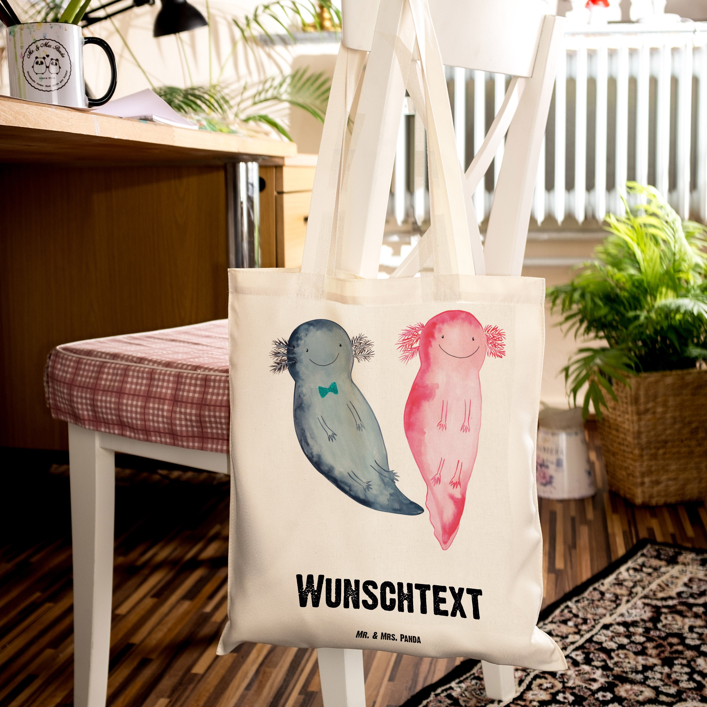 Personalisierte Tragetasche Axolotl Axel+Lotte - Schwarz