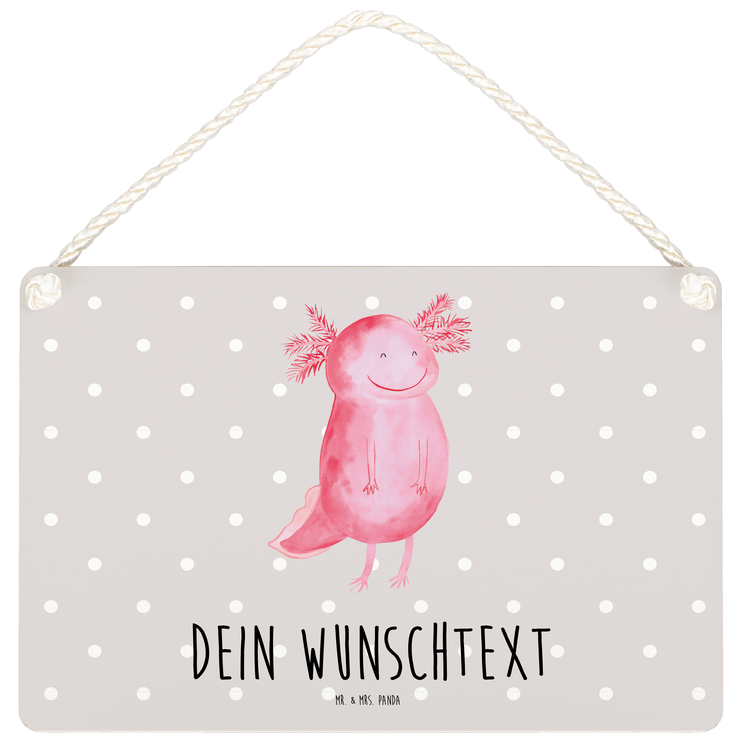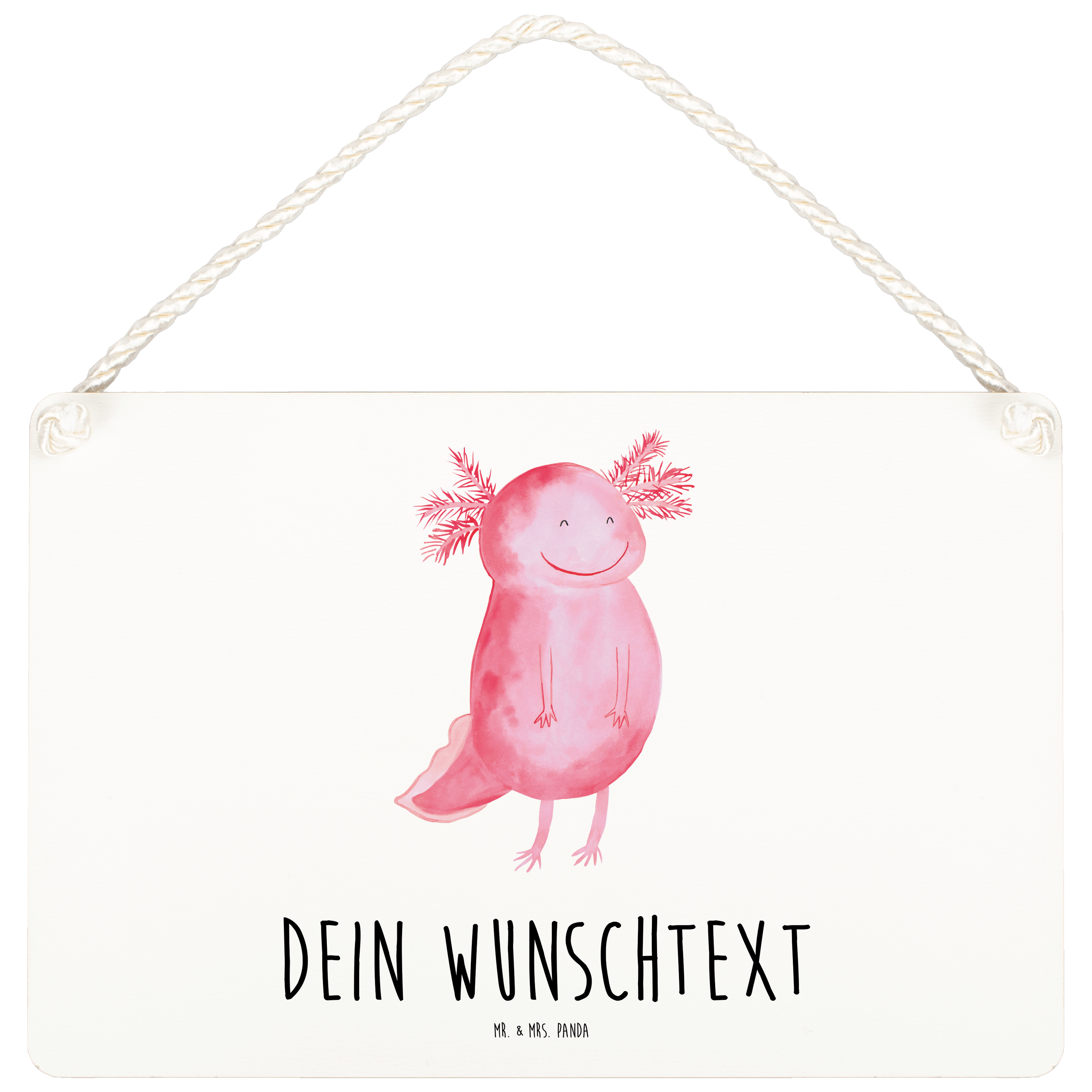 Personalisiertes Deko Schild Axolotl glücklich - DIN A6 - Weiß