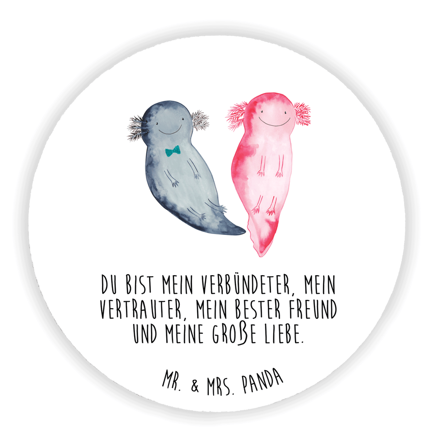 Rund Magnet Axolotl Axel+Lotte - mit Spruch - Weiß