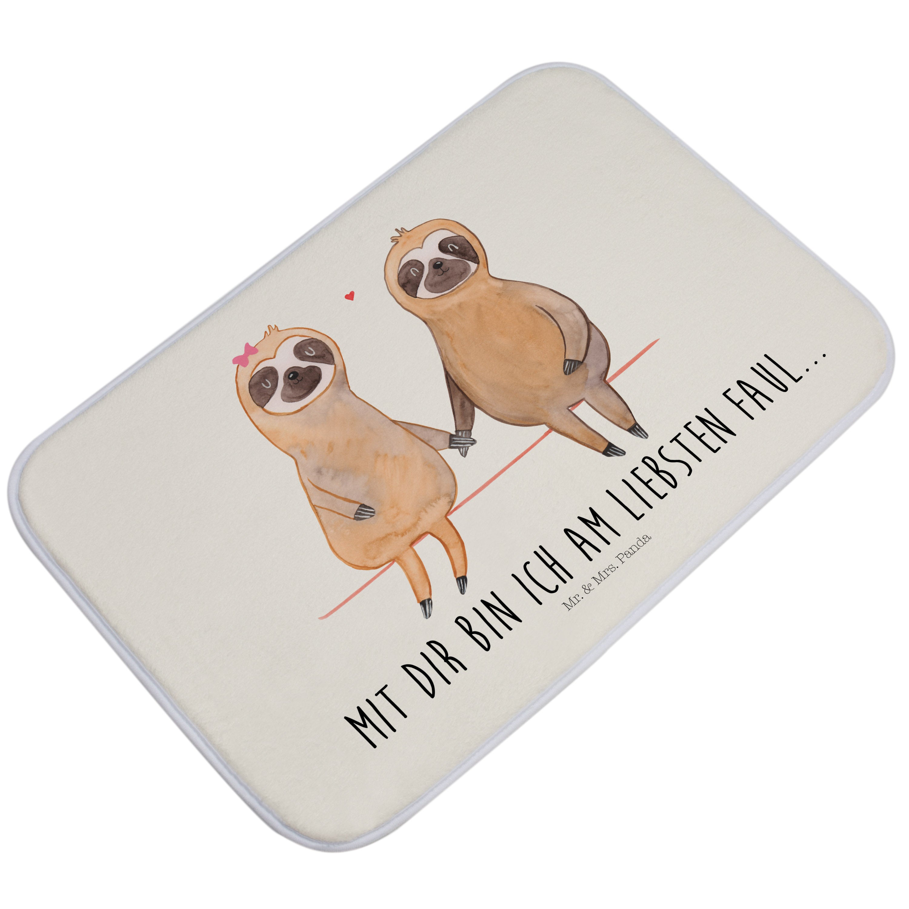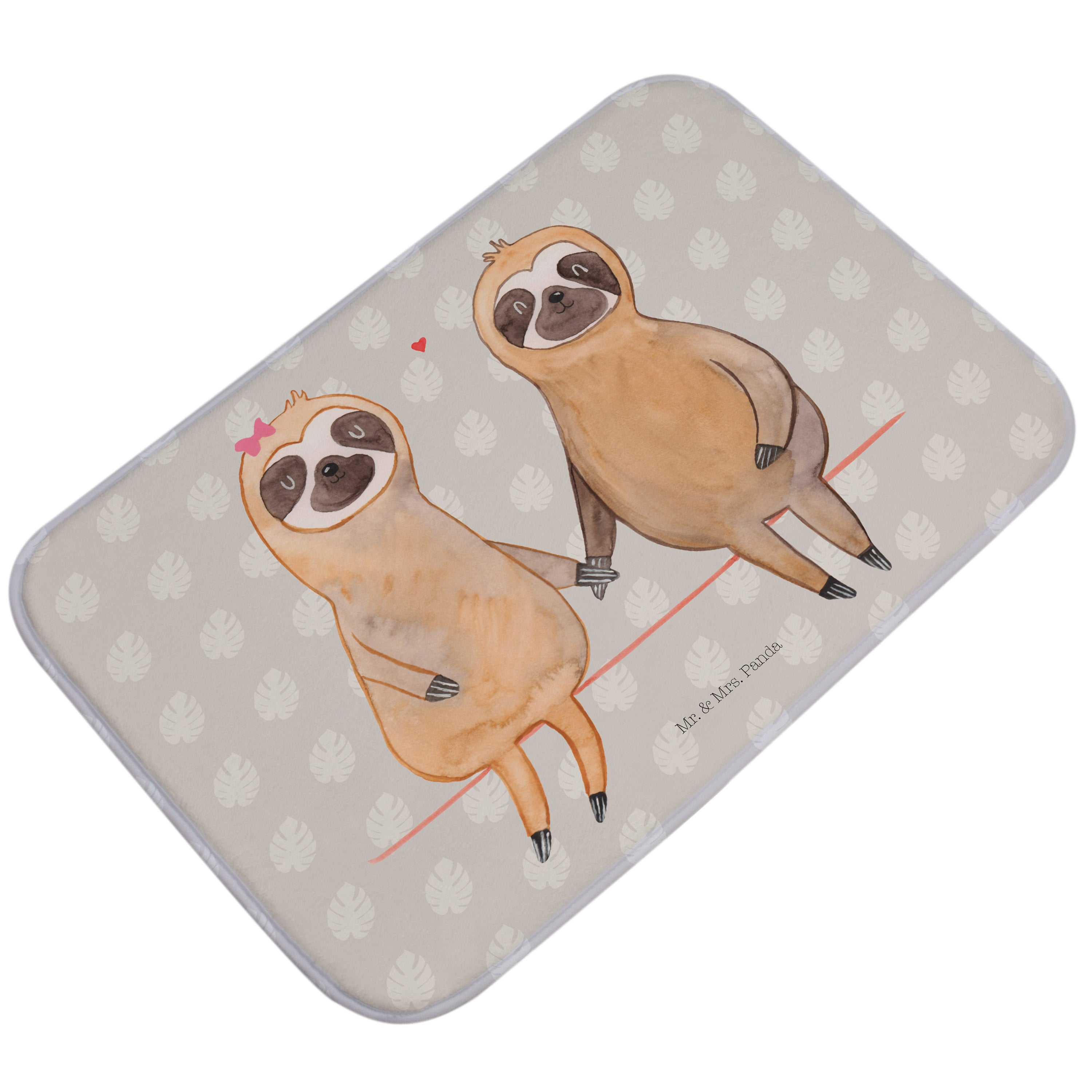 Badvorleger Faultier Pärchen - mit Spruch - Grau Pastell