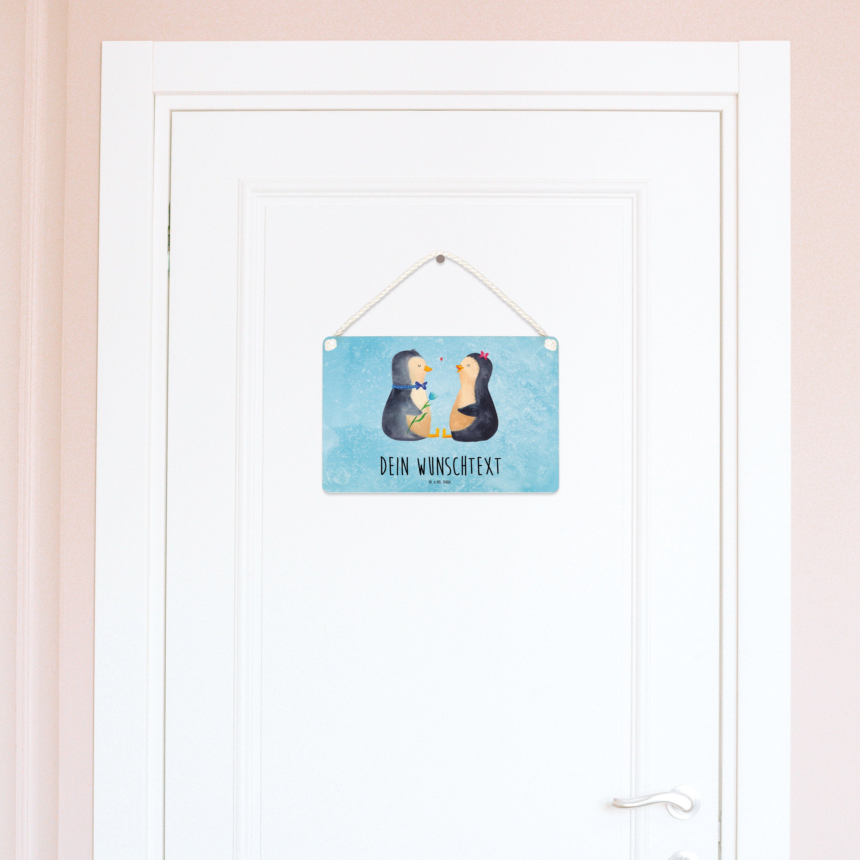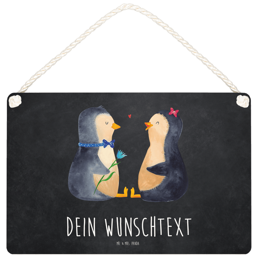 Personalisiertes Deko Schild Pinguin Pärchen - DIN A6 - Kreidetafel