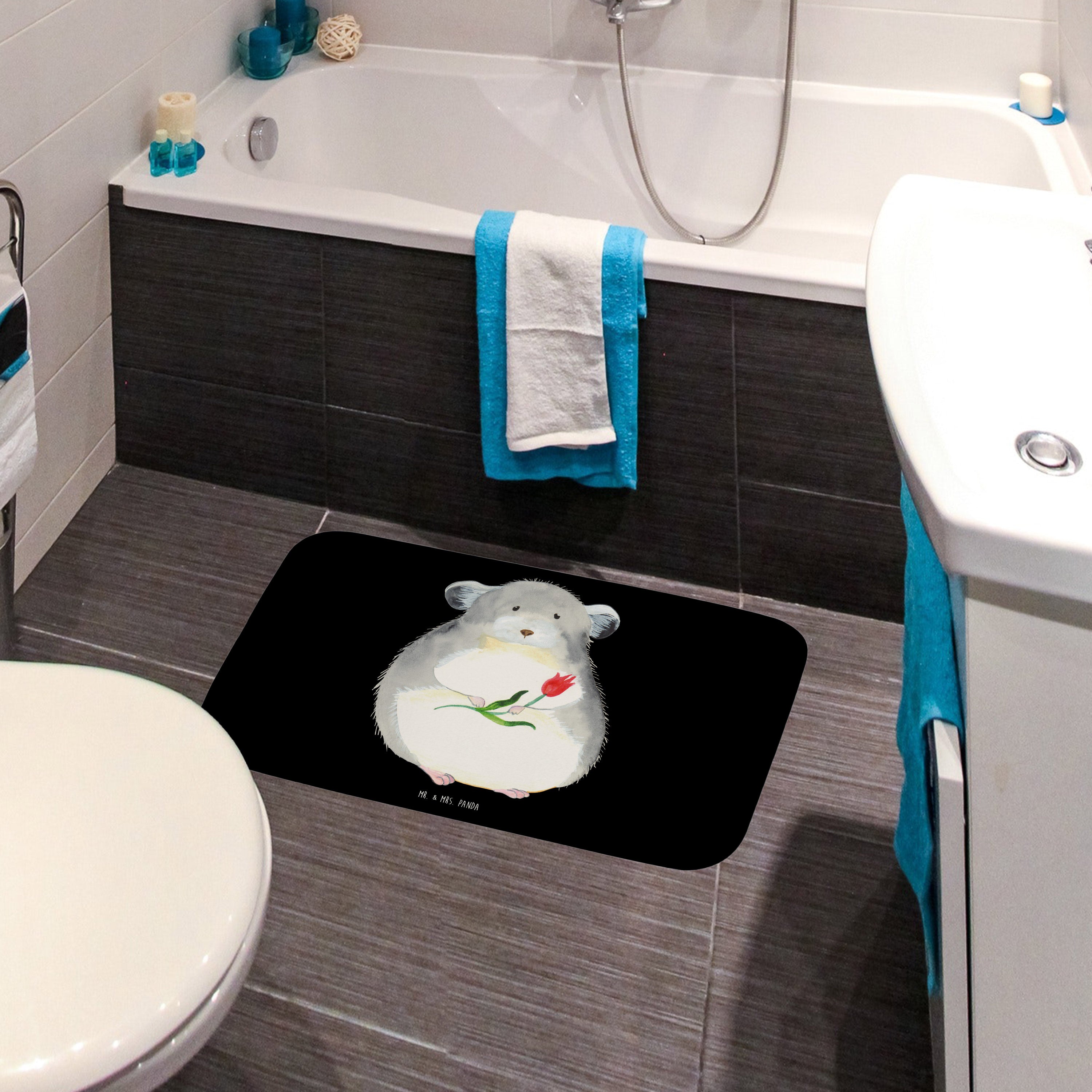 Badvorleger Chinchilla mit Blume - mit Spruch - Schwarz