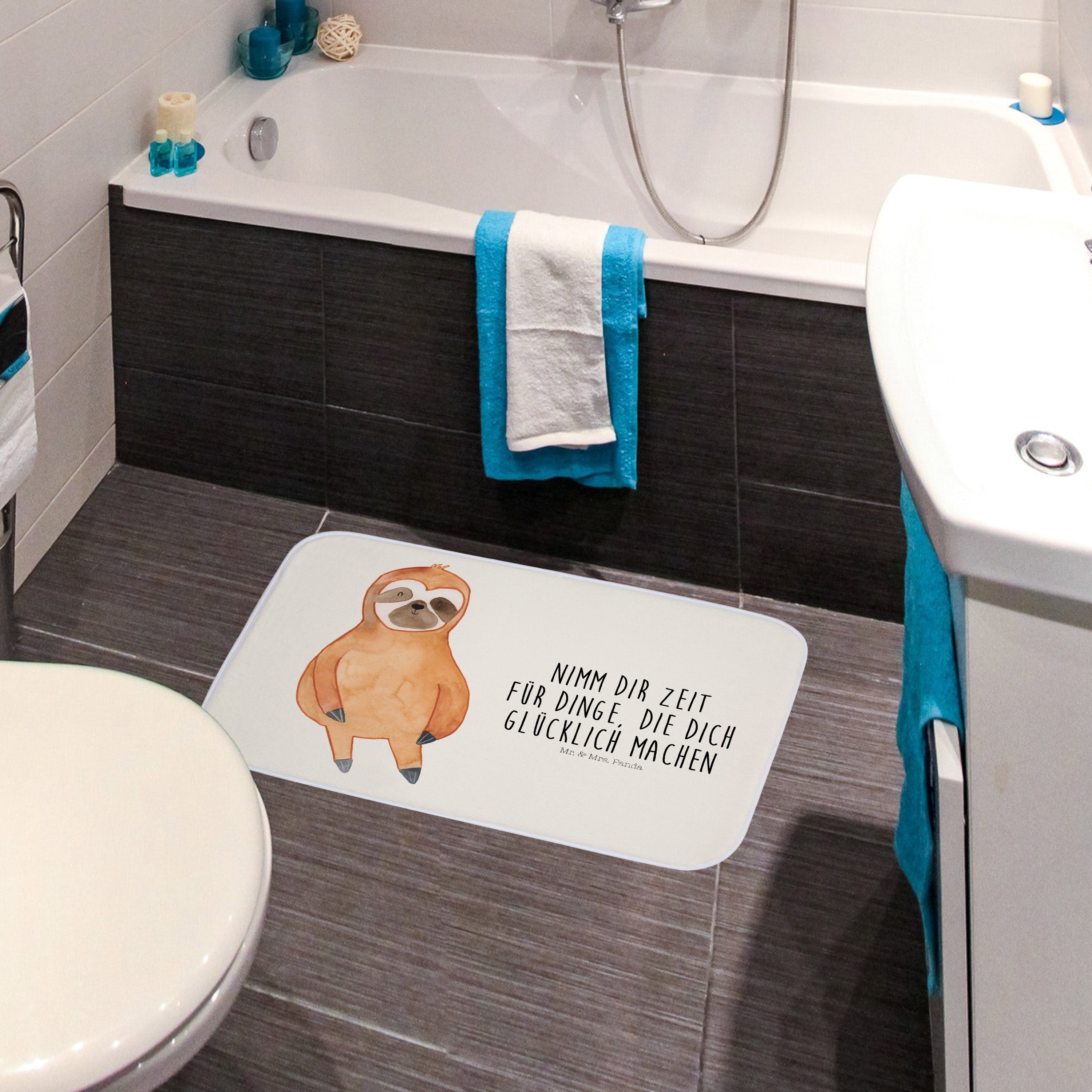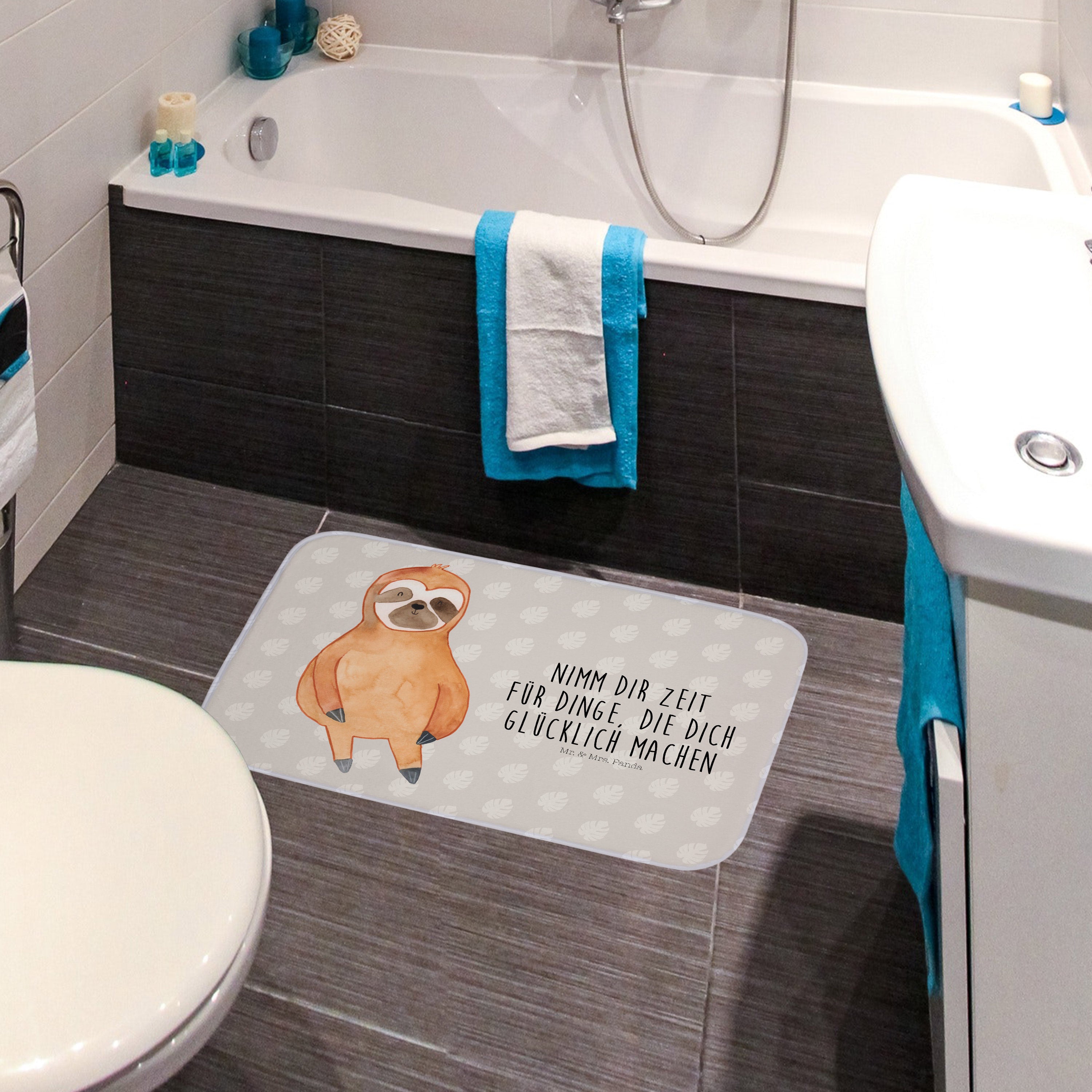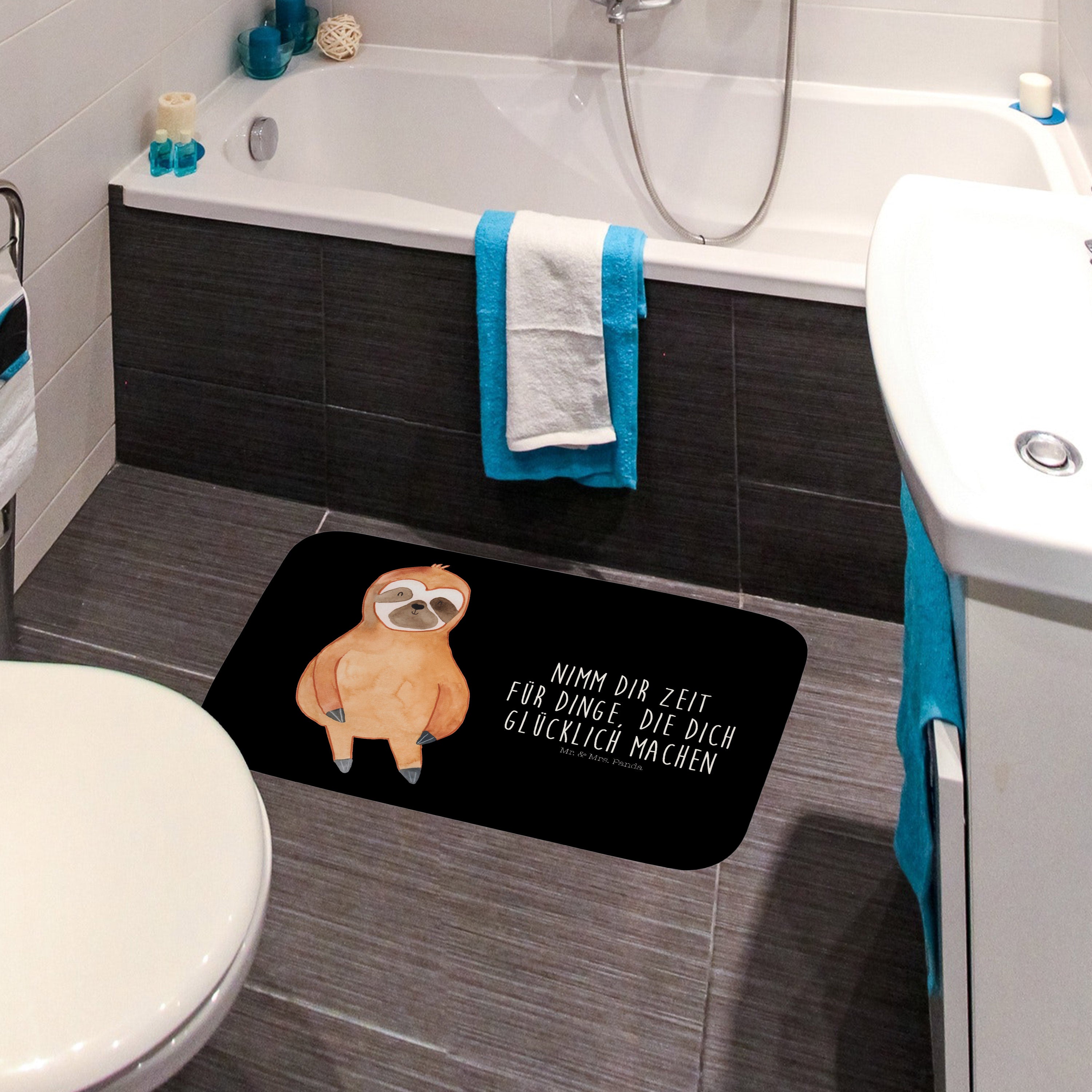 Badvorleger Faultier Zufrieden - mit Spruch - Schwarz