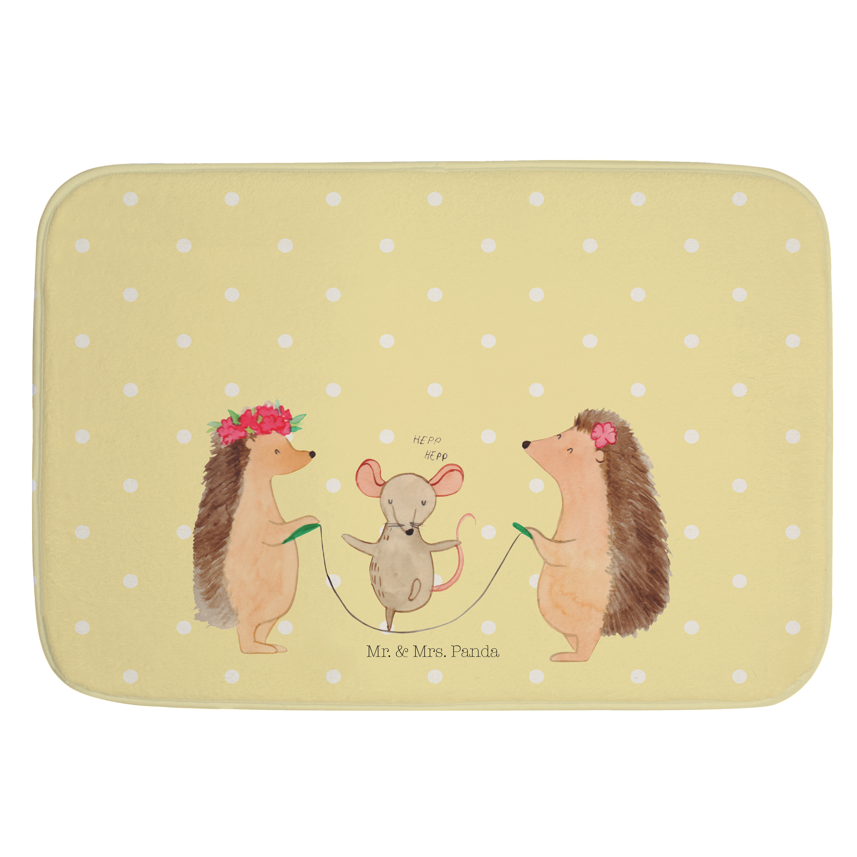 Badvorleger Igel Seilhüpfen - mit Spruch - Gelb Pastell