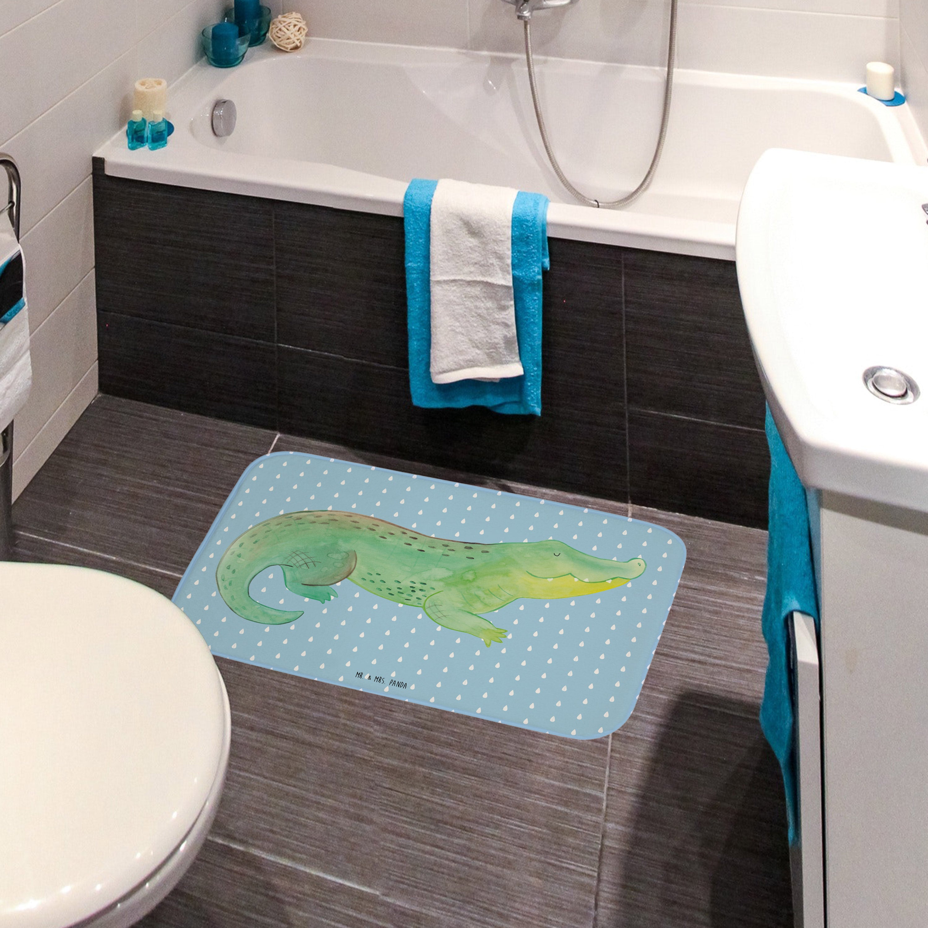 Badvorleger Krokodil - mit Spruch - Blau Pastell