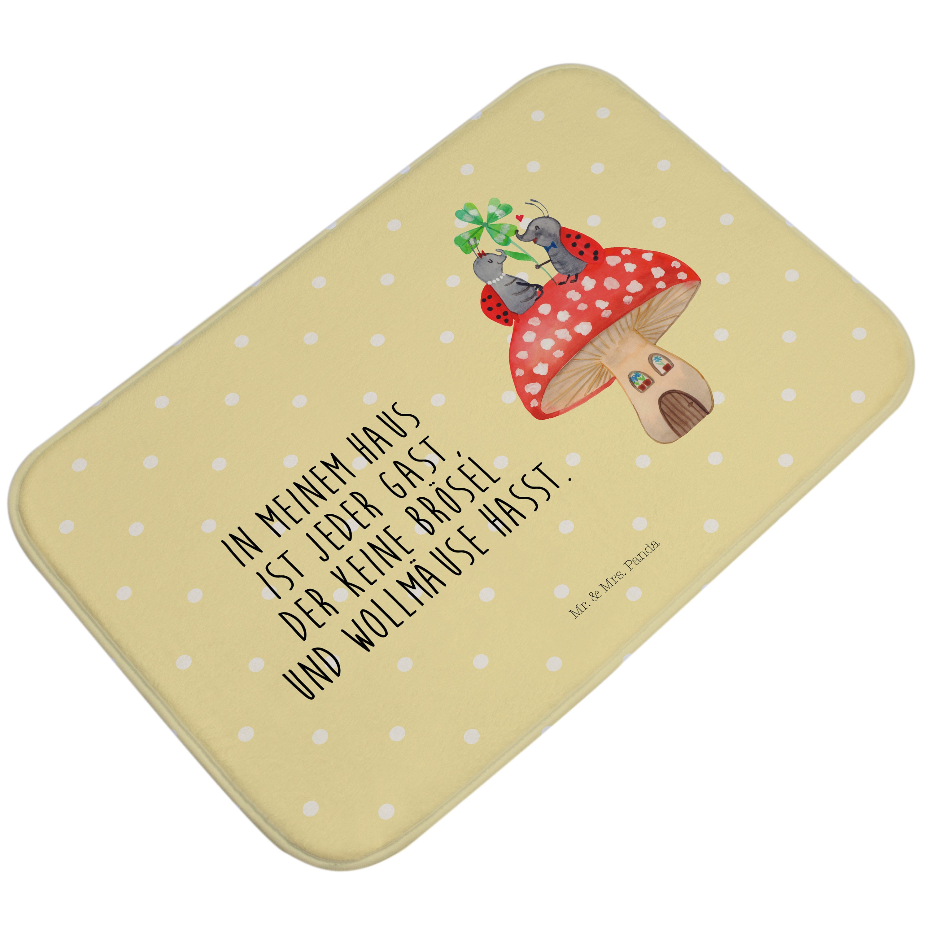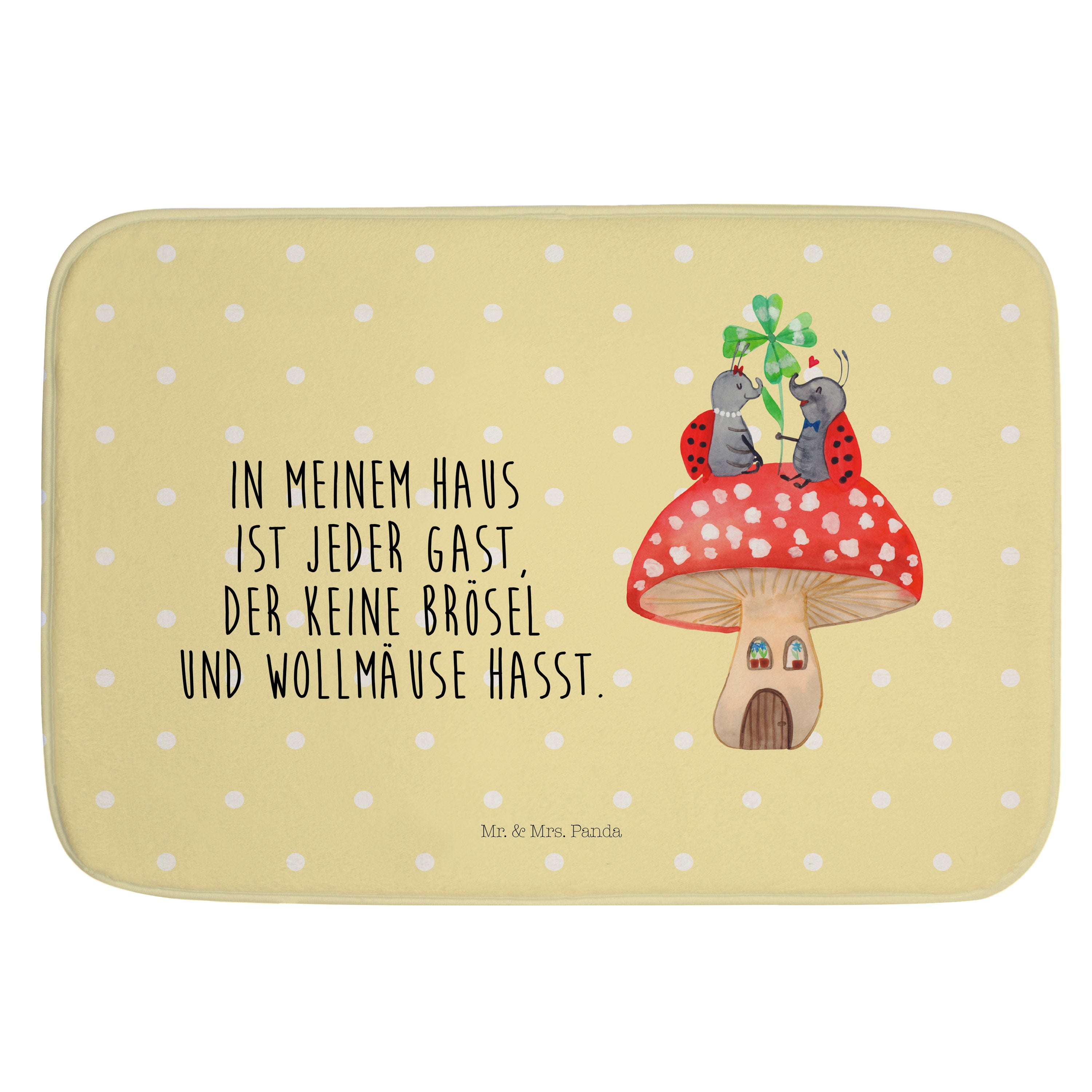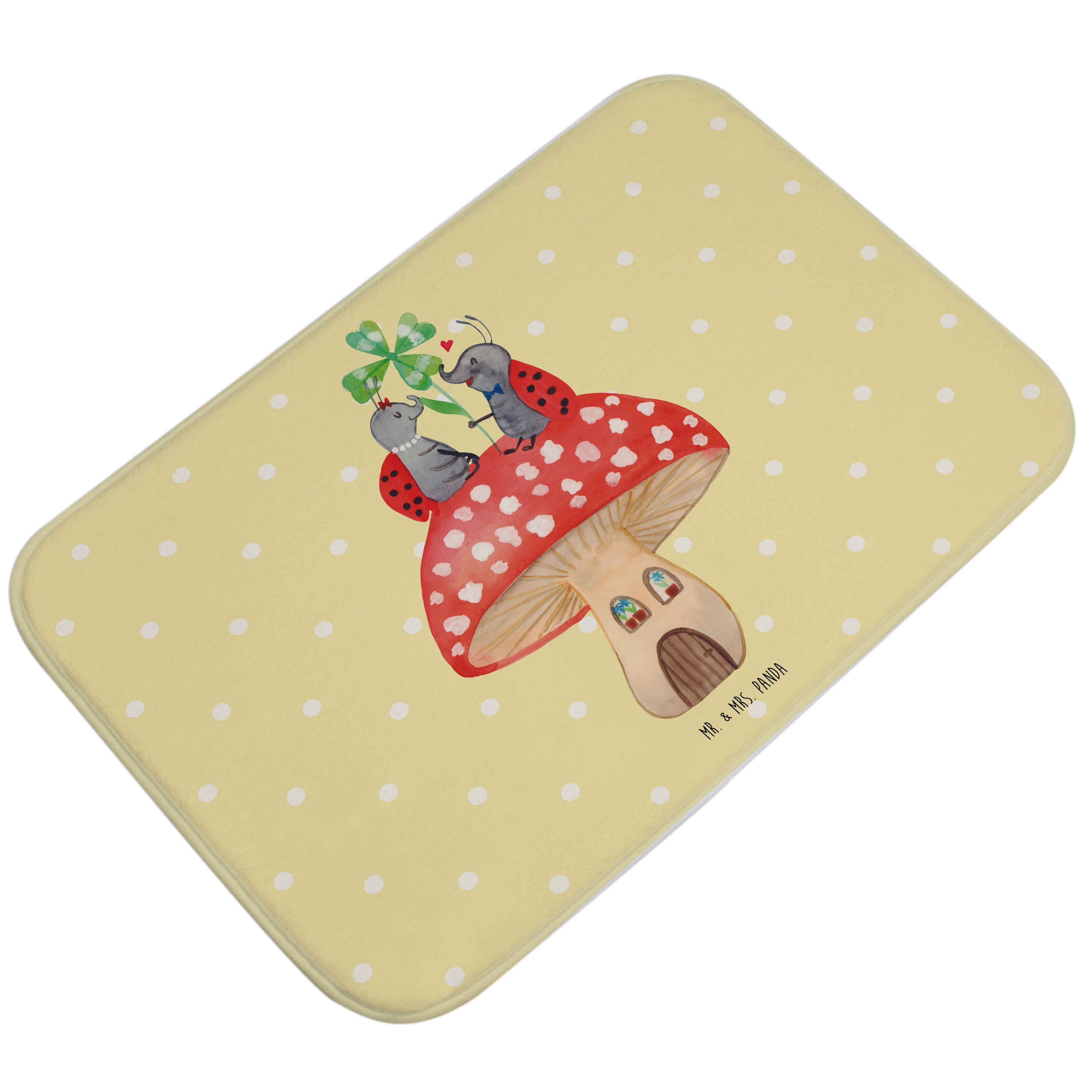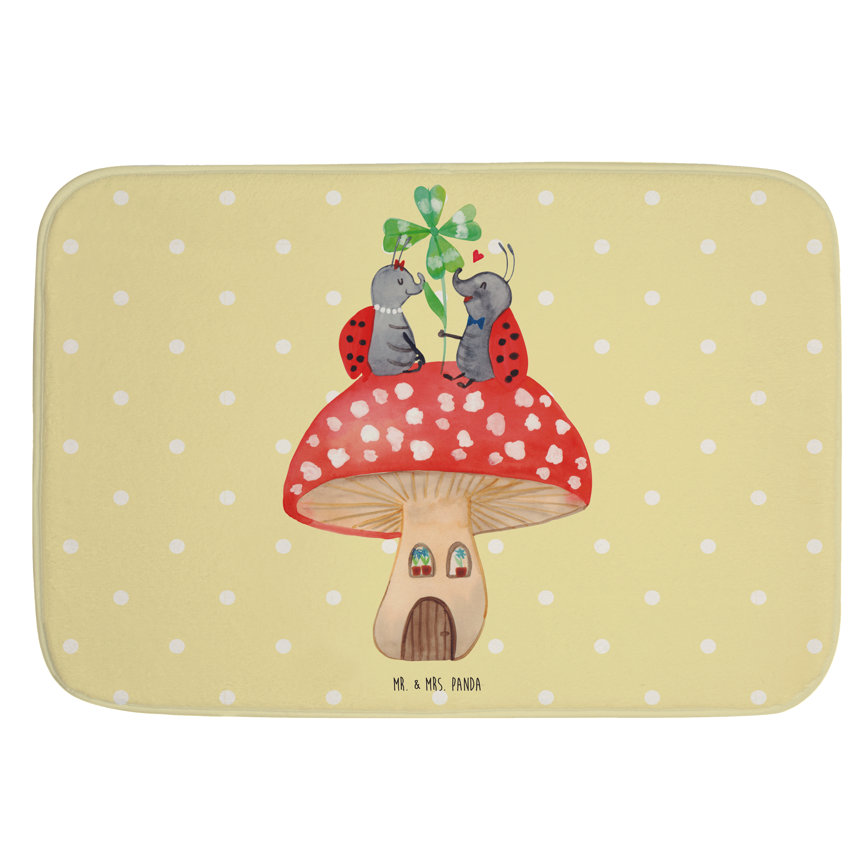 Badvorleger Marienkäfer Paar Fliegenpilz - mit Spruch - Gelb Pastell