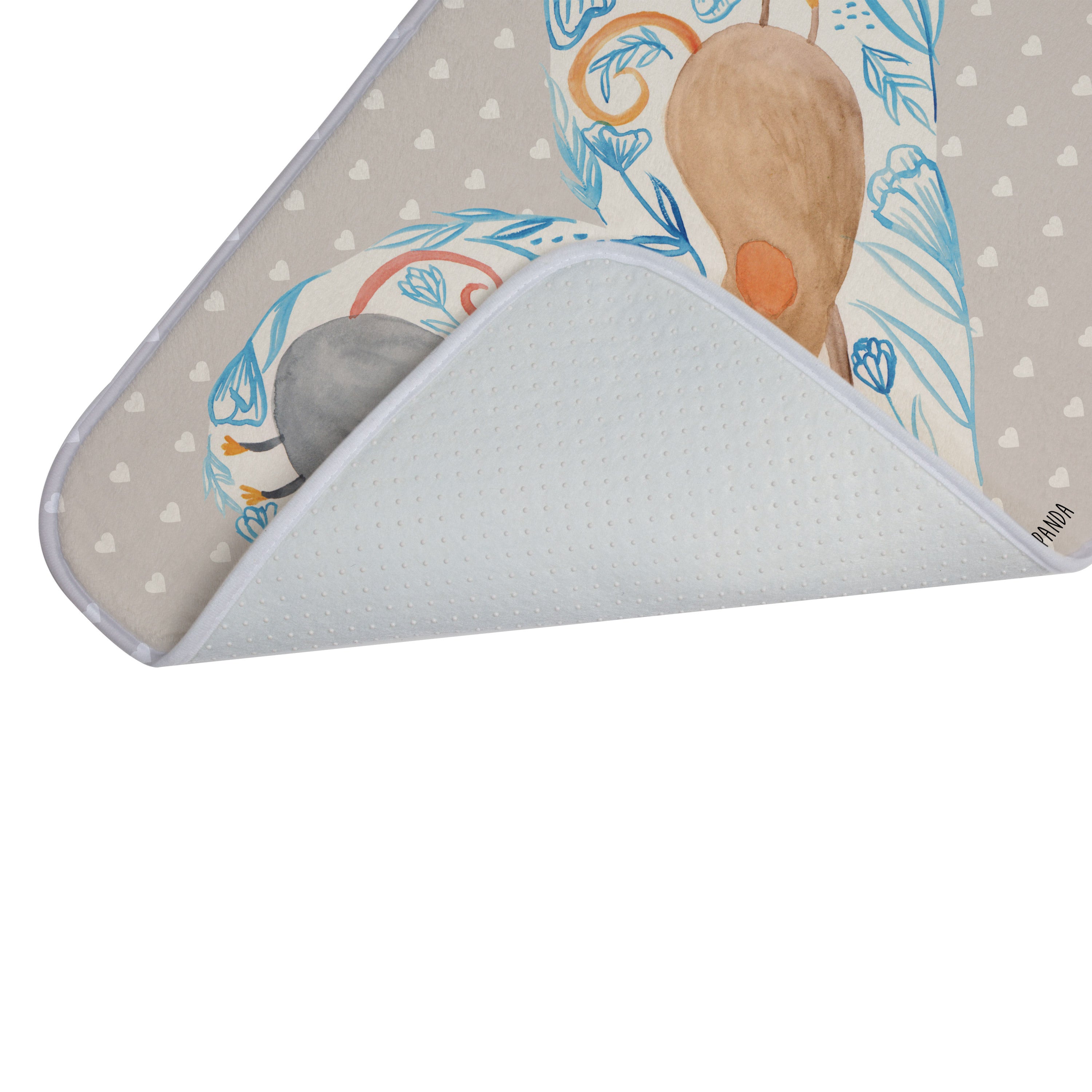 Dieser super weiche Badvorleger oder Badteppich von Mr. & Mrs. Panda ist besonders flauschig, saugstark und rutschfest. Den Badezimmerteppich kannst du als Duschvorleger nutzen oder auch vor die Badewanne oder das Waschbecken legen. Er ist durch kleine Noppen auf der Unterseite rutschfest. Der Badvorleger ist perfekt für eine schöne und lebensfrohe Inneneinrichtung im Badezimmer. Sie macht dein Badezimmer zu einer Wohlfühl-Oase! Sie ist auch ein wunderschönes Geschenk zur Einweihung.