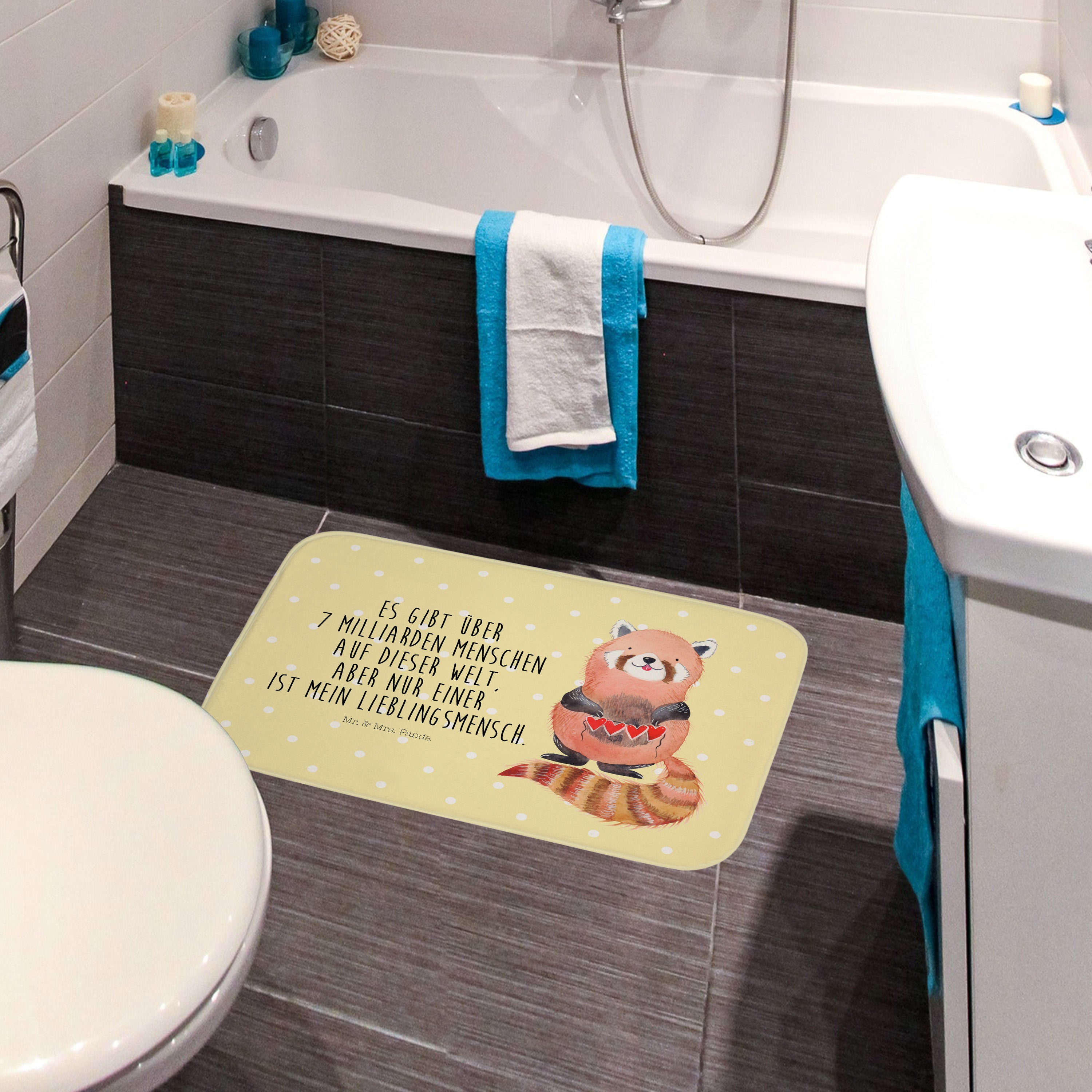 Badvorleger Roter Panda - mit Spruch - Gelb Pastell