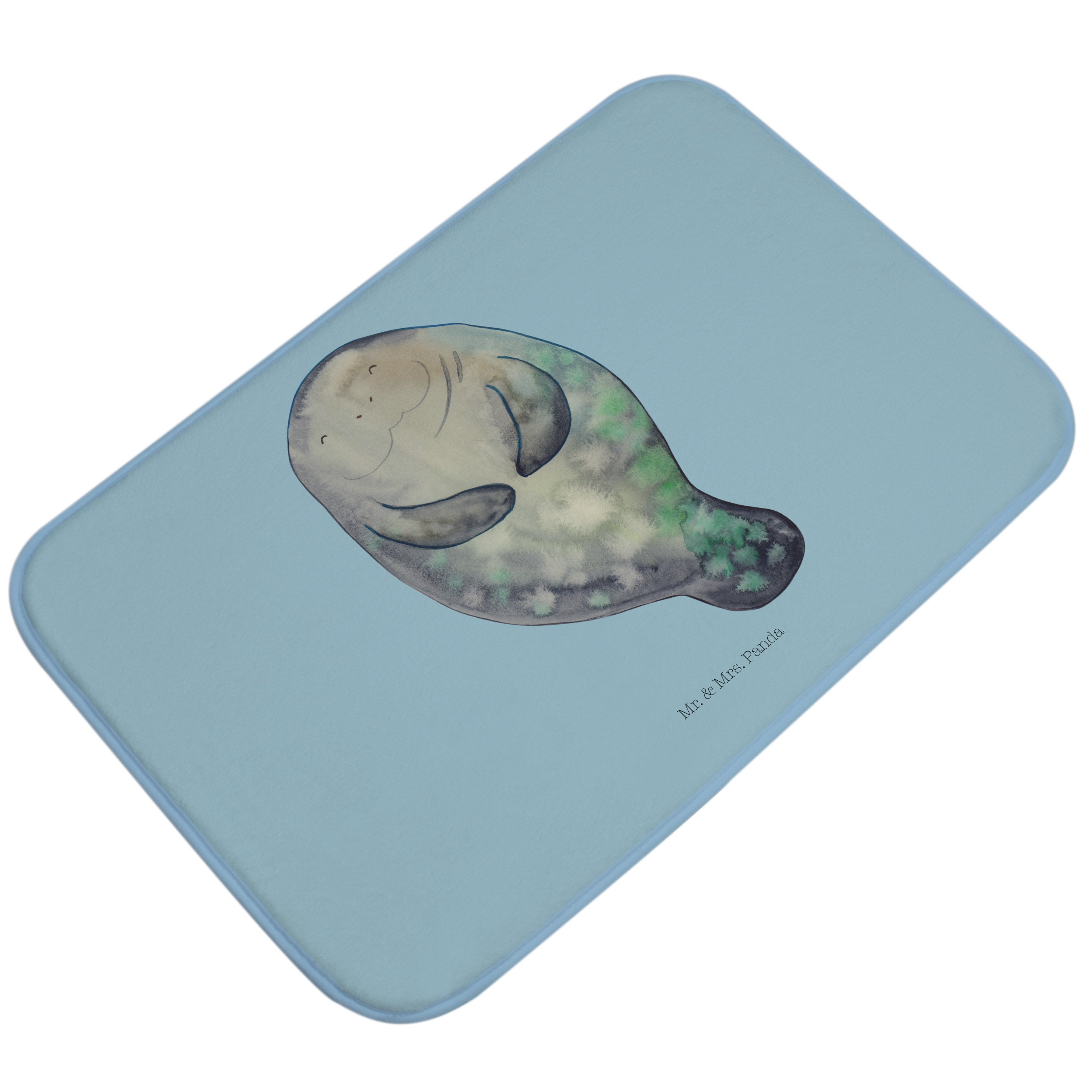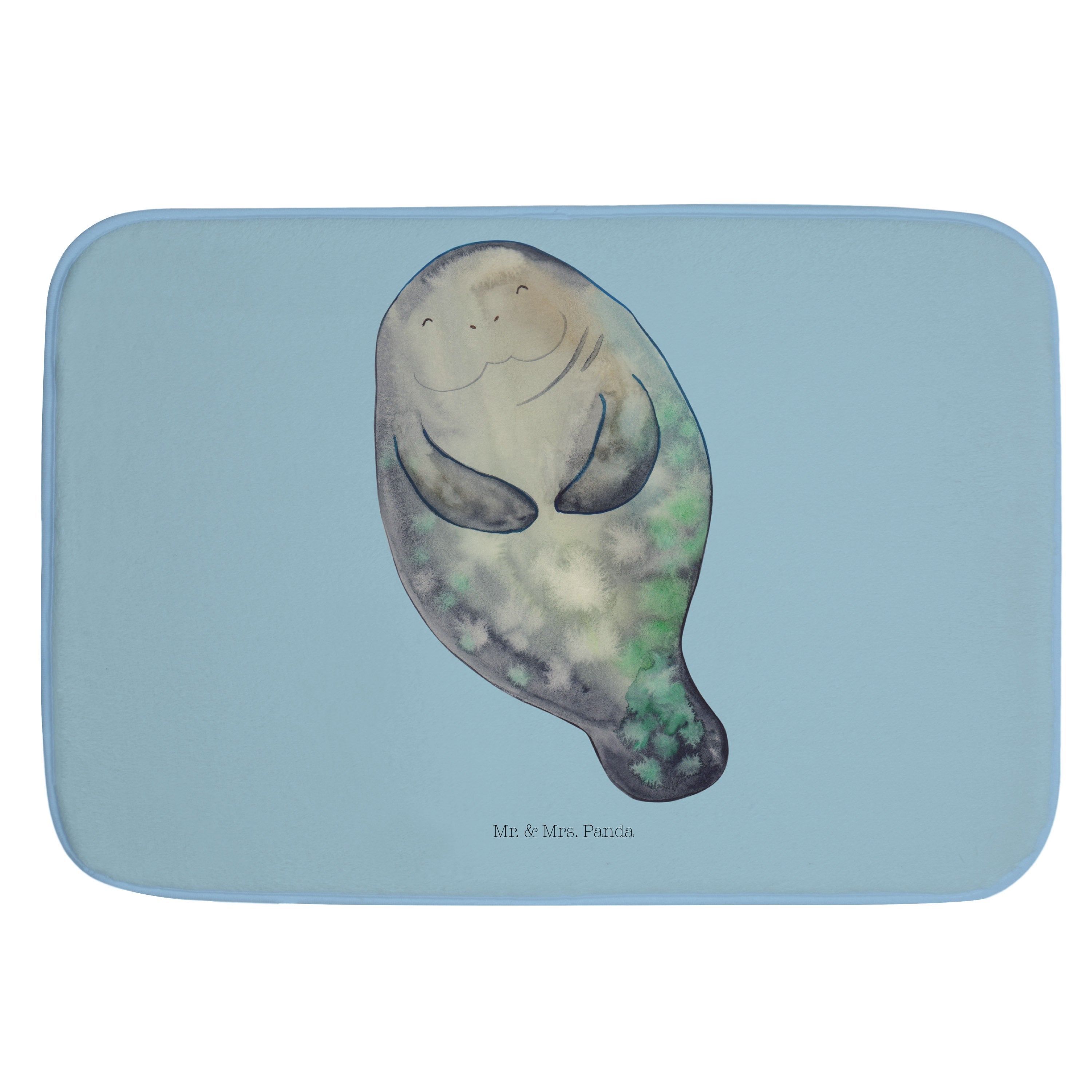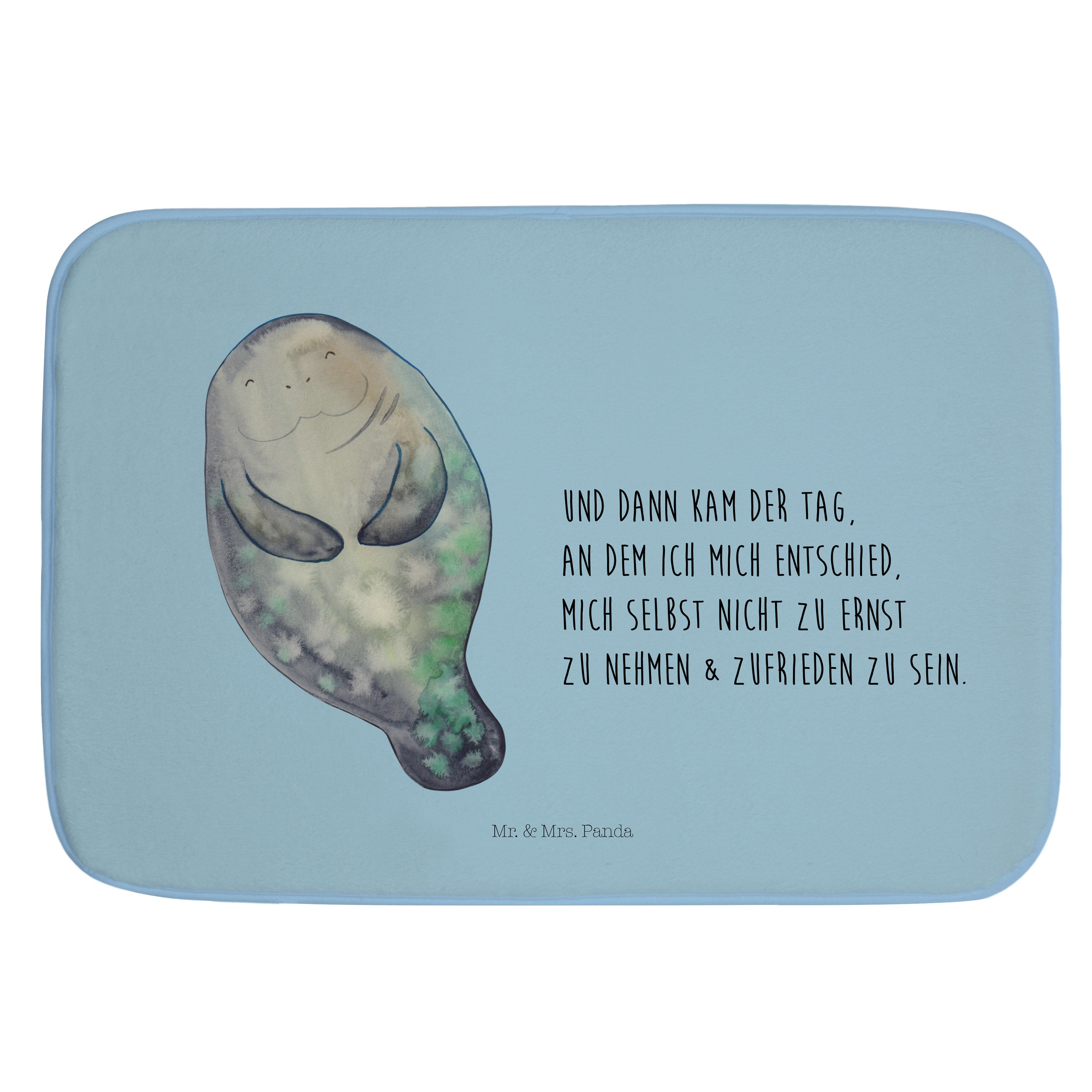Badvorleger Seekuh happy - mit Spruch - Blau Pastell