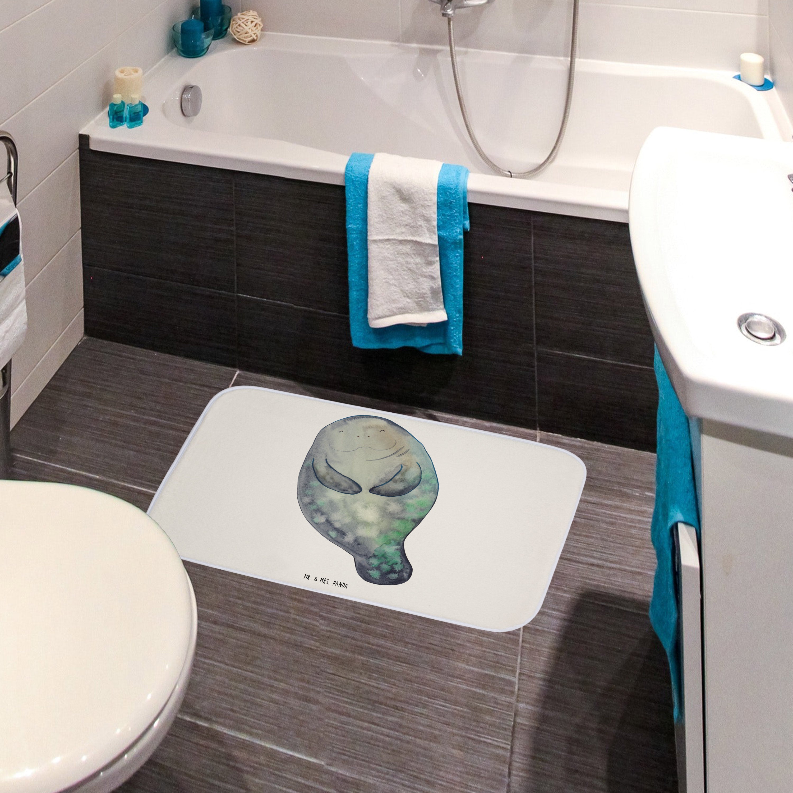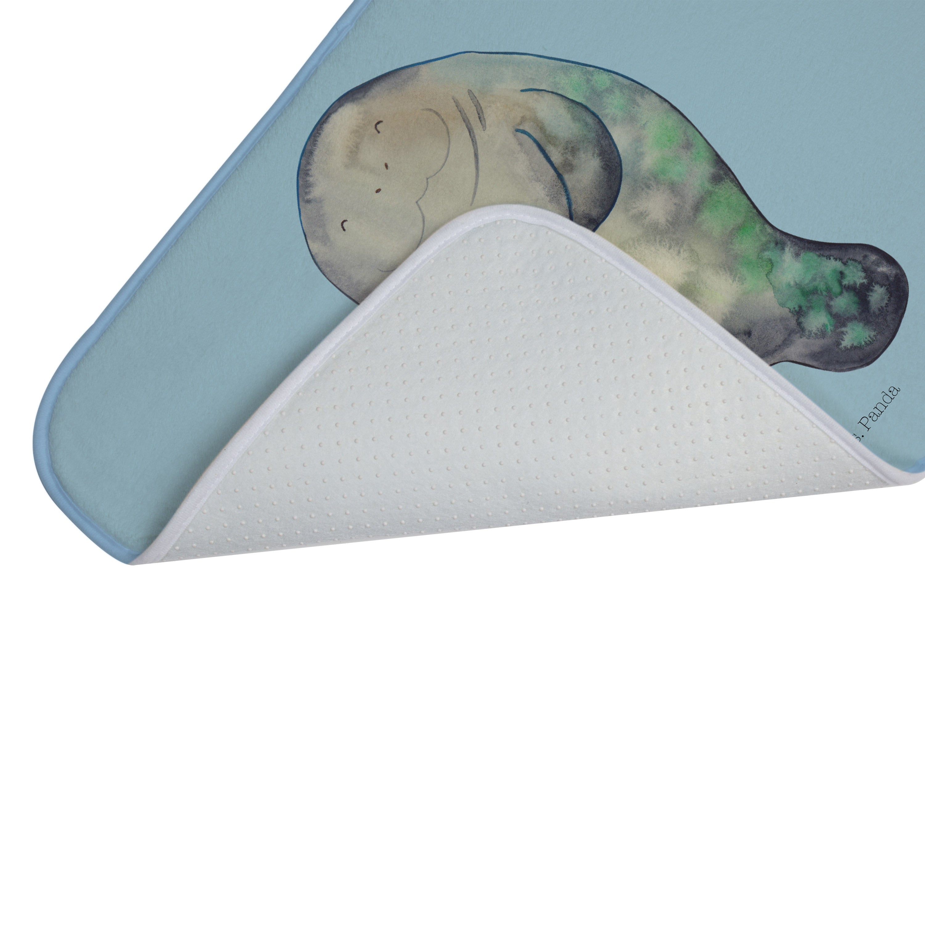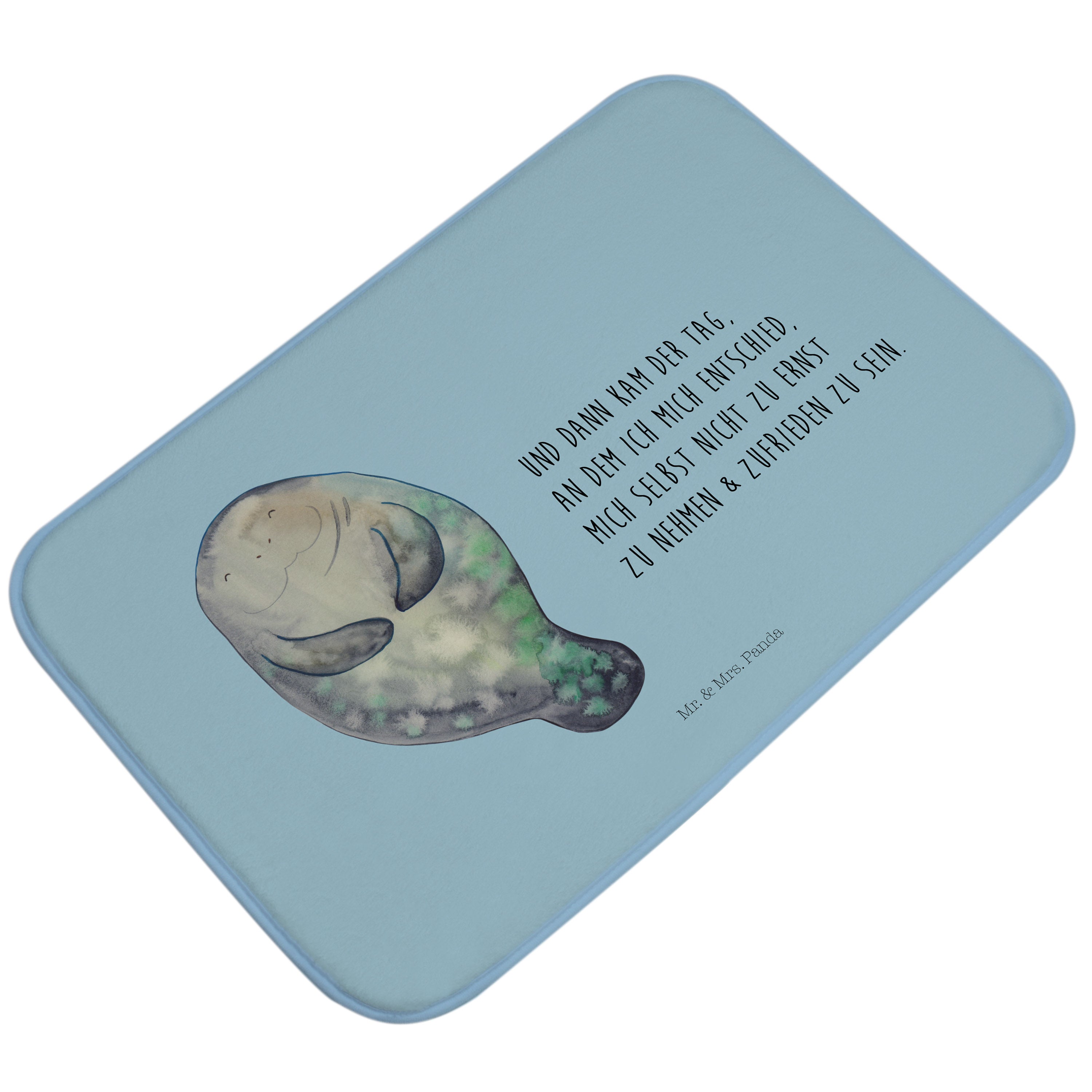Badvorleger Seekuh happy - mit Spruch - Blau Pastell
